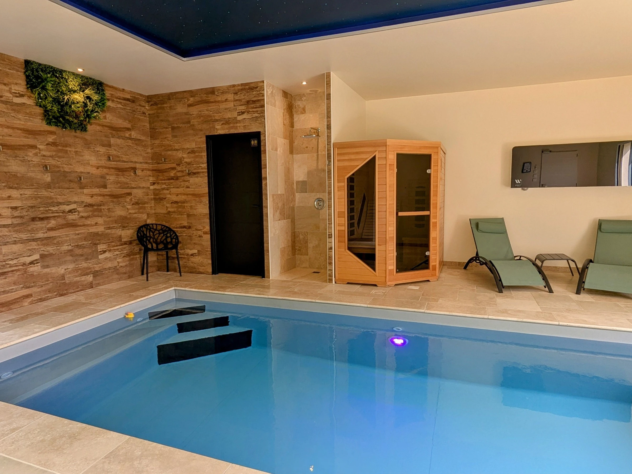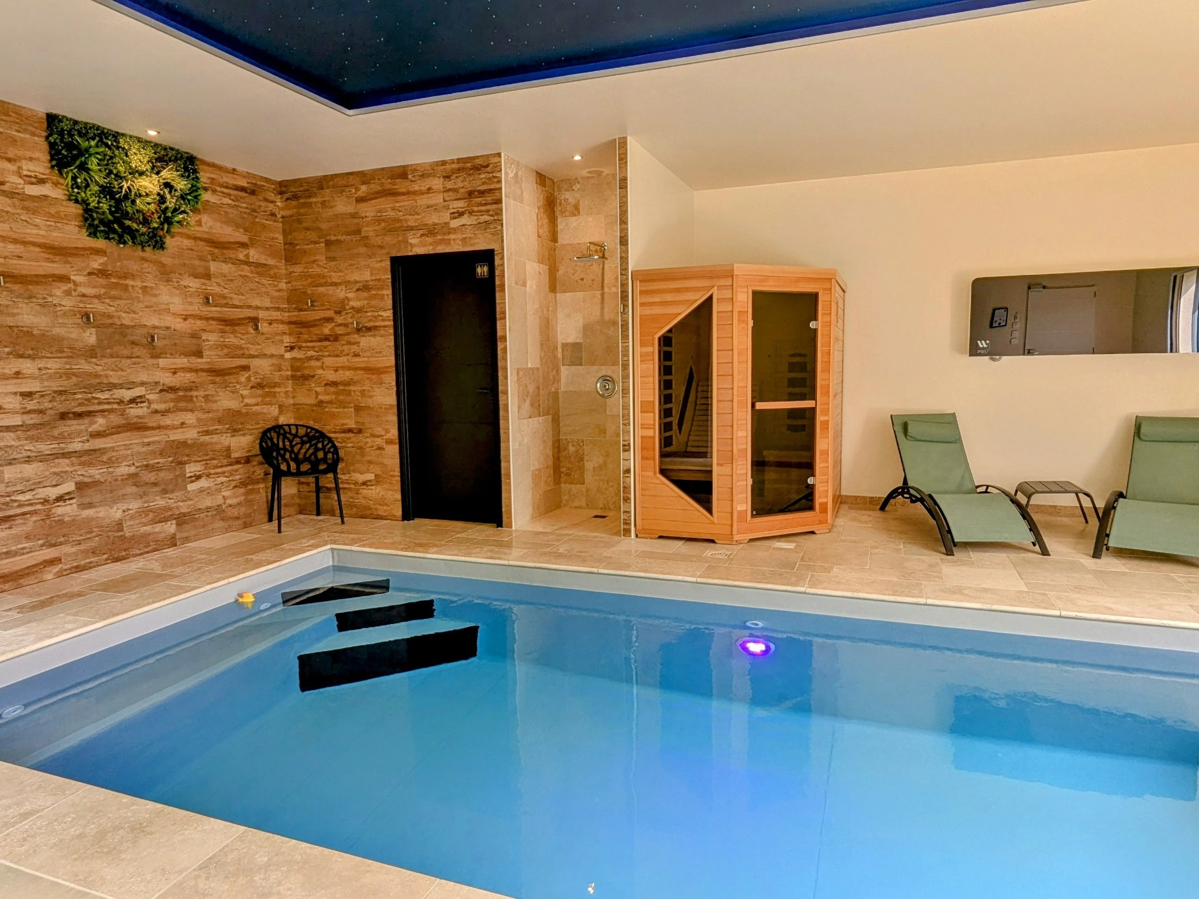 Wellness area with heated indoor pool, sauna, and jacuzzi - outdoor spa. Relaxation area with free access and included in the overnight stay from 8:30 [hidden] to 10:30 [hidden] and from 5:00 [hidden] to 10:00 [hidden] Private access by reservation from 10:30 [hidden] to 5:00 [hidden] for 1.5-hour slots included between two overnight stays.
