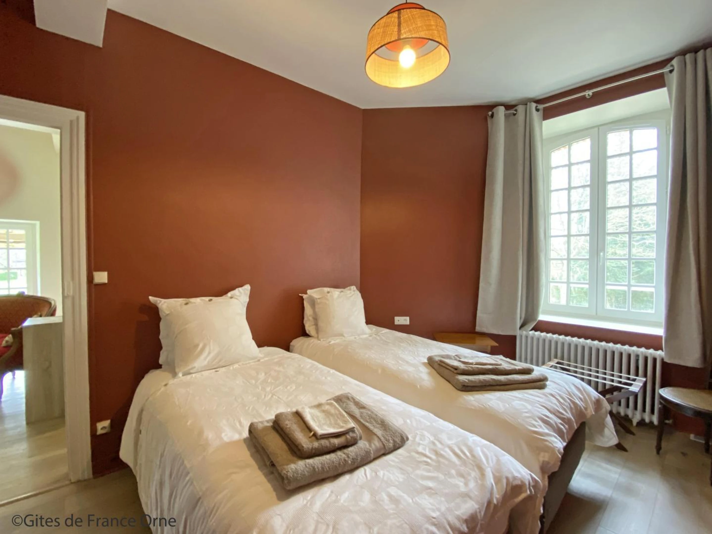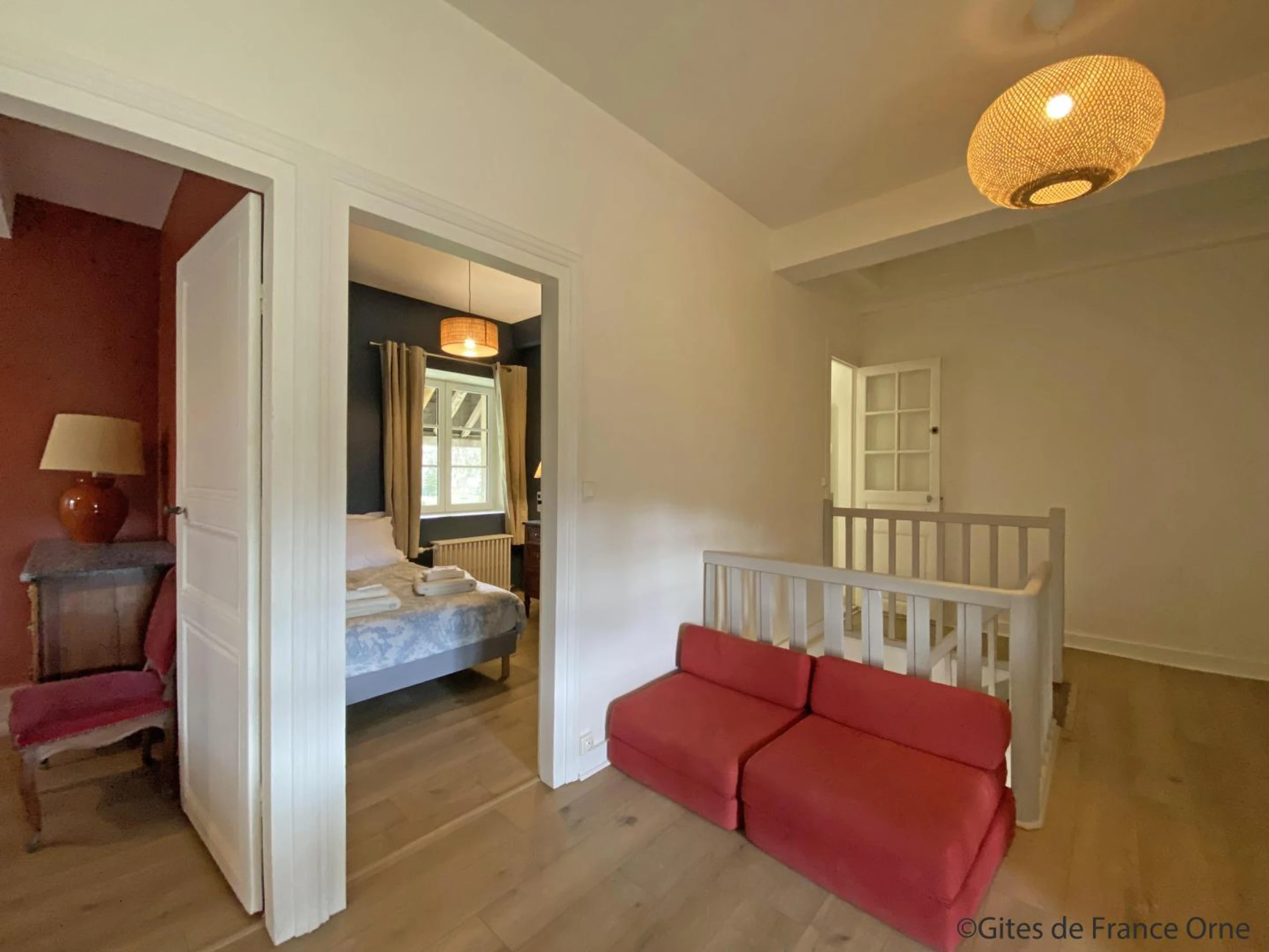 Horse stalls are available on site (€15/horse) and pastureland is available upon request. The farmhouse of the 18th-century Château de Sassy features a magnificent French garden, a listed historic monument. You'll appreciate the peace and quiet, the excellent bedding, and the view of the château, surrounded by forest and horse pastures. From the cottage, you can access hiking trails in the Ecouves national forest and as far as the Vrigny pond. For fishing enthusiasts, the Blanche Lande pond is 8 km away. Don't miss the equestrian shows at the Haras national du Pin (18 km away), the Sées Cathedral, the Château de Médavy and Carrouges, and the Lace Museum in Argentan.