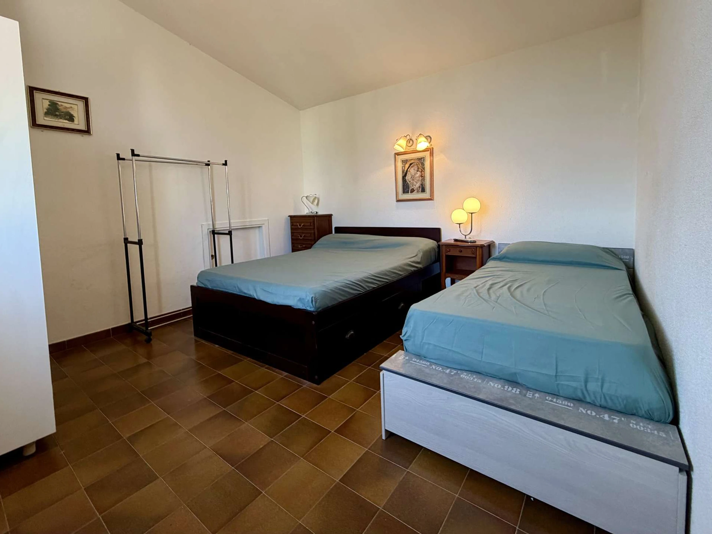 A l'Étage, vous disposez d'une chambre mansardée climatisée avec un lit double et un lit simple