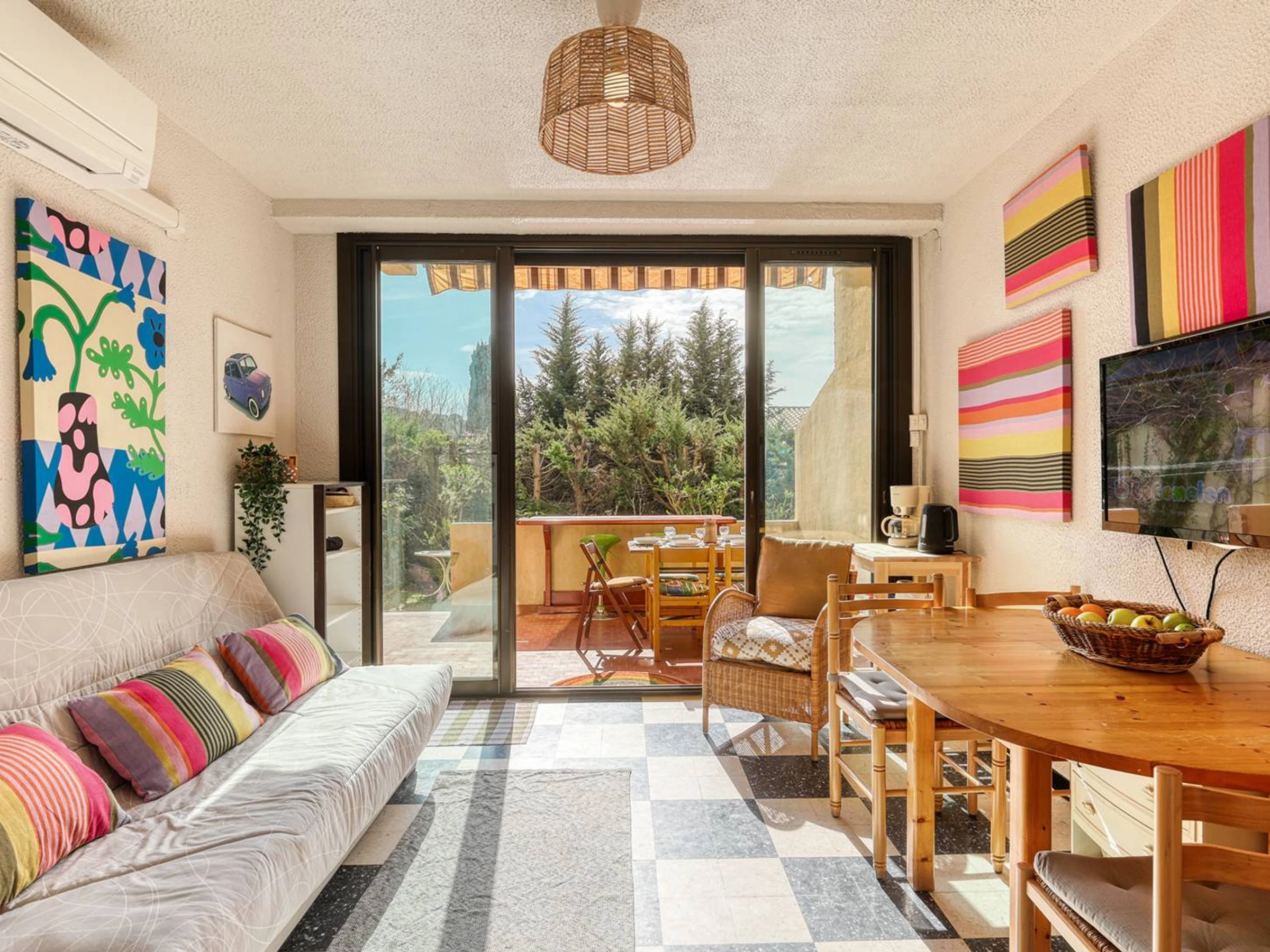 Cette agréable location de vacances climatisée est située en rez-de-jardin d'une petite copropriété de 8 appartements. Elle vous propose :
