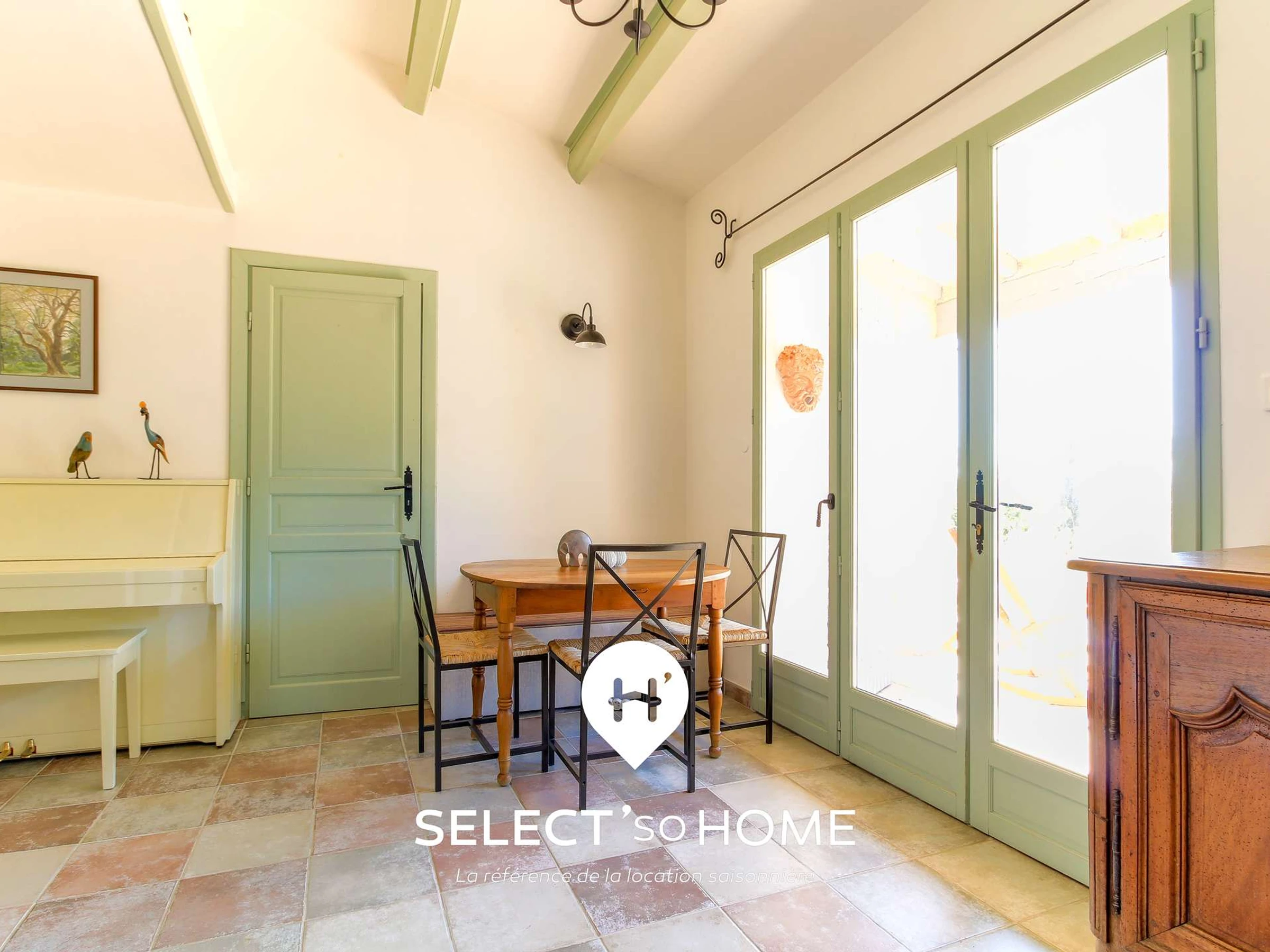 It all starts with a charming façade, tucked into a lush Mediterranean garden. Step inside, and you’re welcomed by timeless character: terracotta floors, pale green beams, handpicked vintage furniture blending authenticity and comfort. The sunlit living room flows into a cosy dining area - perfect for candlelit dinners or laid-back lunches. The kitchen? Fully equipped and ready for anything, from homemade feasts to market-bought delicacies (or just reheating yesterday’s pizza - we don’t judge).