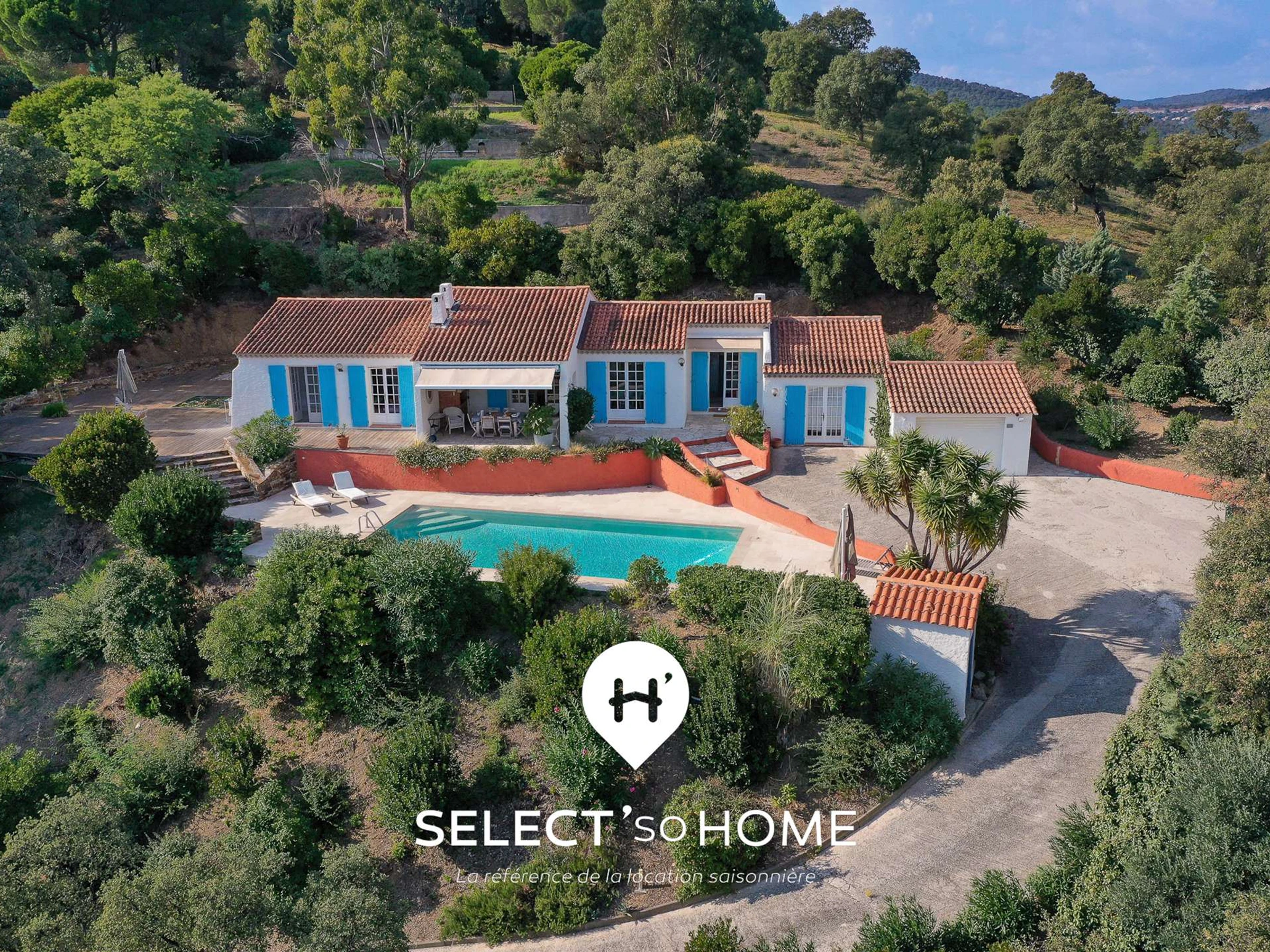 Perched on the peaceful hills of Bormes-les-Mimosas, in the quiet residential area of Pas de Courtin, it overlooks green valleys stretching all the way to the Mediterranean. There’s calm, there’s light - and that quiet certainty you’ve found your summer hideaway.