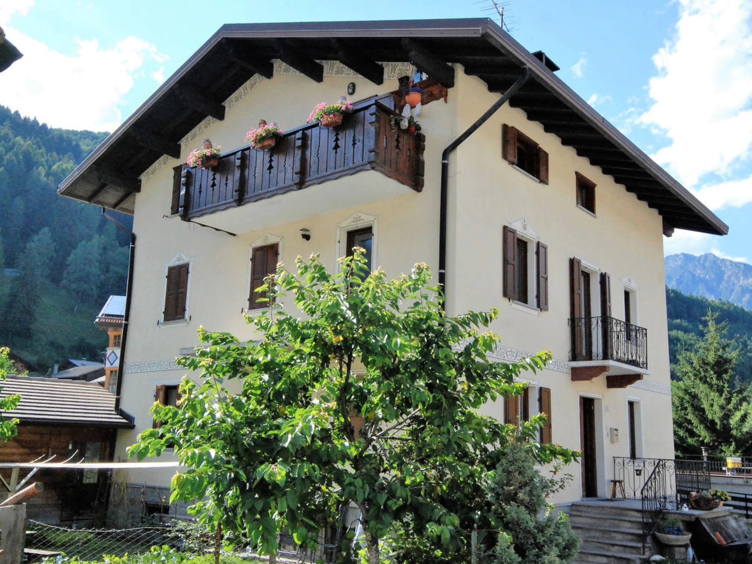 Comfortable 2-family house "Casa Trabuk", 1'120 m [hidden], 3 storeys, detached. In the hamlet Santa Lucia 1.3 km from the centre of Bormio, in a quiet, sunny position, 2 km from the skiing area. For shared use: garden furniture, barbecue. Private: property, garden 70 m2 (fenced) with lawn. Garden furniture, barbecue. In the house: storage room for bicycles, storage room for skis, central heating system. In Winter: please take snow chains. Parking at the house. Grocery 50 m, supermarket 2 km, restaurant 500 m, bus stop 300 m, outdoor swimming pool 2 km, indoor swimming pool 2 km. Golf course 4 km, tennis 2 km, riding stable 2 km, chair lift 2 km, ski school 2 km, ice field 2 km, children's playground 1 km.