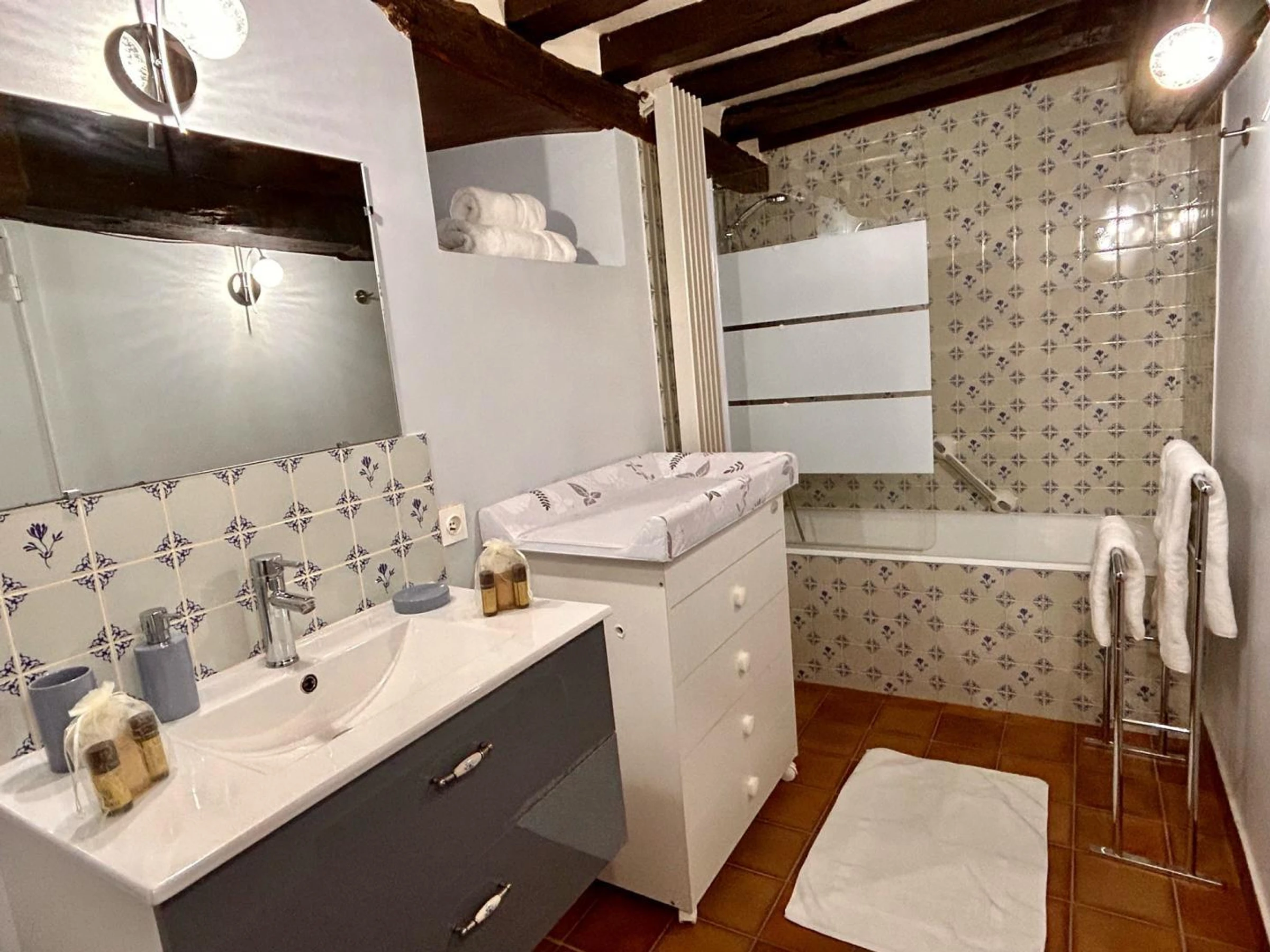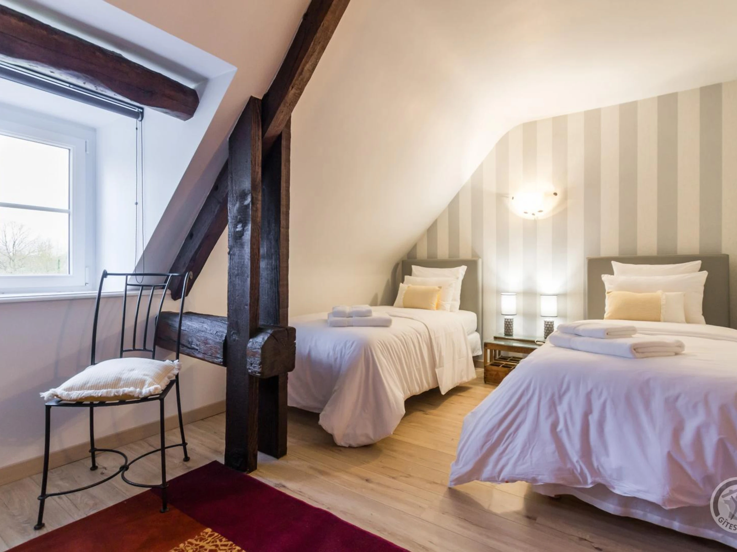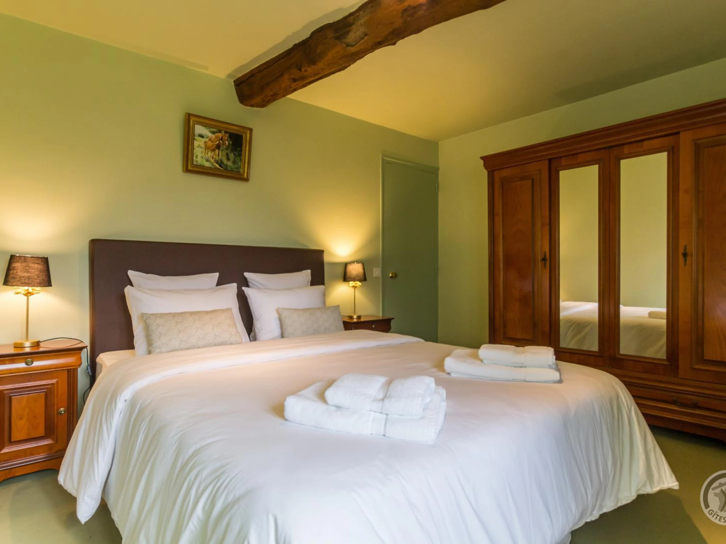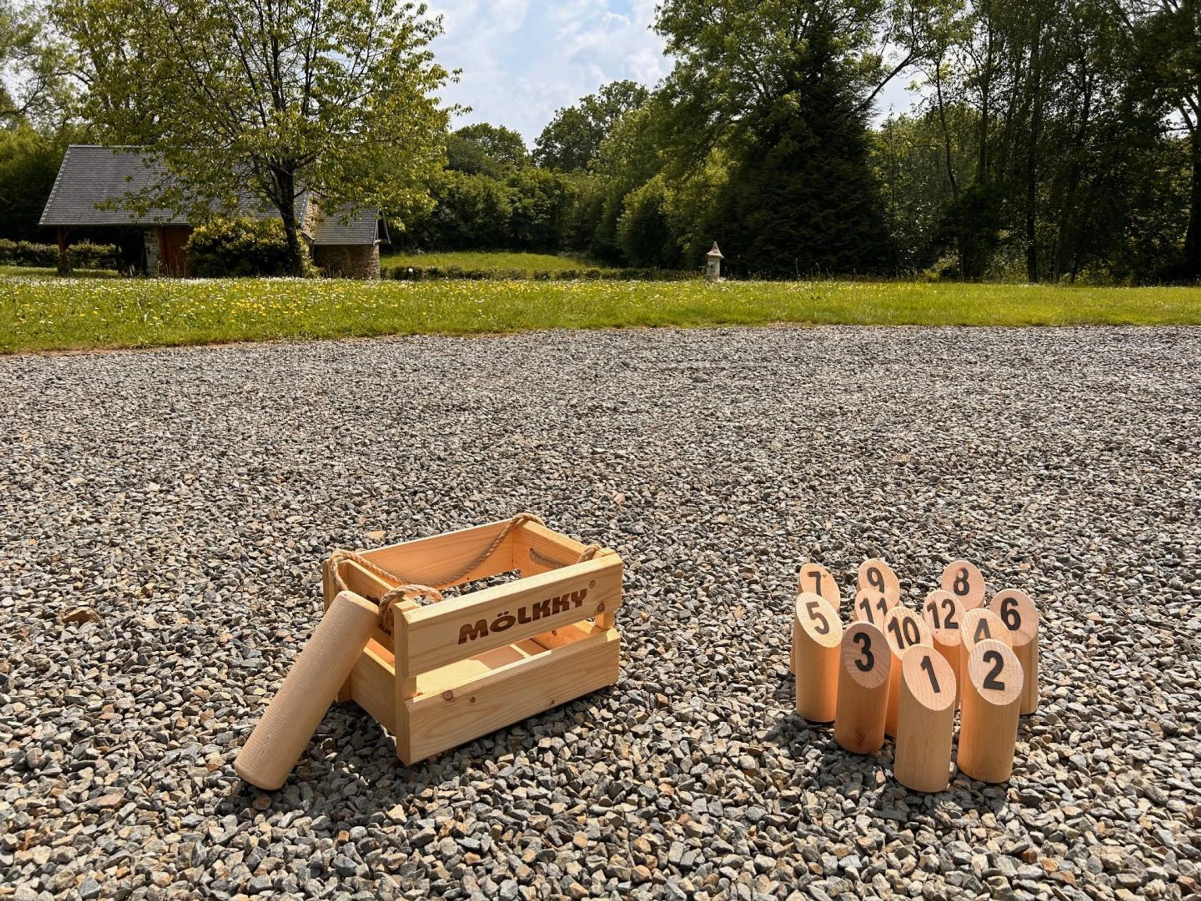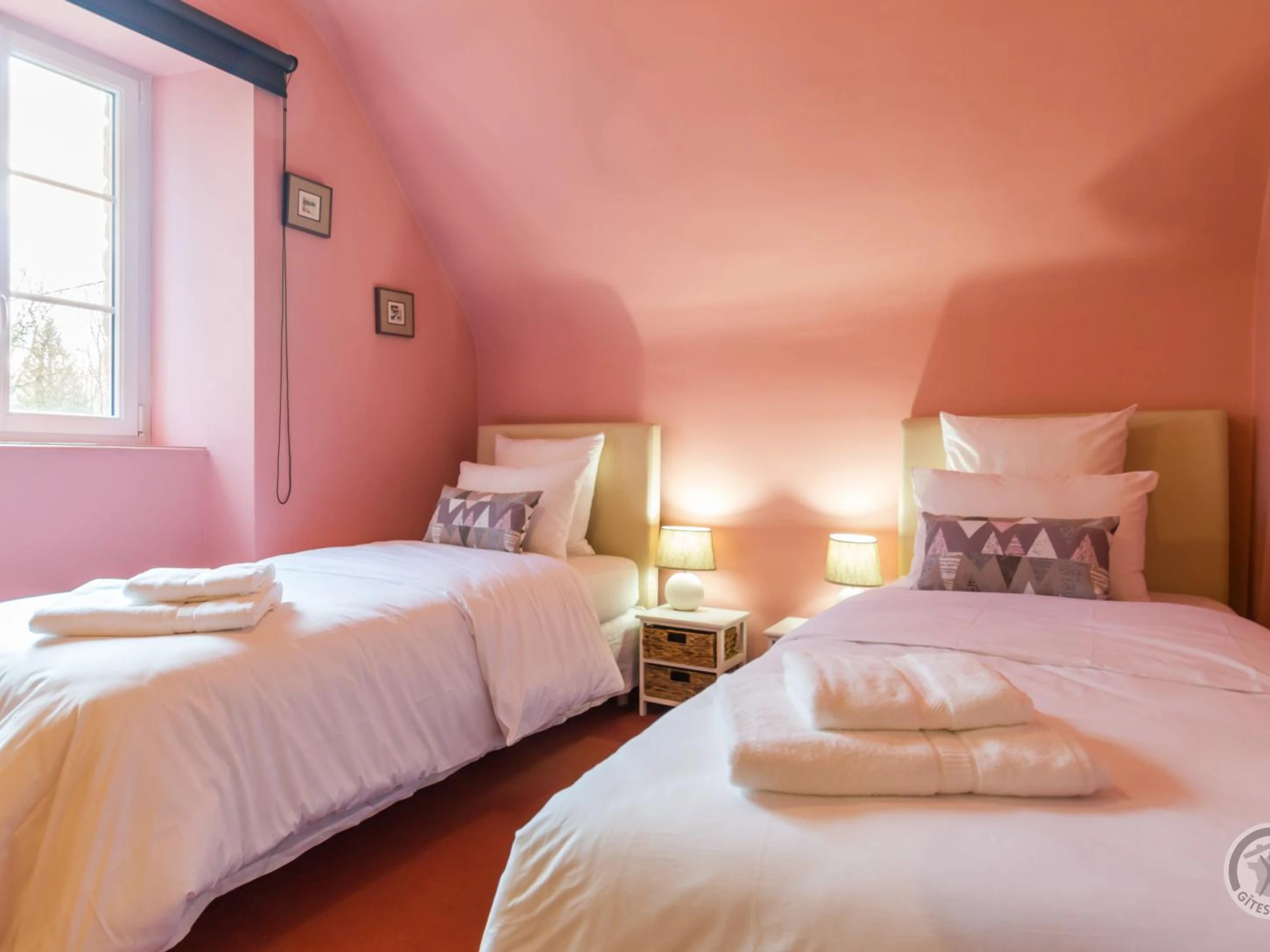 Detached house with different levels. Living room with open-plan kitchen (oven, electric hob, microwave, dishwasher, fridge with freezer), lounge (smart TV, internet, DVD player, PS3 console, Bluetooth speaker). On the ground floor: Bedroom 1 (queen-size bed) with en-suite bathroom and toilet. Laundry room (washing machine, tumble dryer) with additional shower room and toilet. On the first floor: Bedroom 2 (two single beds), Bedroom 3 (queen-size bed), washroom (toilet and sink), Bedroom 4 (queen-size bed), Bedroom 5 (two single beds) and a sofa bed (double bed) and bathroom. Baby equipment available on request (one wooden cot, one folding bed, two high chairs). Geothermal central heating included. Bed linen provided. Towels available for hire. Cleaning service included. Caution: Pre-authorization by credit card required. Large, private, unfenced grounds (5000m²). Garden furniture. Barbecue. Sun loungers. Clubhouse with ping-pong, foosball, darts, children's playhouse, and outdoor games (balls, volleyball, badminton, molkky). Petanque court. Free parking. The path leading down to Rochelu gradually immerses you in greenery. Chestnut trees greet you, and your mind immediately wanders in this unspoiled environment. You will be warmly welcomed by Caroline in this authentic family home, which sleeps up to 12. Everything is perfectly arranged for your comfort and well-being. Families, in particular, will spend happy days here, barely disturbed by birdsong and the whisper of the wind in the trees. With a little patience, you might spot the rich wildlife of our countryside (squirrels, hedgehogs, deer, etc.). With its monumental fireplace, the beautiful living room is the heart of the house and will be the perfect place for your convivial evenings. But when the warmer weather arrives, the old porch and its magnificent granite wine press offer a superb setting for an aperitif at twilight. A timeless charm pervades the 154m² of this longère (traditional Breton farmhouse) and envelops you in a very comforting atmosphere.