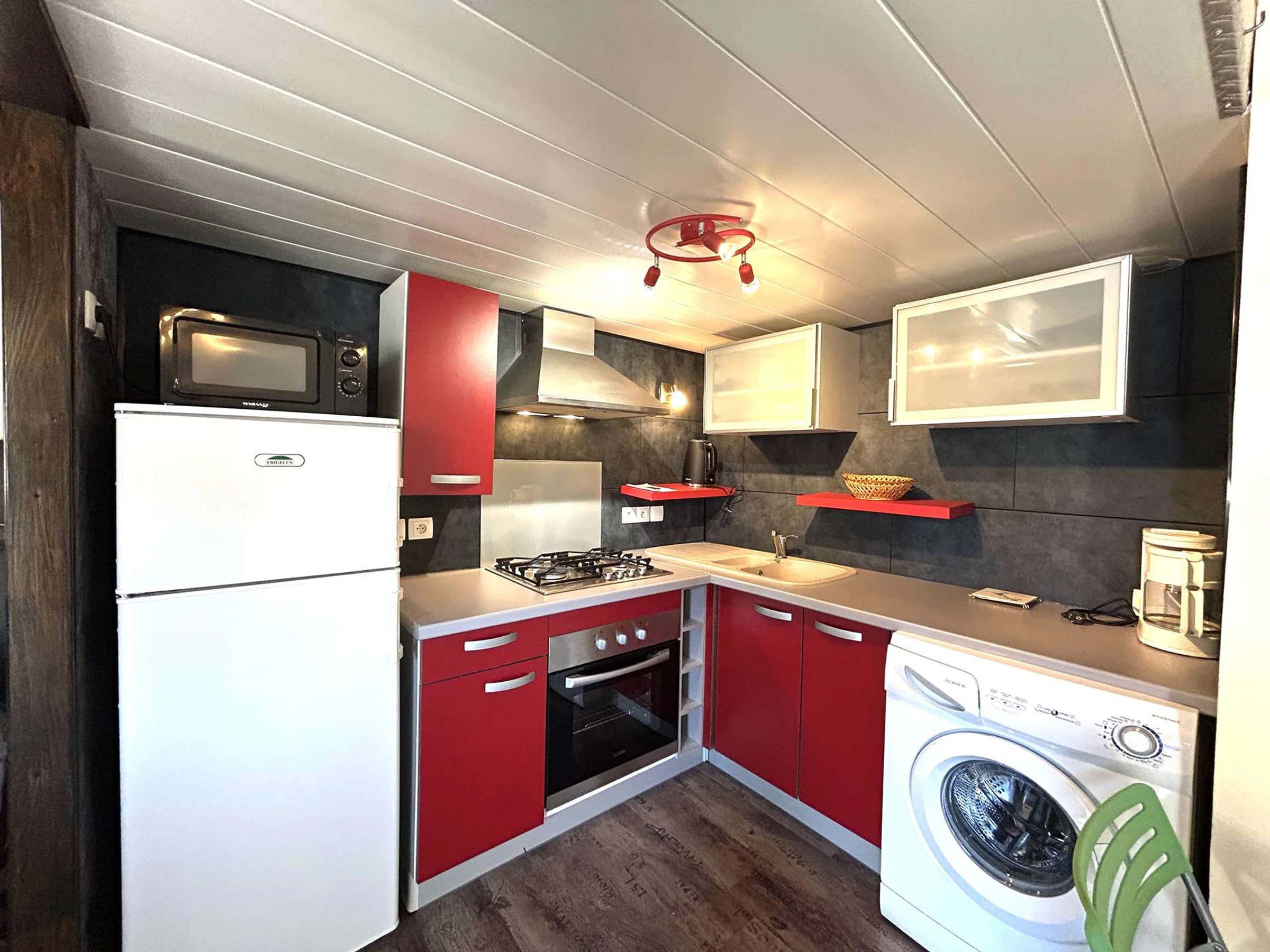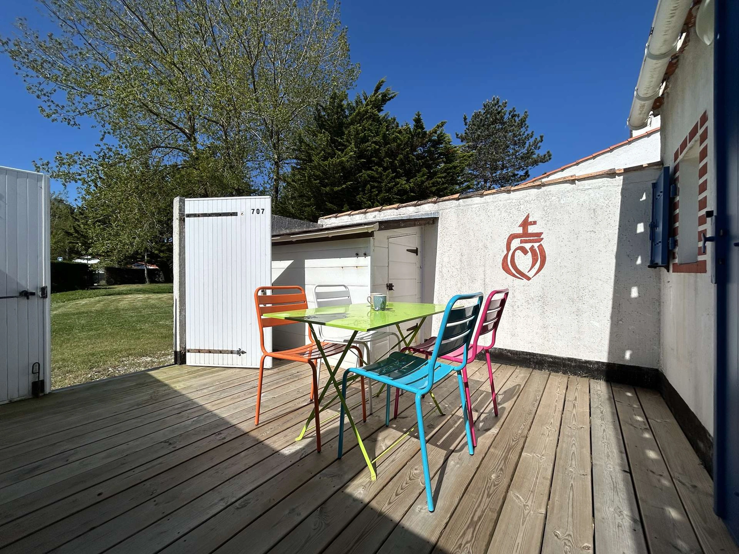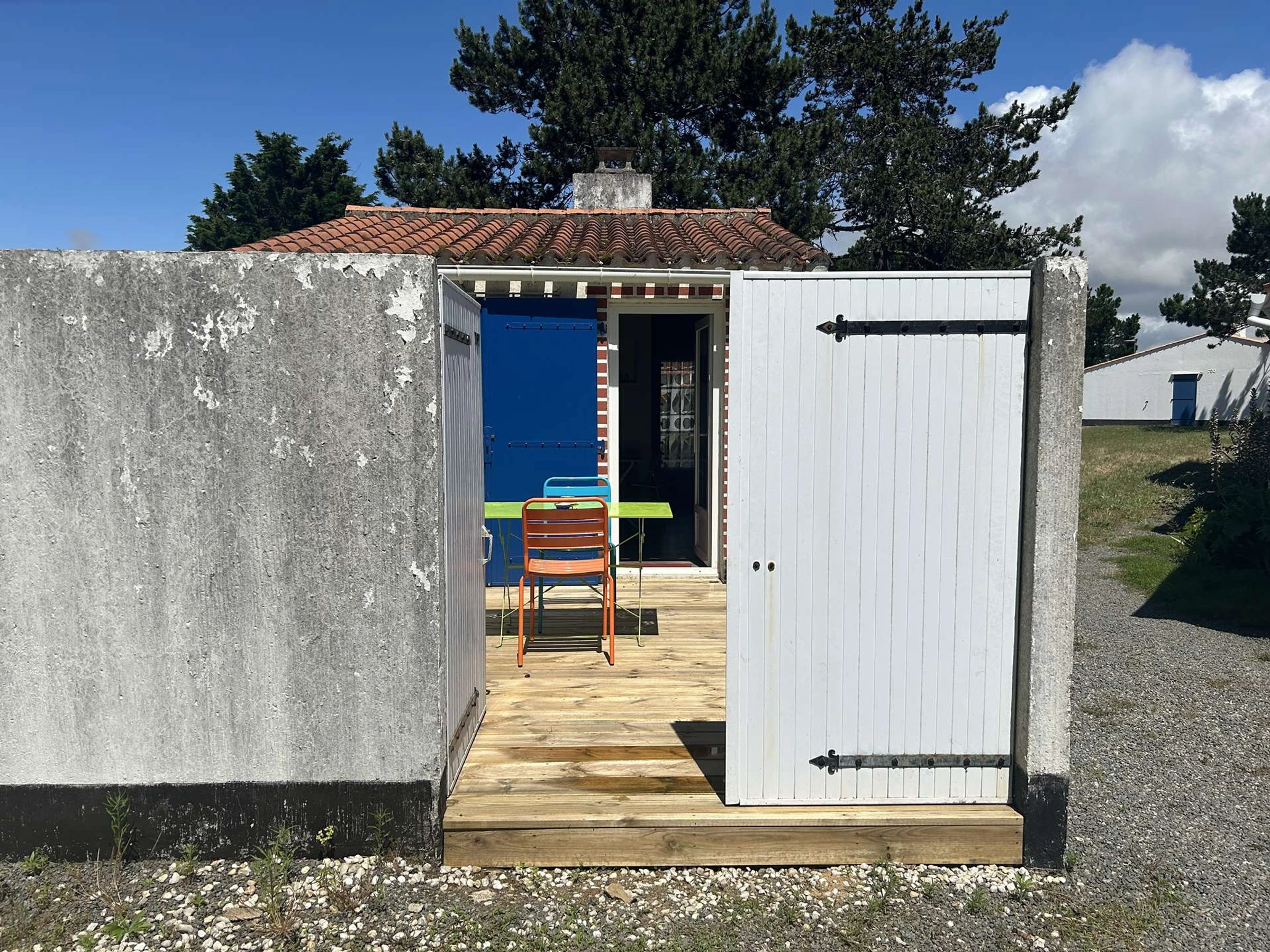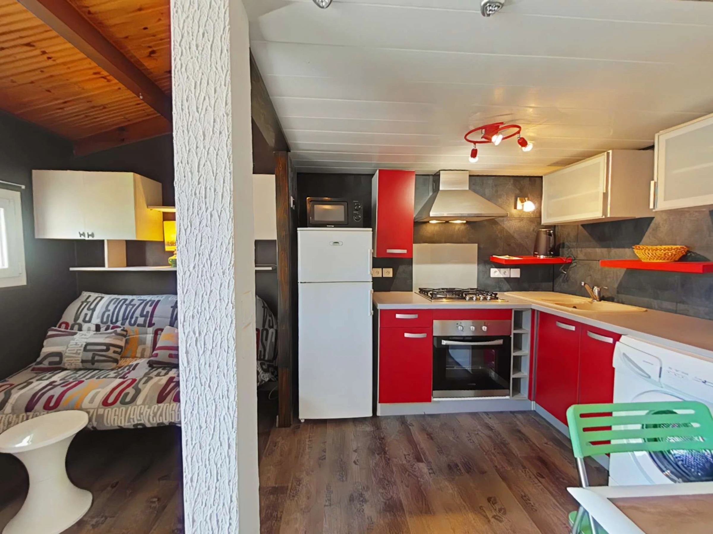 A 1Km500 du centre de la Station, la Résidence Les Fermes Marines se compose de pavillons mitoyens. Cette petite maison de vacances comprend une entrée, un coin-cuisine aménagé avec réfrigérateur et lave linge, un séjour avec canapé convertible 2 personnes et télévision, une salle d'eau et wc.