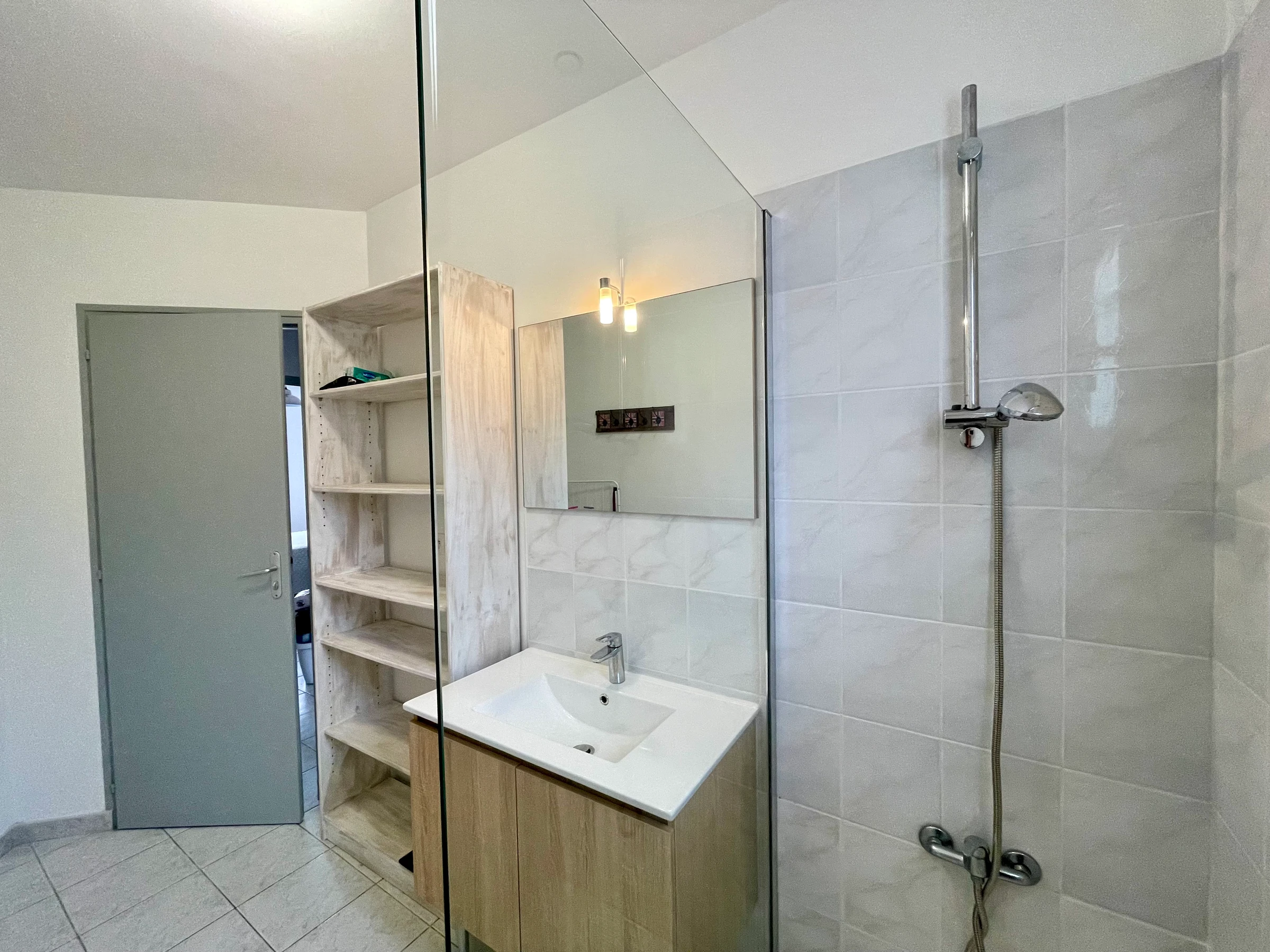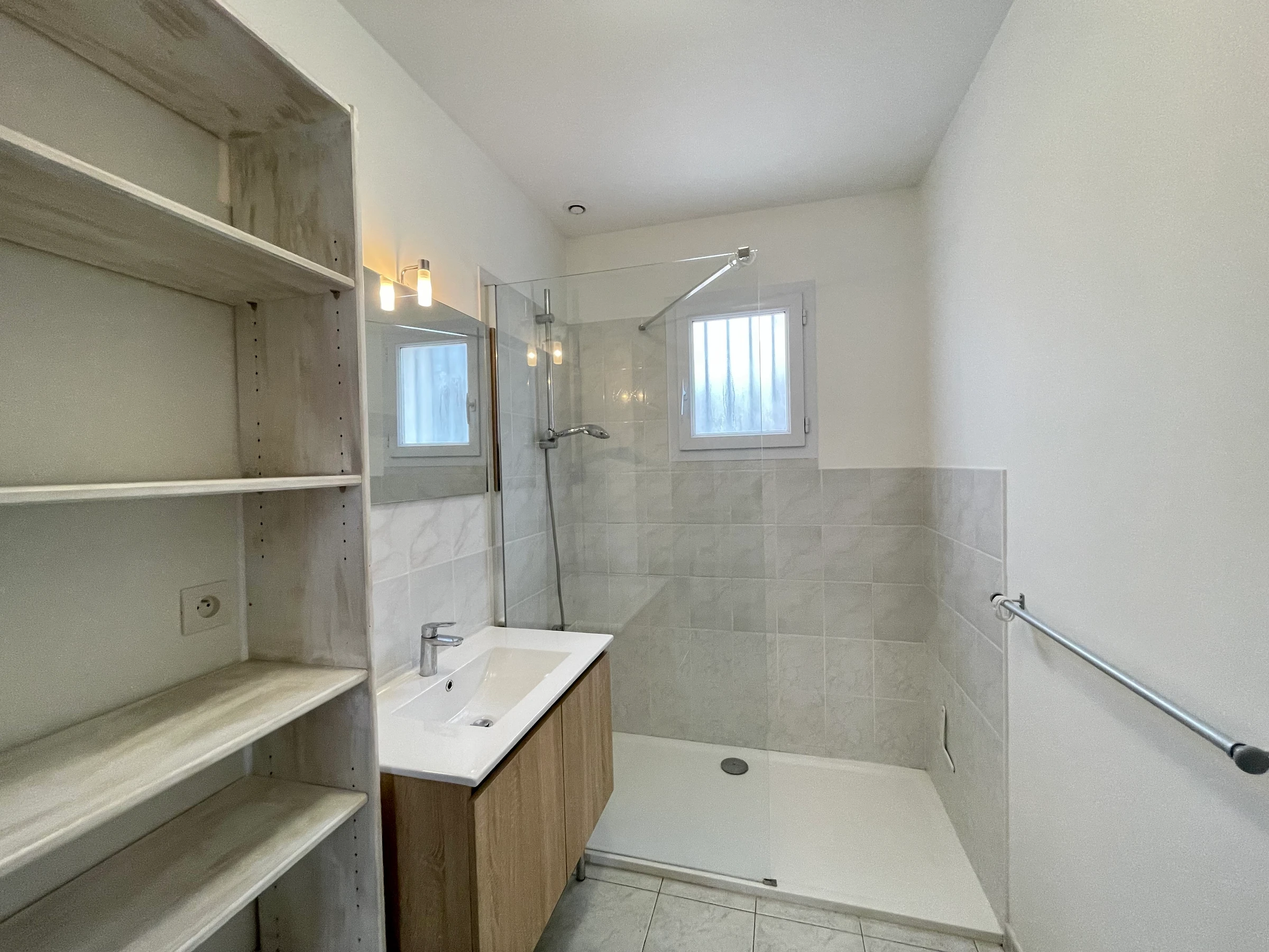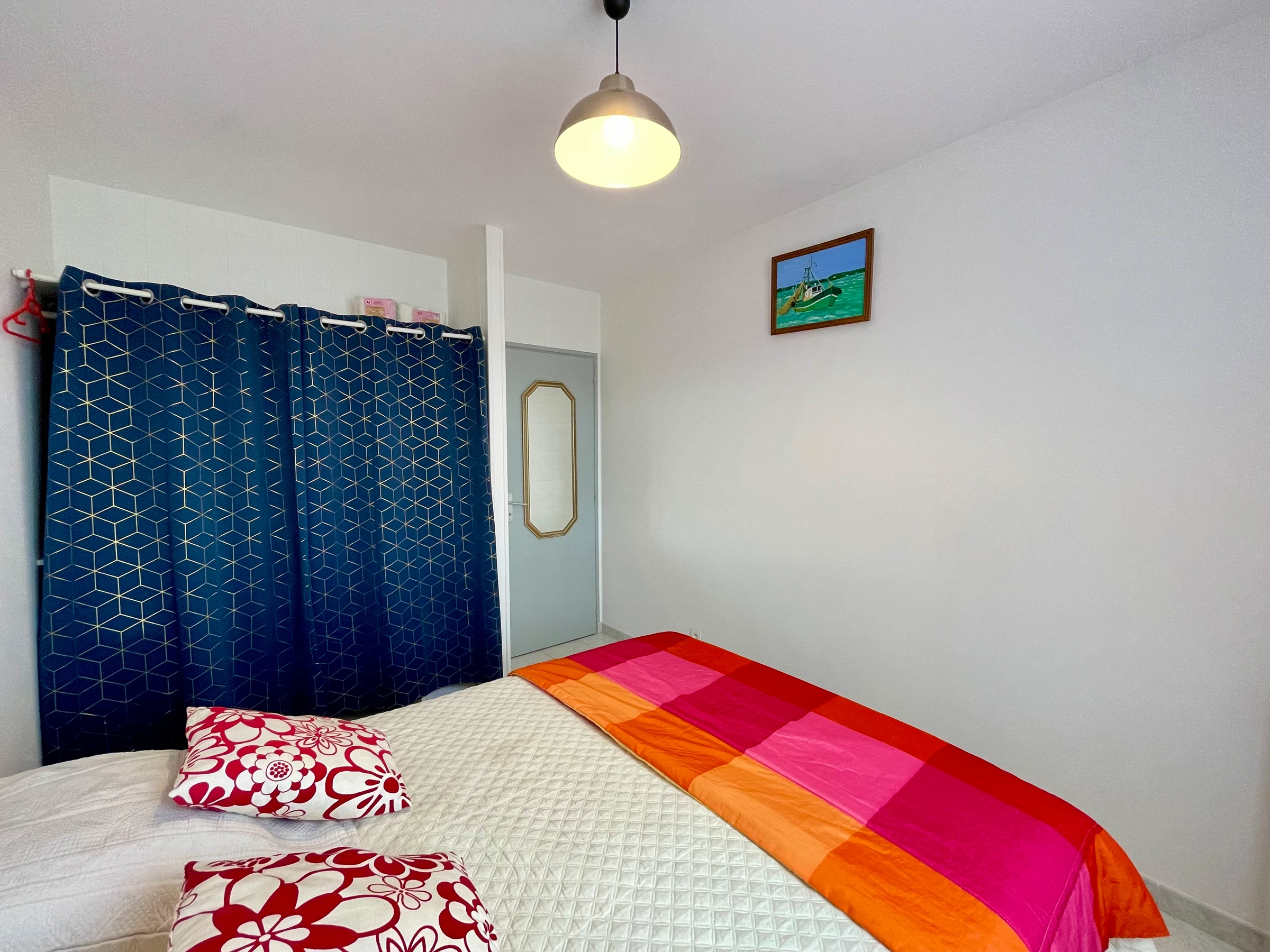 Bedroom 2 (garden side): a double bed (140cm) + a walk-in closet.