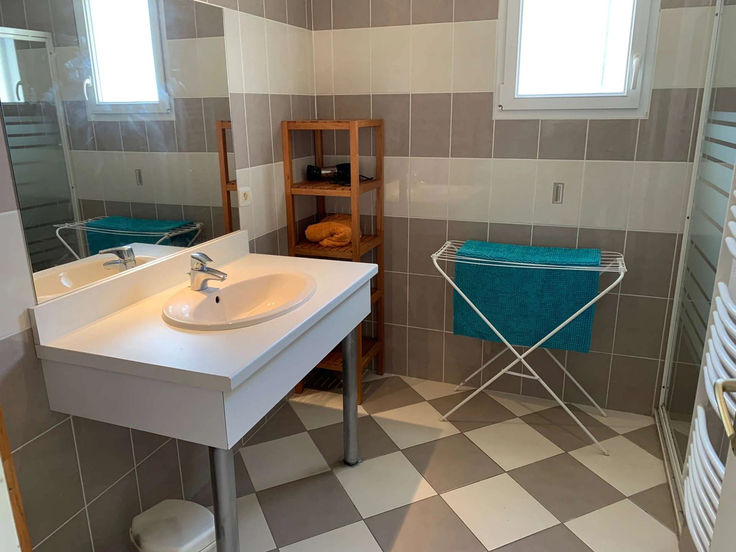 Deux chambres avec un lit 140 et deux lits 80 avec chacune un dressing, une salle d'eau avec douche et meuble vasque, un WC séparé.