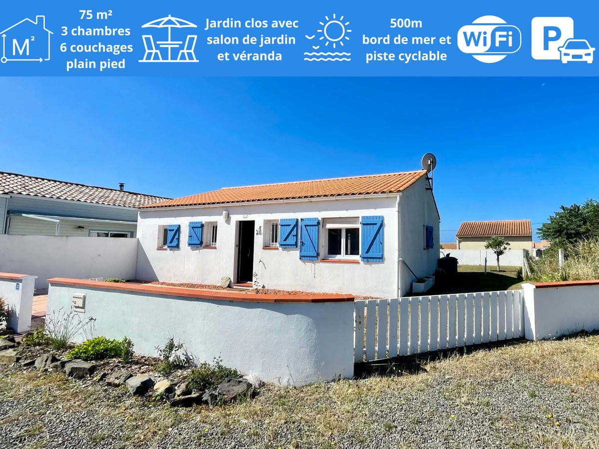 Sauzaie district, 500m from the sea, pretty single-storey house comprising a spacious living room with a fitted and equipped kitchen (ceramic hob, multifunction microwave, fridge with freezer, dishwasher, mini-oven), a dining area (table, chairs) and a lounge area (sofa, armchairs, coffee table, TV). WIFI access.