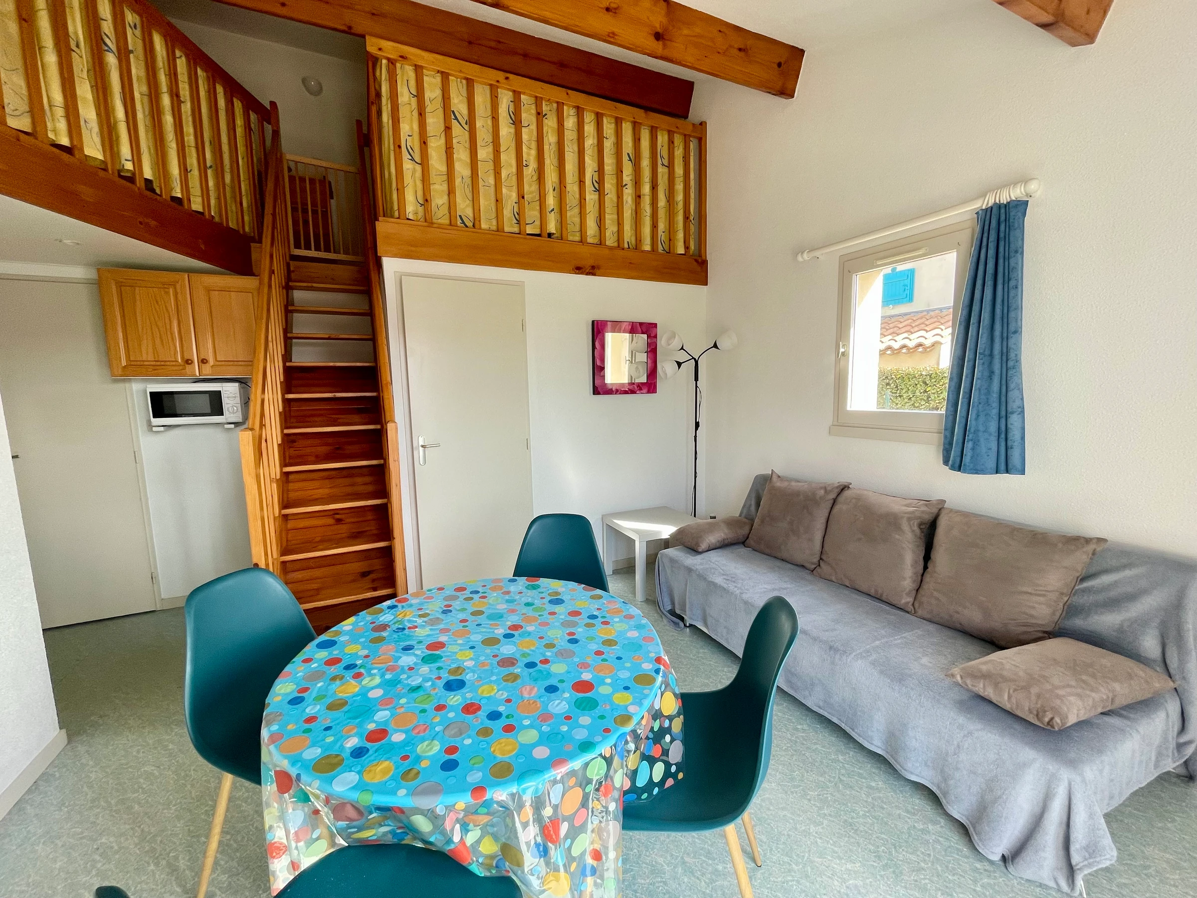 Only 300m from the Dunes beach and in the immediate vicinity of the cycle path, type 2 mezzanine house located in a holiday residence with heated communal swimming pool (open from mid-June to mid-September) and tennis courts.