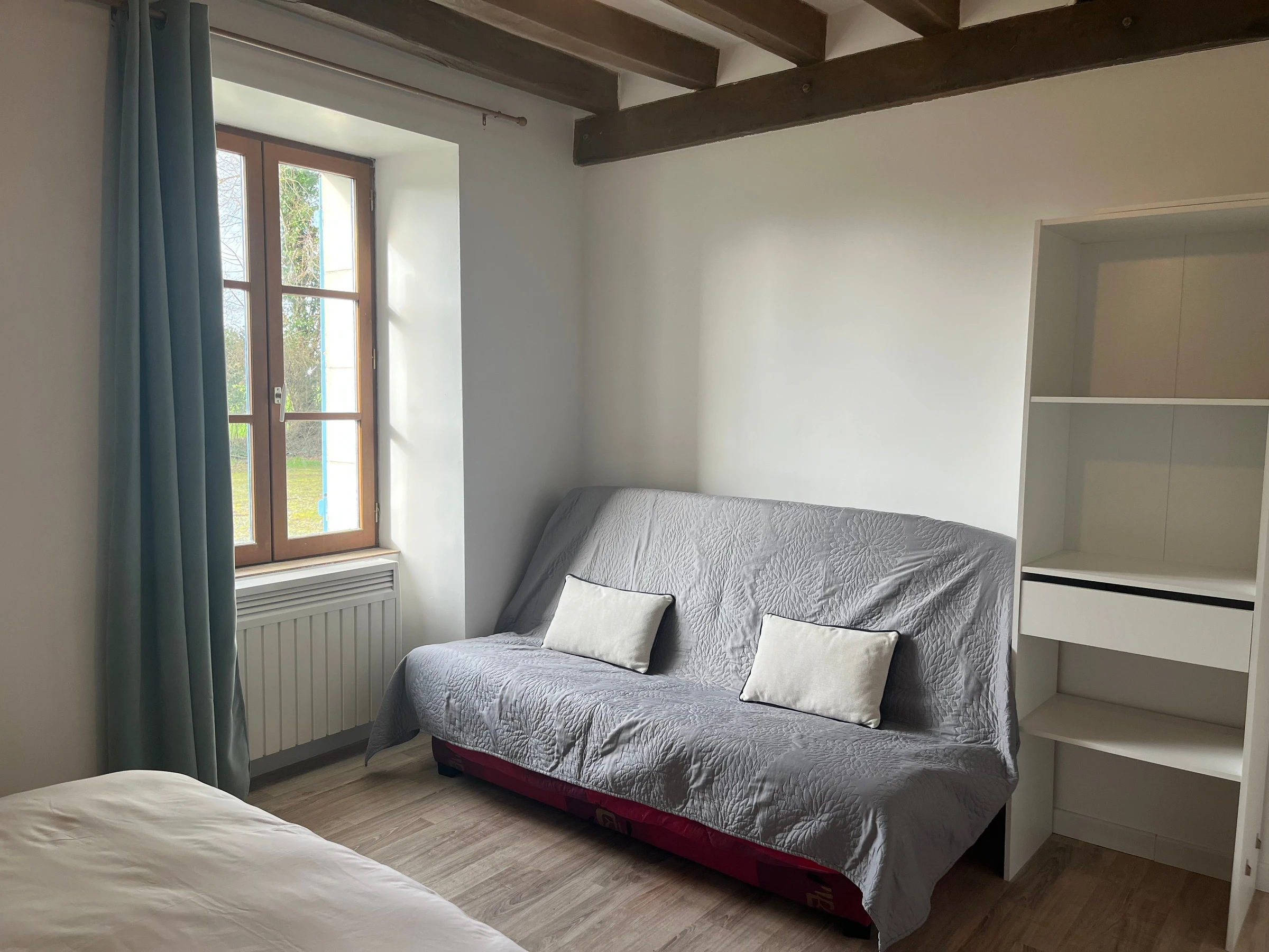 The outdoor space is approximately 1500 m² in the middle of fields, 2 hours and 15 minutes from Paris, and 25 minutes from Le Mans city center. Nearby attractions include the Plantagenet City, the Epau Abbey, the PAPEA amusement park, Saint-Julien Cathedral, the Automobile Museum in Le Mans, and the Wood Museum in Jupilles, in the heart of the Bercé Forest, where numerous hiking, mountain biking, and horseback riding trails begin.