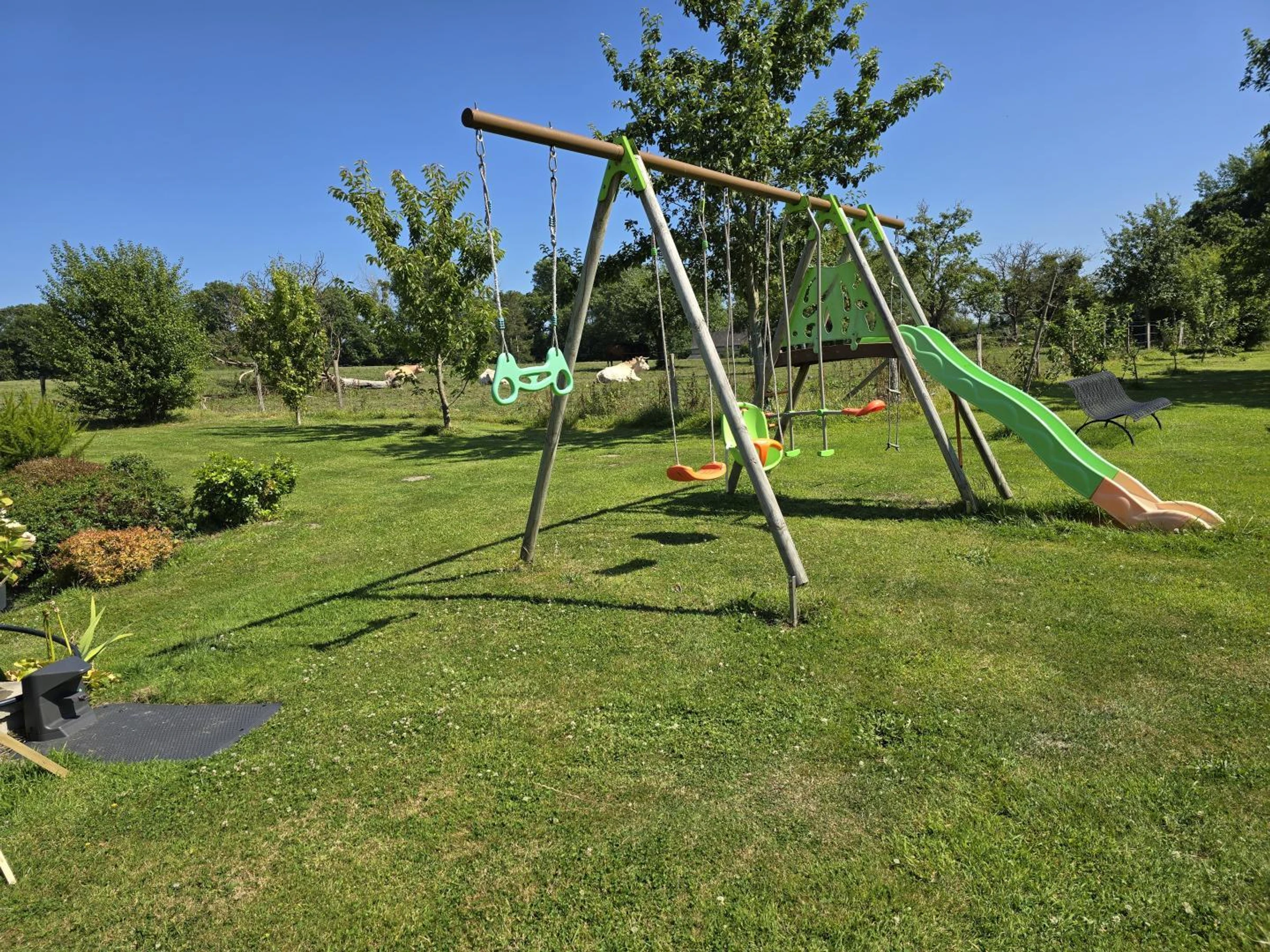The price does not include: charging an electric or hybrid vehicle. Fireplace, 1 bedroom on the ground floor, TV, Washing machine, Dryer, Dishwasher, Microwave, Freezer, Freezer compartment, Bed linen provided, Linen rental available, Baby equipment, Enclosed grounds, Internet access, Wellness facilities, Garden furniture, Barbecue, Swimming pool, Parking, Terrace, Garden, Pets allowed, House, Swing set, Semi-detached, Optional cleaning service.