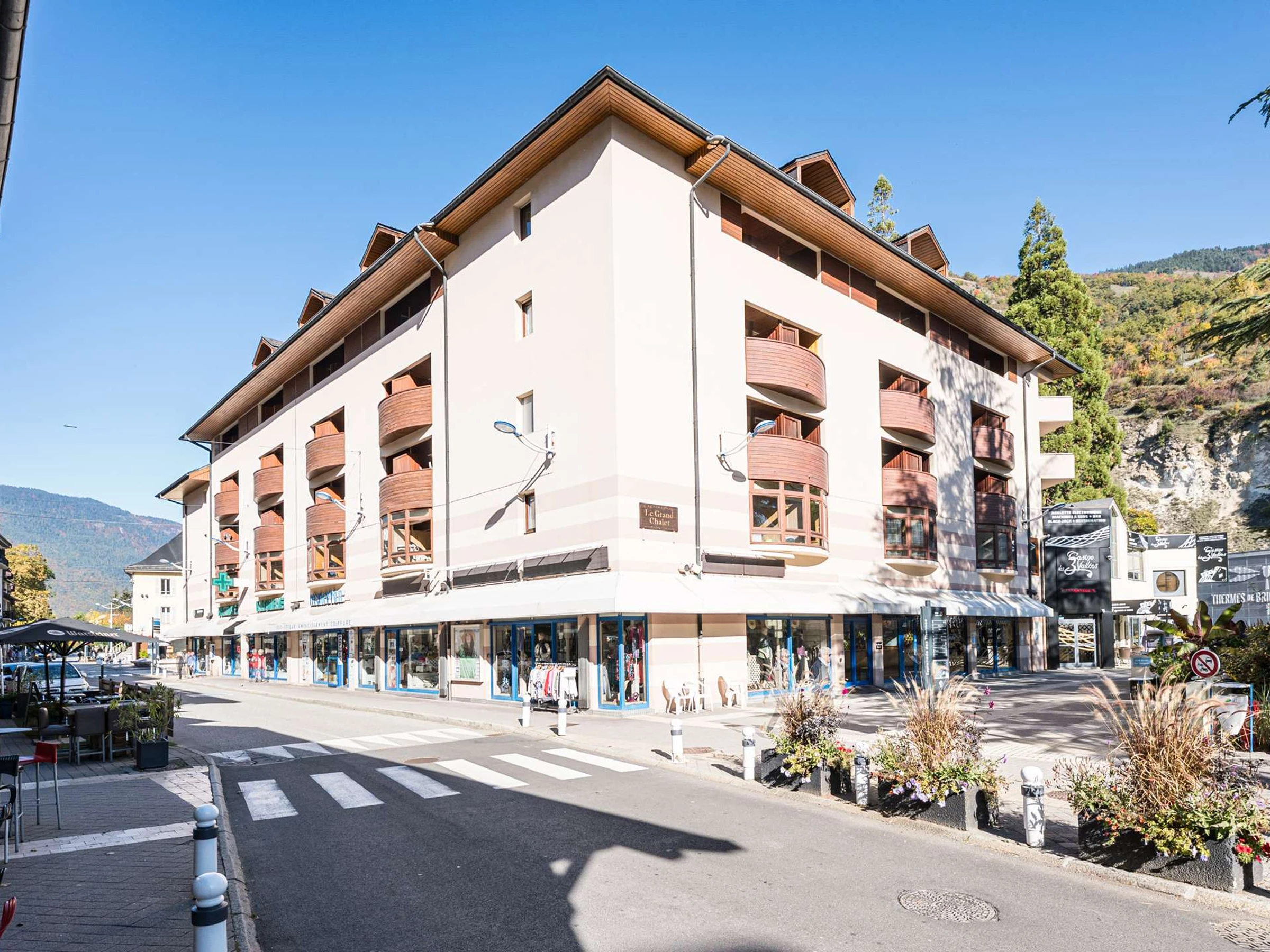 Ideally located in the “GRAND CHALET” residence, in the heart of Brides-les-Bains, the apartment enjoys a privileged position close to all amenities: restaurants, bars, grocery store, ski shop, and the thermal spa.