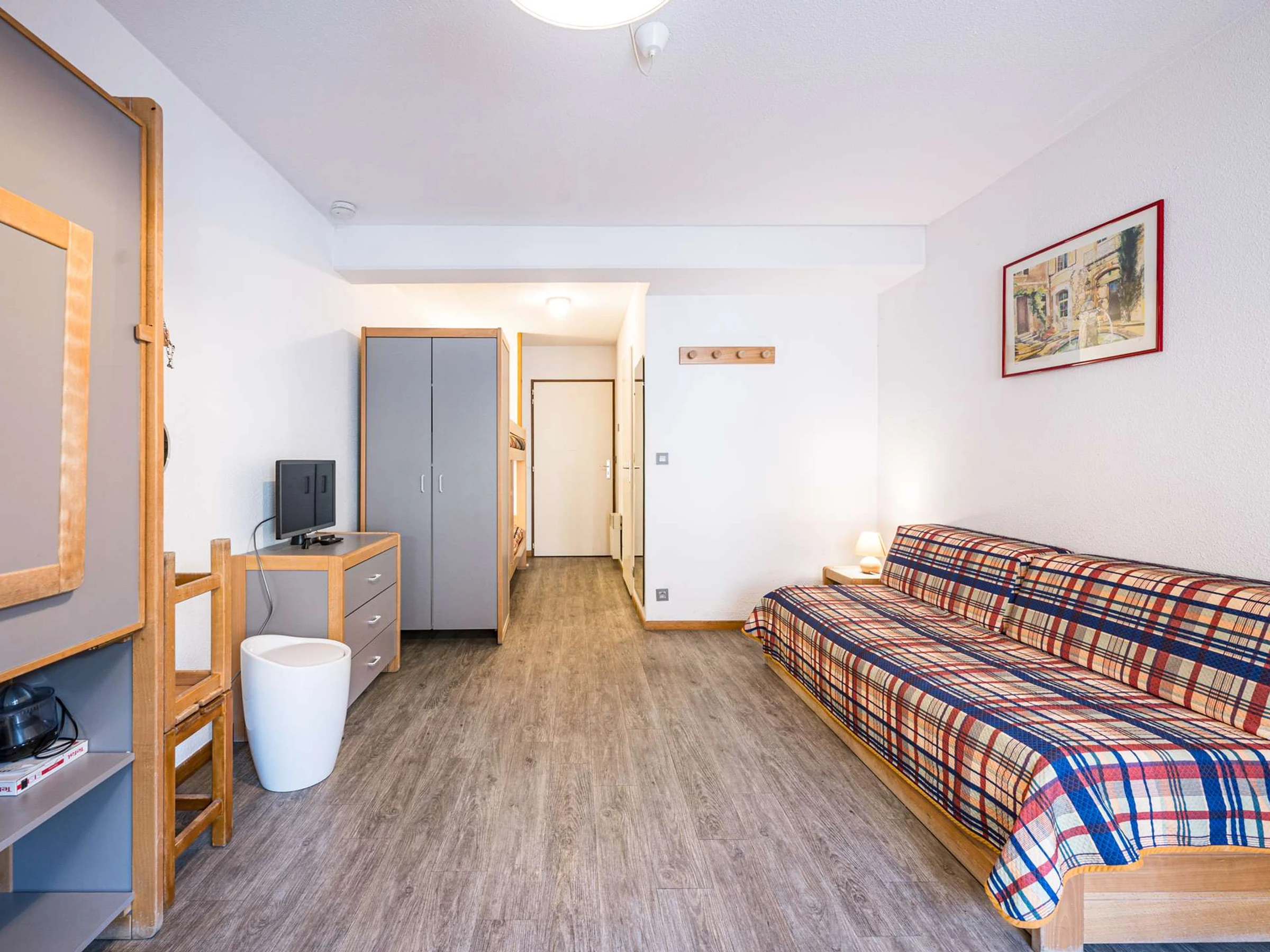Located on the 1st floor of a secure residence, this studio is equipped to accommodate up to 4 guests. It offers all the necessary comfort for a pleasant stay and includes:
