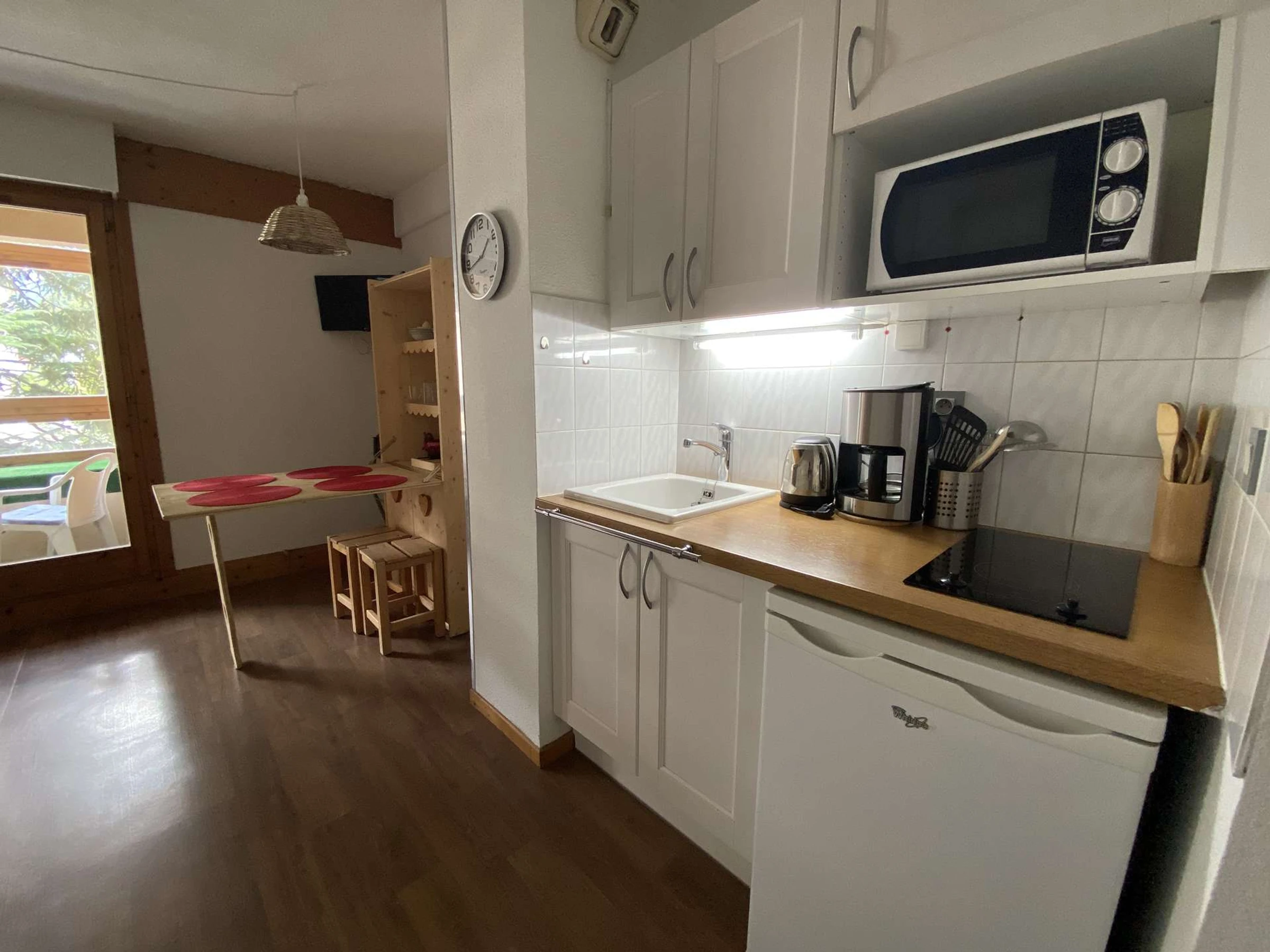 Located on the 1st floor of a secure residence, this studio is fully equipped to accommodate up to 2 guests. It offers all the comfort needed for a pleasant stay and is composed as follows: