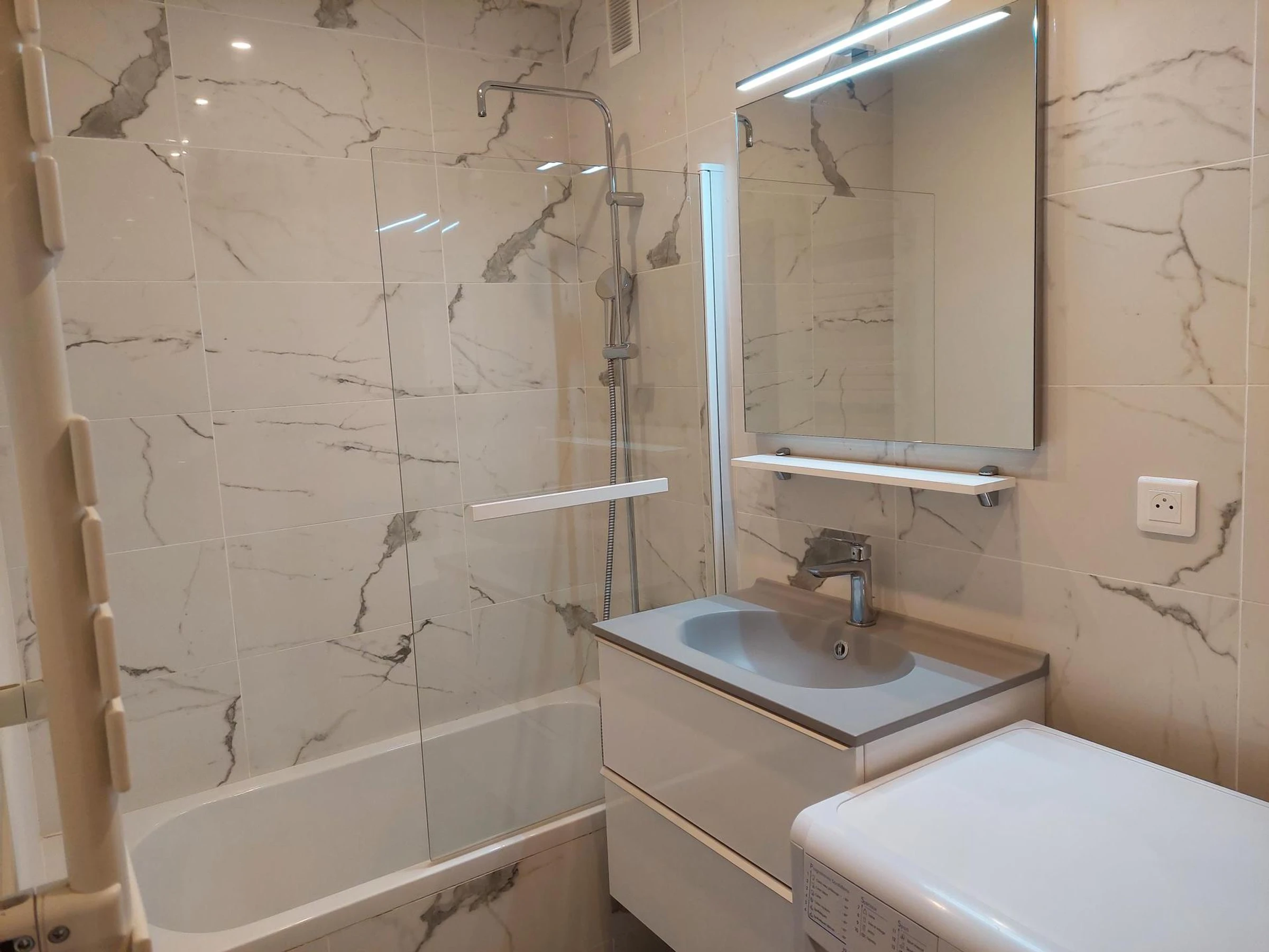 Bath, washing machine and toilets.
