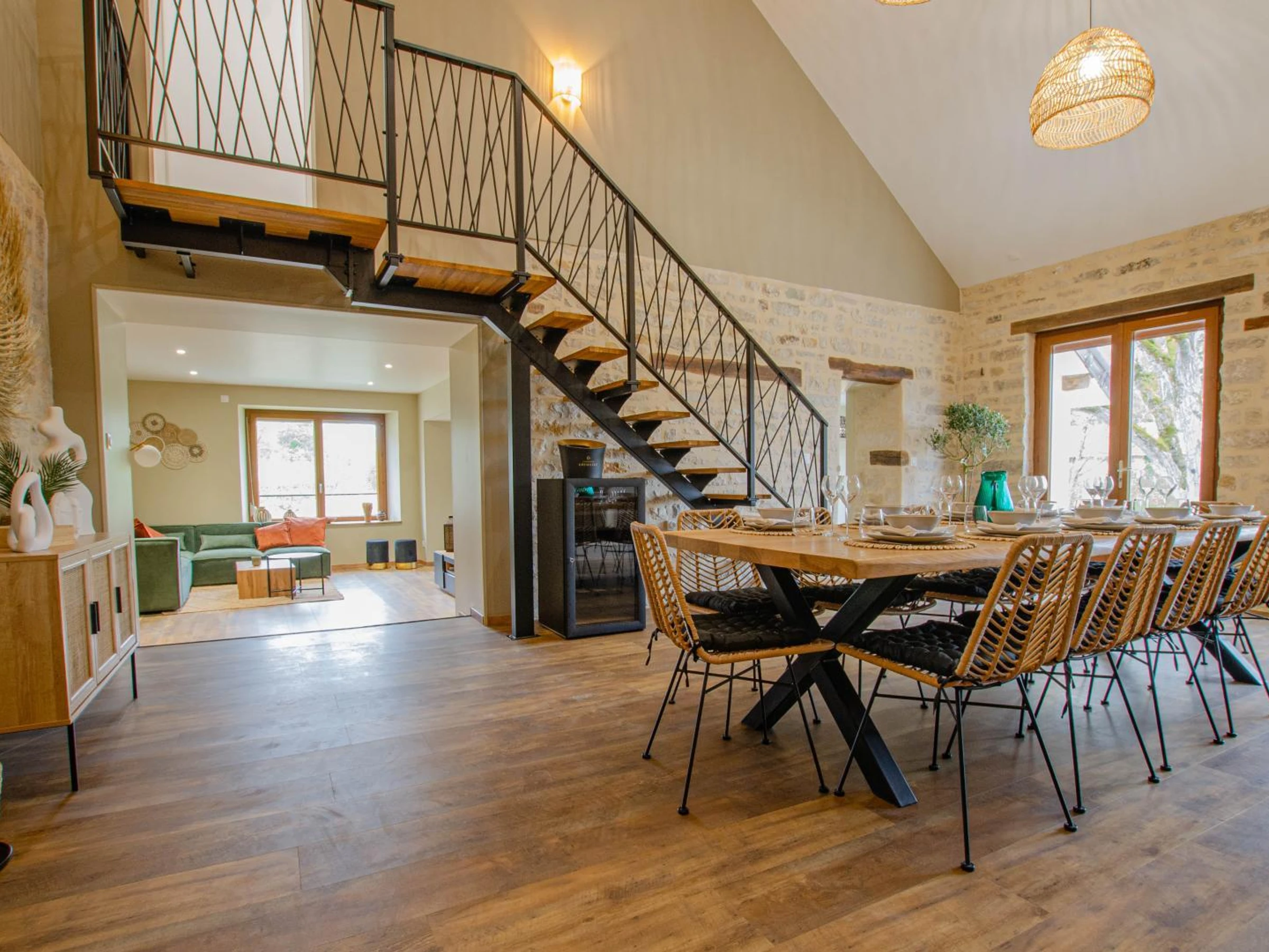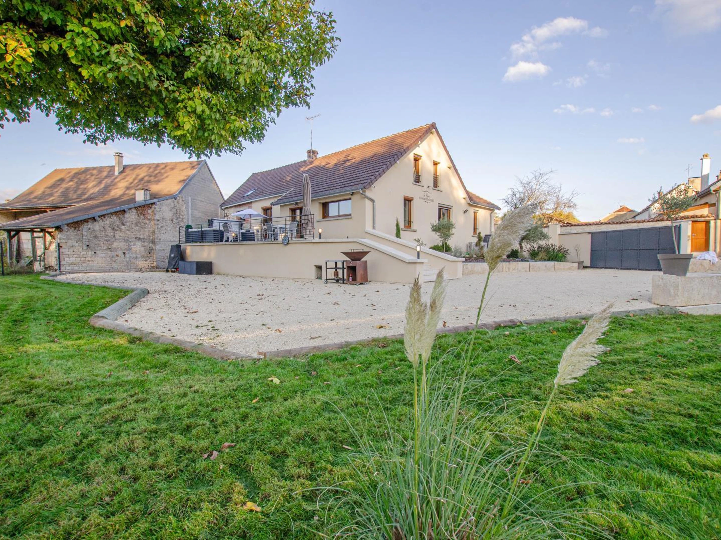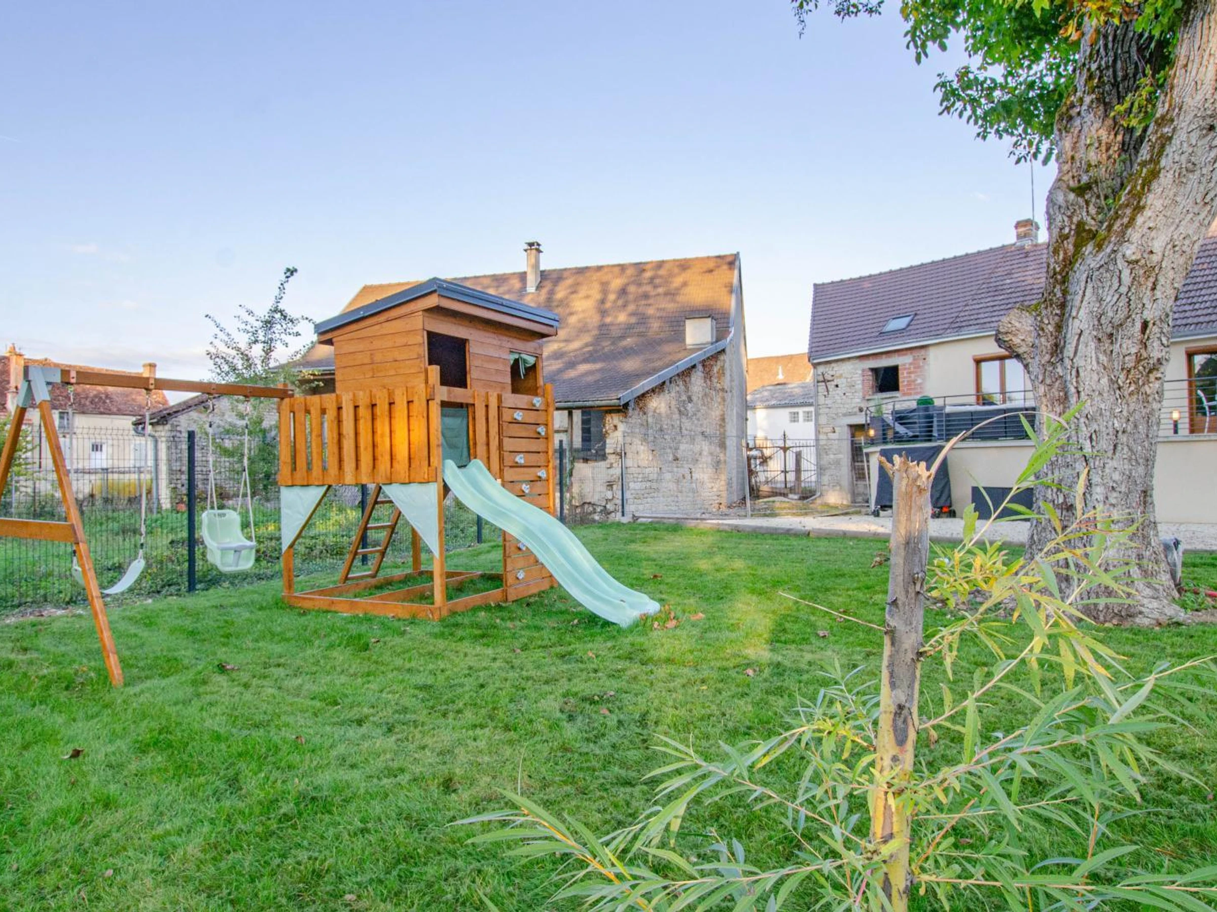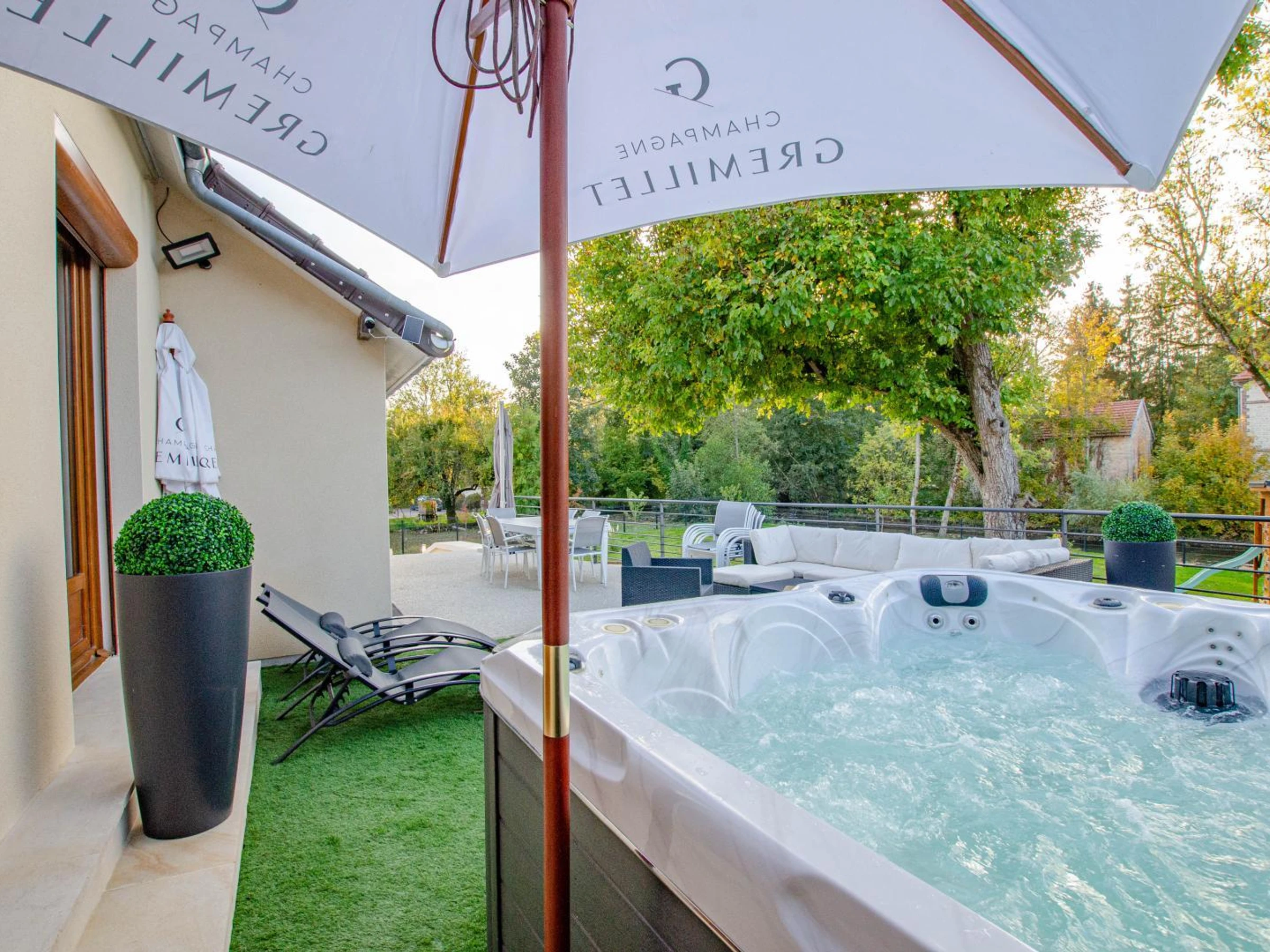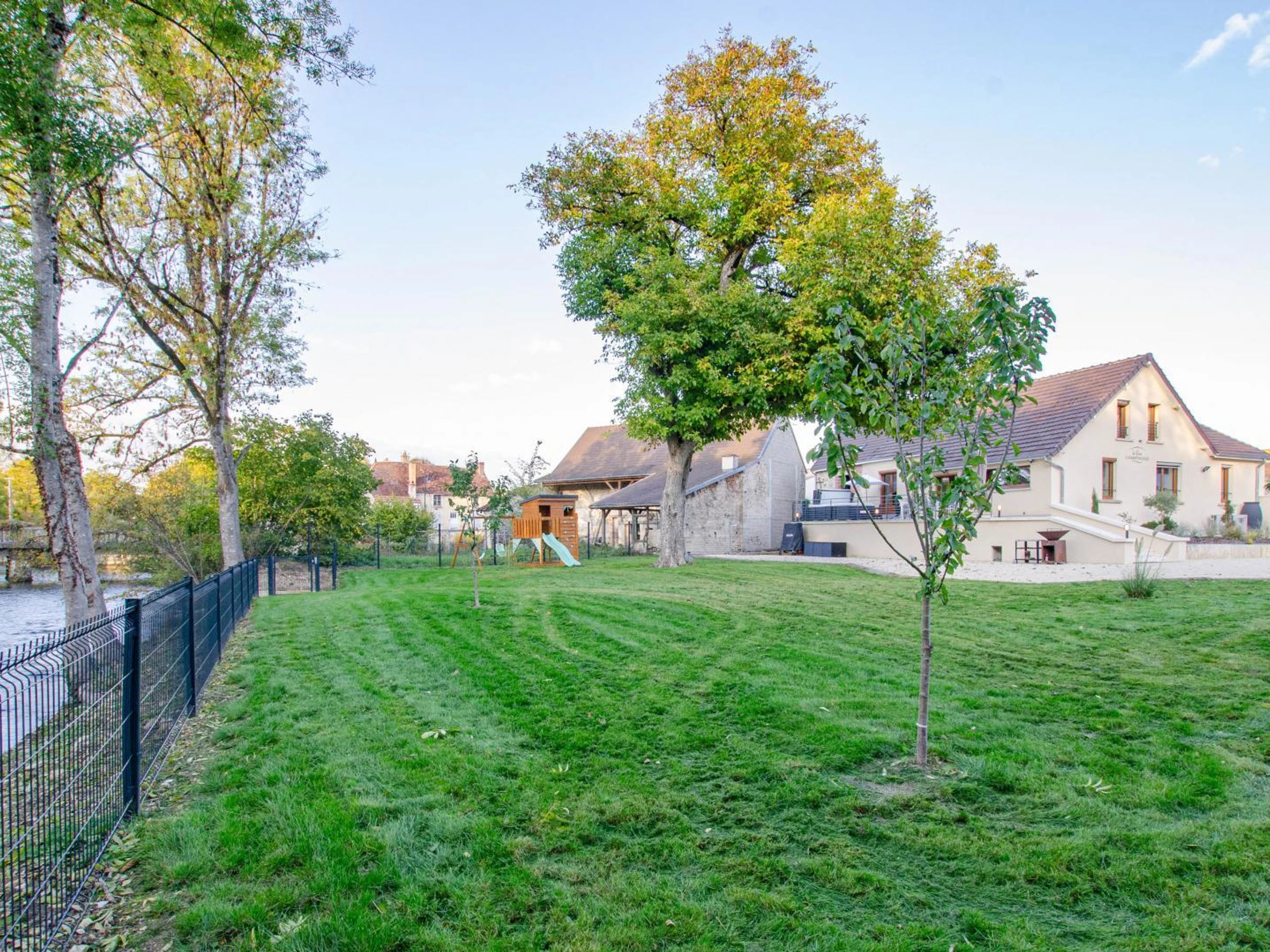 On the raised ground floor, you will have a kitchen, a comfortable and cozy living room, a spacious dining room with wine cellar, 2 double bedrooms (180x200 beds) with private bathrooms, a separate toilet with laundry area. Upstairs, a family room (1 180x200 bed + 2 90x200 beds), a twin room (2 90x200 beds that can be pushed together to form a double bed) and a bathroom (shower, sink, baby bath and changing table) with toilet. Each room has a television with Netflix access, My Canal. Outside, terrace with garden furniture, deckchairs, fire pit, pétanque court (coming soon), enclosed garden with relaxation lounge and access to the river. Parking on the property. EXTERIOR AREAS UNDER DEVELOPMENT. To make your stay easier, the beds will be made on arrival, towels and household linen provided, end-of-stay cleaning, heating and electricity will be included in the price. A 5/6 person spa is at your disposal. In the heart of the Champagne vineyards, at the gateway to Burgundy, 40 minutes from Troyes and the factory outlets, come and discover a stay in this superb cottage with refined decoration. You will be charmed by the riverside environment, the spaces and the facilities. The winegrower owners will offer you a tour of the estate and a Champagne tasting upon reservation (details with the owner).