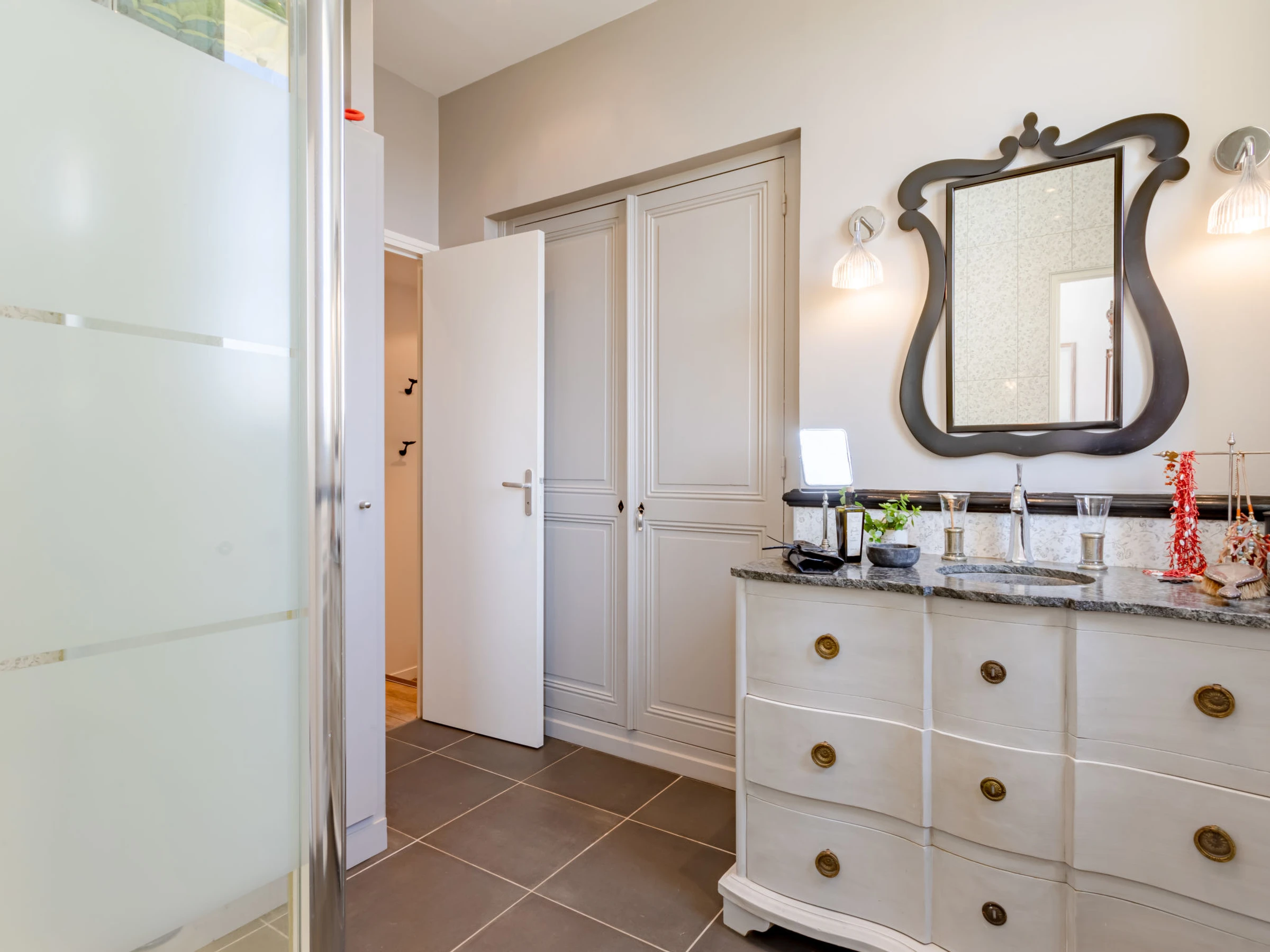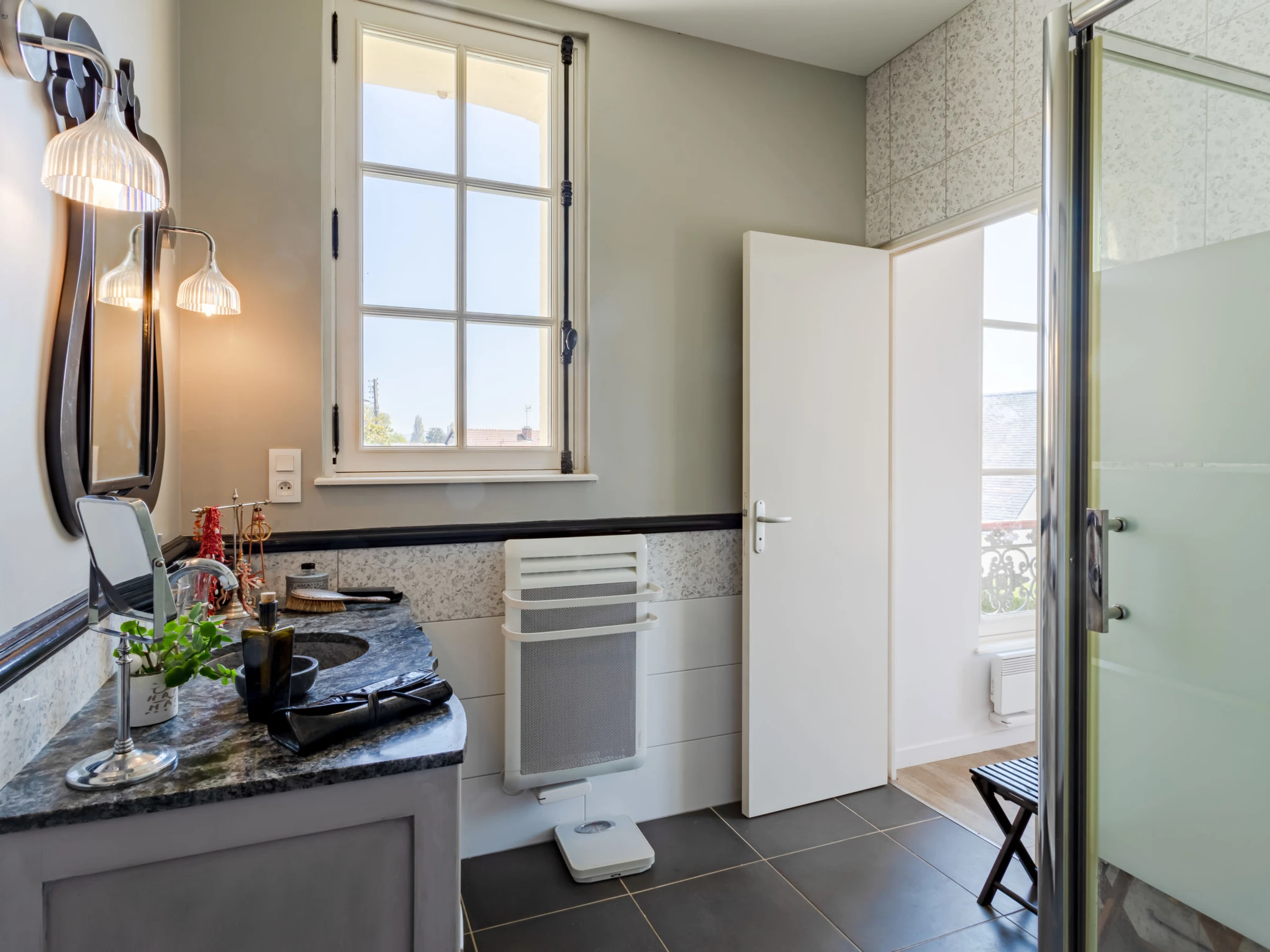 Residence "Les Jardins de Cabourg". In the resort 500 m from the centre of Cabourg, 1 km from the sea, 1 km from the beach. Public parking 150 m. Shop, grocery 500 m, supermarket 1.5 km, restaurant, bar, bakery, café 500 m, bicycle rental 1.6 km, bus stop "Hôtel de Ville" 550 m, sandy beach 1 km, outdoor swimming pool, indoor swimming pool 100 m, thermal baths "Thalazur Cabourg" 1.2 km. Sports harbour 2.2 km, golf course (9 hole) 1.5 km, tennis, indoor tennis centre 500 m, minigolf 1.5 km, riding stable 2.1 km. Nearby attractions: Deauville 19 km, Trouville 20 km, Honfleur 34 km, Caen 25 km, Casino 50 m, centre ludo aquatique 100 m. Please note: Loading and unloading of baggage is possible at the holiday house.