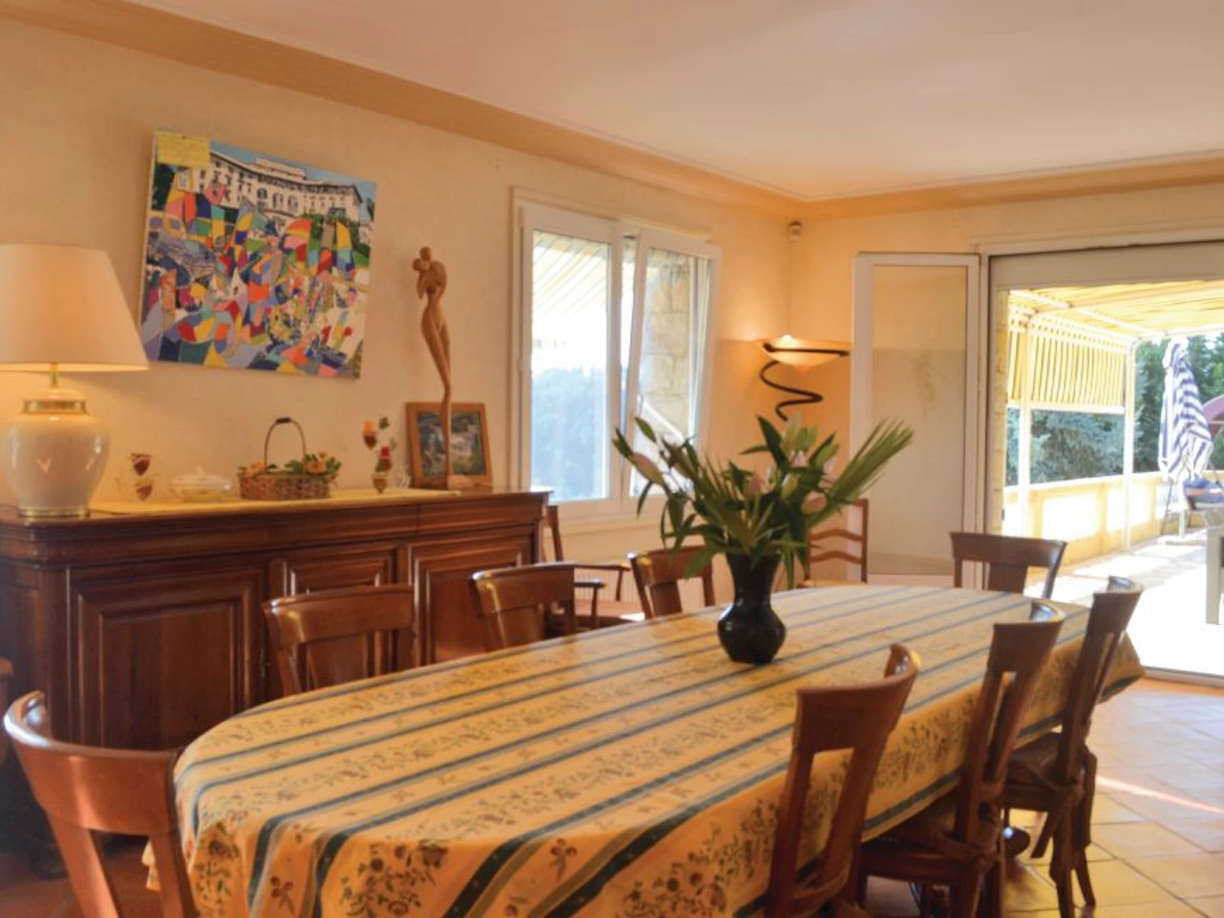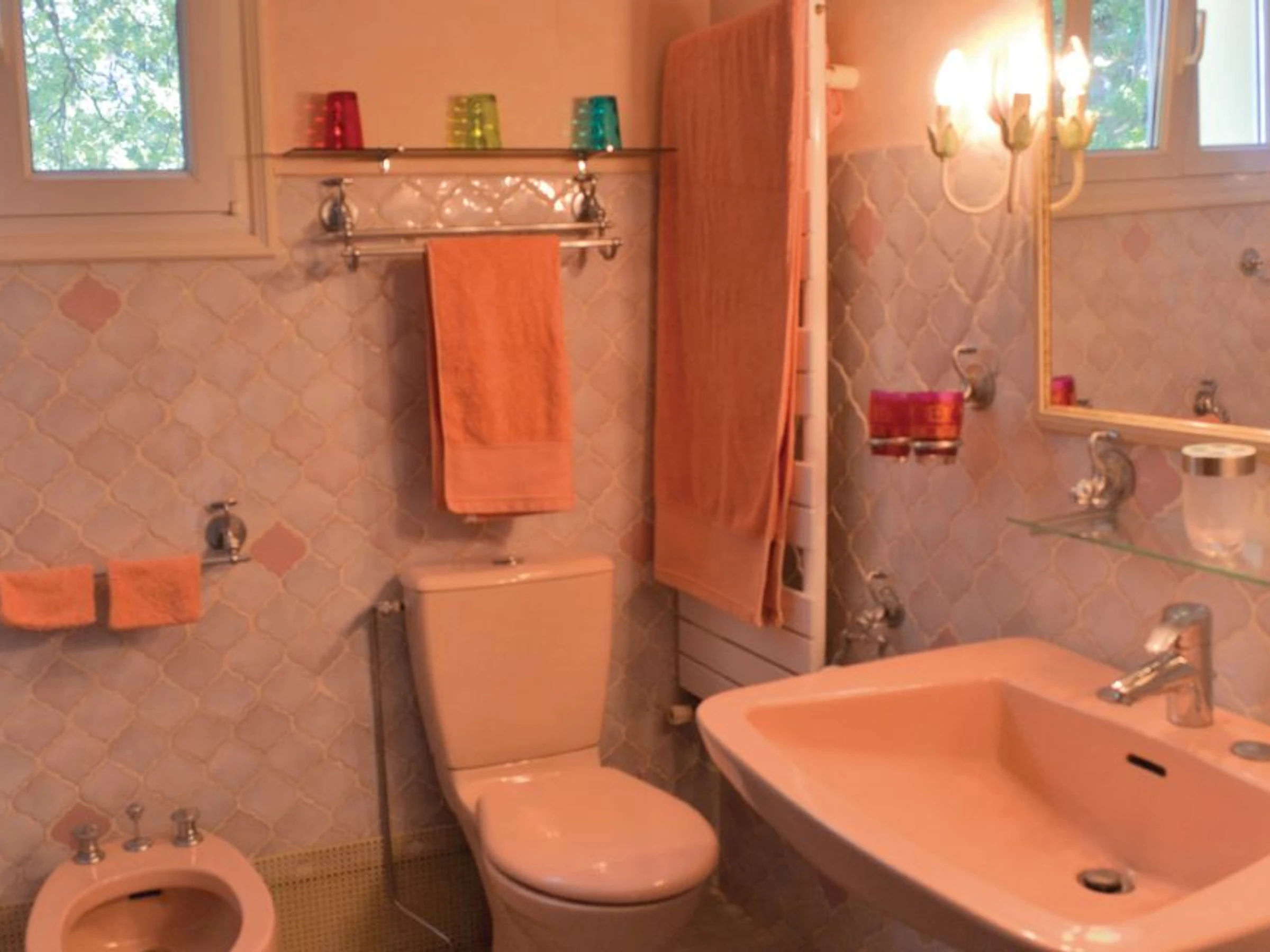 This stone holiday villa is very spacious and is situated at the gateway to Grasse, the world renowned town of fragrances, and Cabris, a small typical overlooking village. It is located on a large wooded terraced land and offers a breathtaking view over Grasse and the sea in the distance, as well as the surrounding forests. A waterfall flows gently beside the pool and the music is installed in the summer kitchen, which is designed for large family meals. A huge game room in the basement will allow you to play pool. For the amateurs, a table tennis and table football are available in the annexes. You will be near the center of the village of Cabris, with its restaurants and small typical streets, and the 18-hole golf course of Claux Anic on the nearby hill. The ancient town of Grasse is 5km away, Mandelieu, Antibes are 20 km, the beaches of the French Riviera, Cannes and the Croisette are only 24km away. Mandatory extra services on site: Final cleaning - 20.0 EUR per person (minimum 200.0 EUR); Available on site with supplement: Bedlinen incl. towel - 15.0 EUR per person;