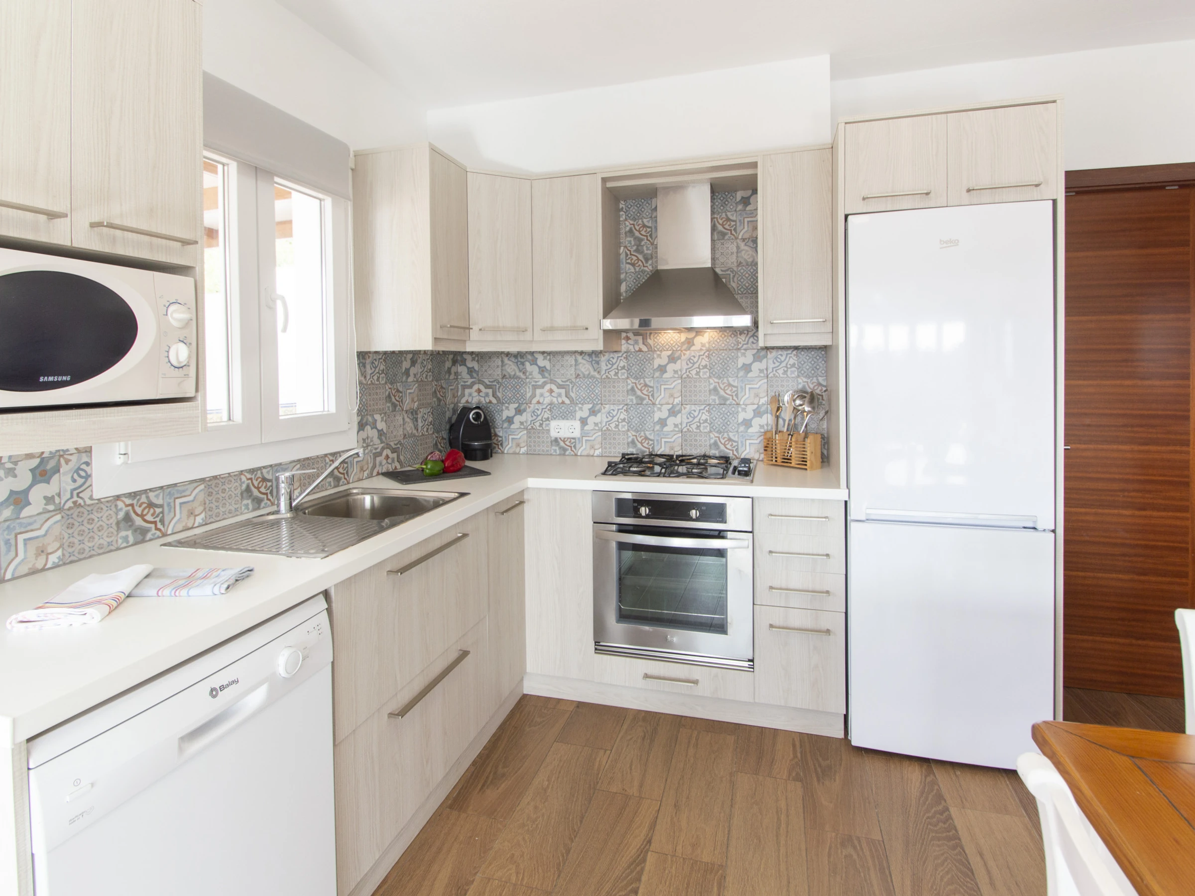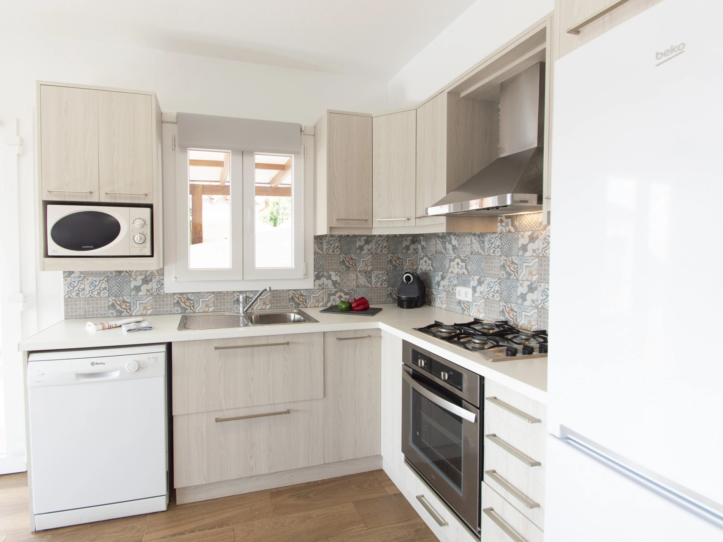 On the ground floor there is the other double room that consists of a double bed and a closet, the other bathroom and the kitchen, which is fully equipped with a fridge, oven, microwave, dishwasher, coffee maker, kettle, toaster and all the necessary kitchenware.