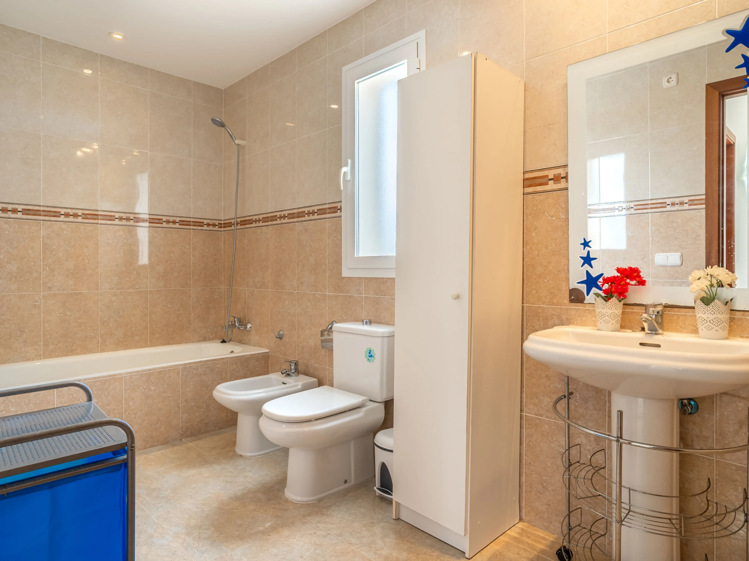 Sa Coma 2 km from Cala Millor: Large, cosy, comfortable single-family house "Sa Coma". 1 km from the centre of Sa Coma, in a central position residential area (villas), 2 km from the edge of the forest, 2 km from the sea, 2 km from the beach, south facing position. Private: property 450 m2 (fenced), well-kept garden with lawn, swimming pool angular (6 x 3 m, seasonal availability: [hidden] - [hidden] Outdoor shower, pool maintenance by the owner/gardener. Parking on the premises. Shop 3 km, grocery 200 m, supermarket 400 m, shopping centre 4 km, restaurant 400 m, bar 500 m, bakery 500 m, café 700 m, 10 minute walk to the centre, railway station "Estacion de Manacor" 18 km, sandy beach "Playa de Sa Coma" 2 km. Sports harbour 6 km, marina 6 km, golf course (18 hole) 9 km, tennis 18 km, riding stable 3 km, walking paths from the house 10 km. Nearby attractions: Rafa Nadal Academy 16 km, Coves del Drach 8 km, Coves dels Hams 8 km, Es Trenc 50 km, Poblat Talaiotic Ses Paises 15 km. The owner does not accept any youth groups. Please note: airfield 66 km from the property. Additional accommodations can be booked. Property ref. ES8215.651.1 is situated on the same property.