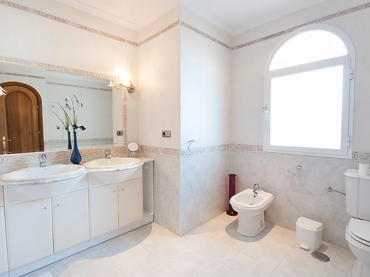 8-room house 300 m2 on 2 levels. Spacious, comfortable and beautiful furnishings: living room with TV. Exit to the terrace. Dining room. 1 room with 1 french bed. 2 rooms, each room with 2 beds (90 cm). Lounge with TV. Kitchen (dishwasher, microwave, freezer, electric coffee machine). Bath/bidet/WC. Upper floor: 1 room with 1 french bed and bath/shower/bidet/WC (private) TV. 1 room with 1 french bed (135 cm). 1 room with 2 beds. Shower/bidet/WC. Terrace. Terrace furniture, barbecue, deck chairs (8). Distant view of the sea. Facilities: washing machine. Internet (WiFi, free). Garage (3 cars). A/MA/01233 Included: Final cleaning, Laundry (initial supply of bed linen and towels) Available on site with supplement: Highchair 1.0EUR per day, Cot (up to 2 years) 5.0EUR per day, Extra bed 50.0EUR per week, Buggy 1.0EUR per day