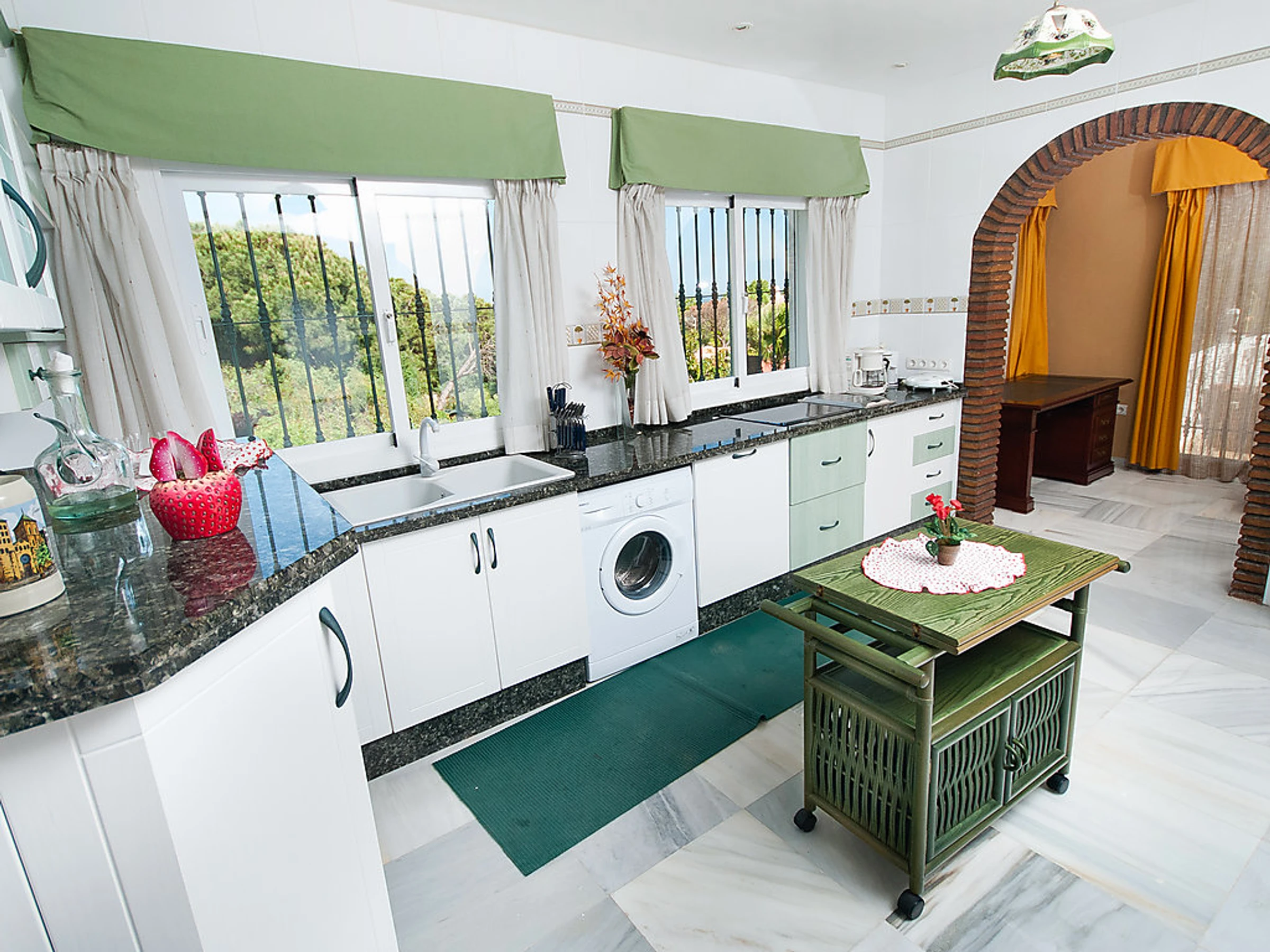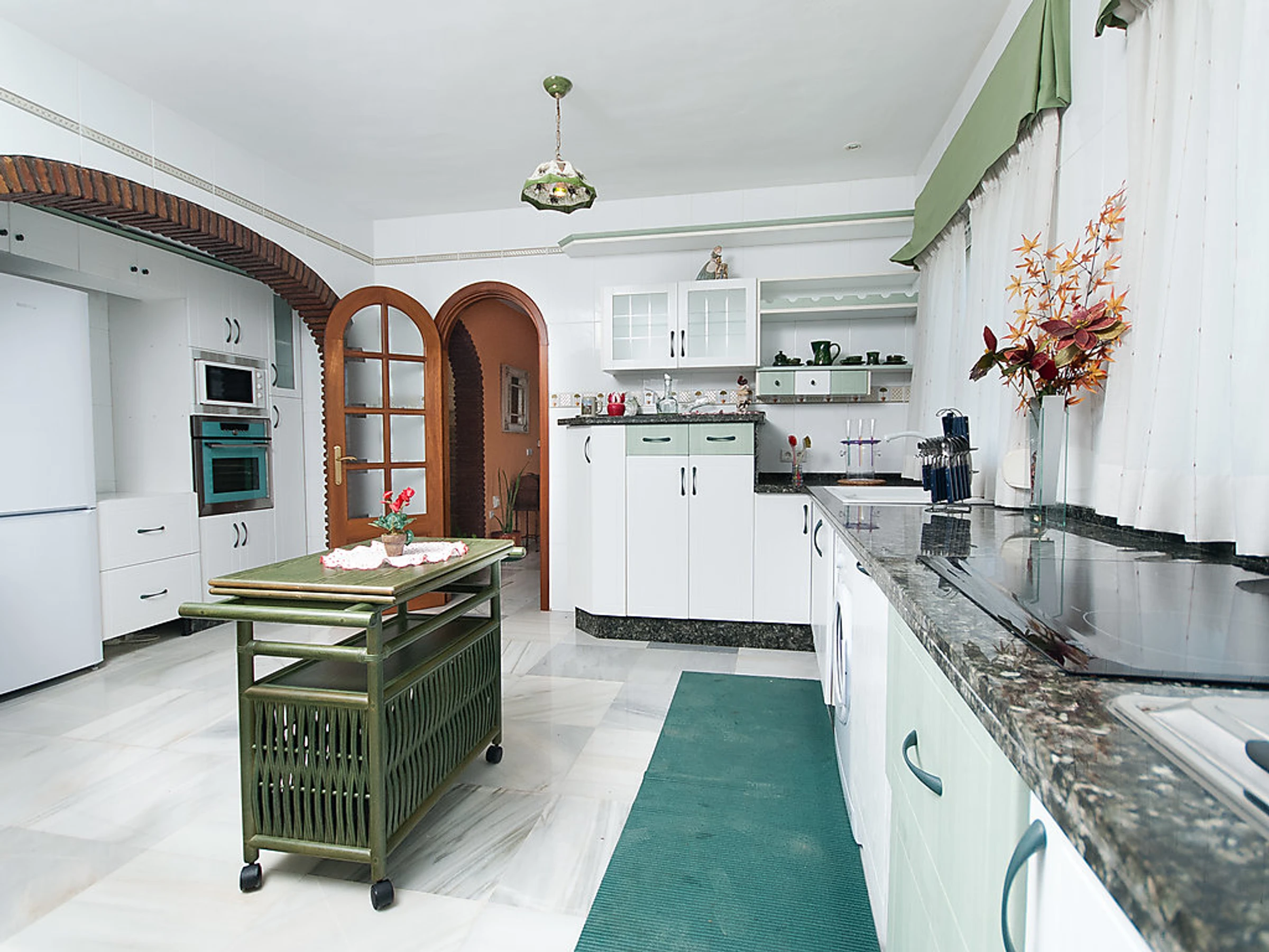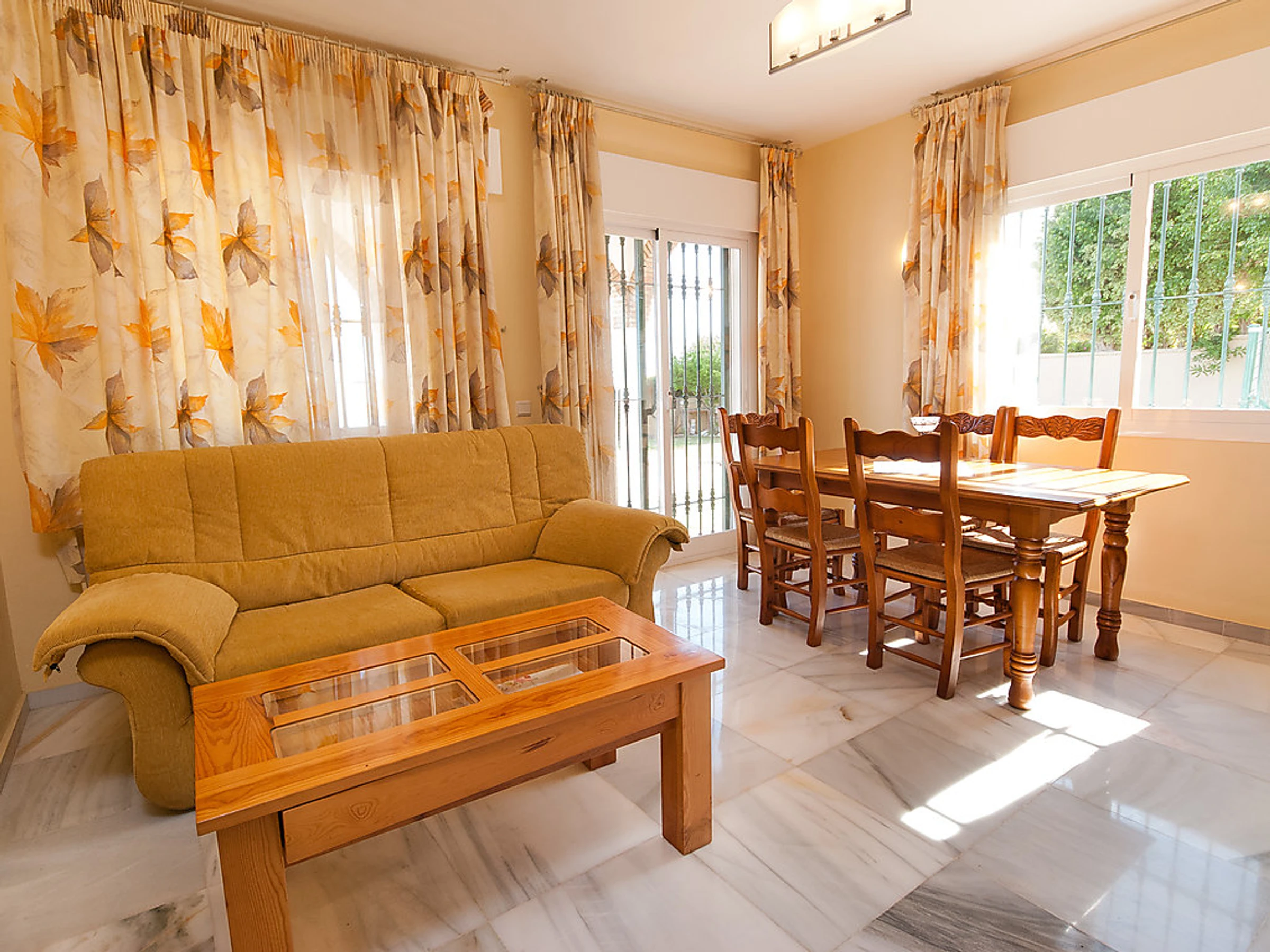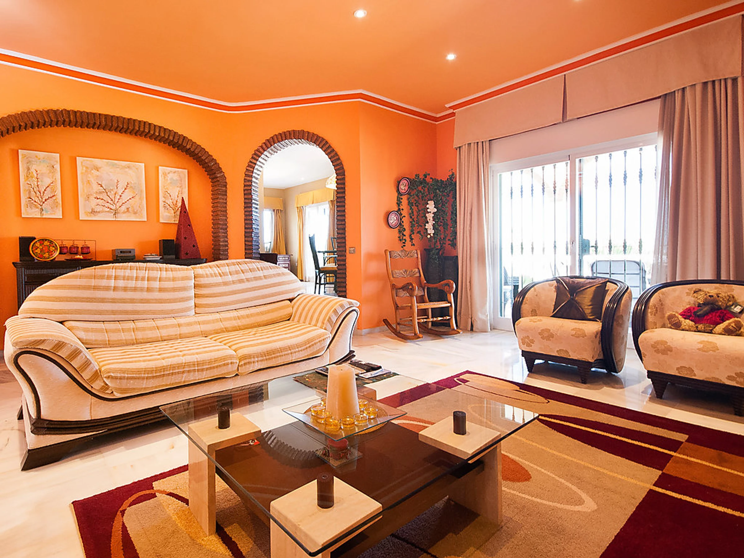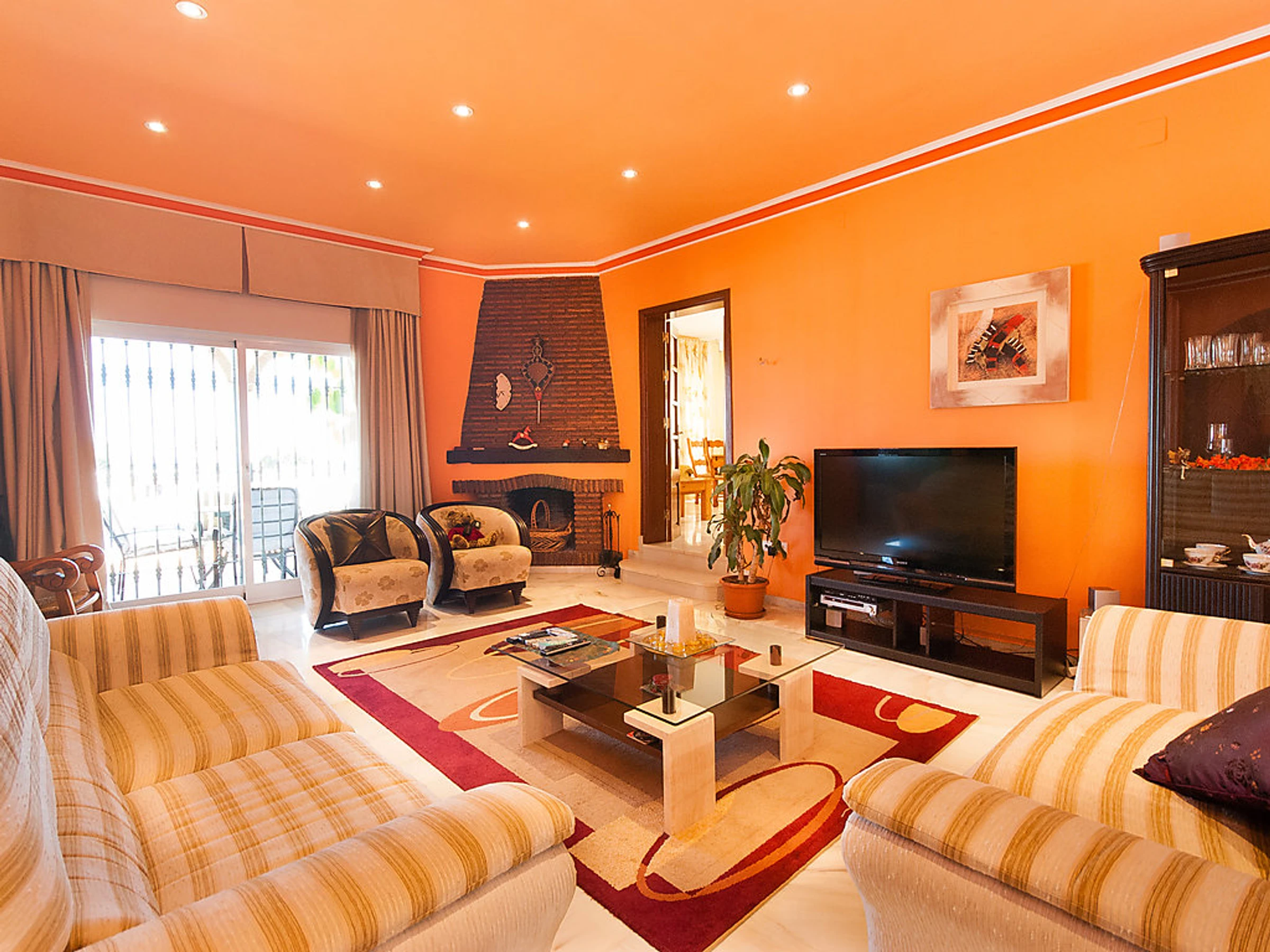 Sitio de Calahonda: Cosy house "La Solea", 2 storeys. In the resort, in a quiet position, 800 m from the sea. Private: property 2'000 m2 (fenced), garden with lawn and trees, orchard, swimming pool [hidden].). Garden furniture, barbecue house. In the house: billiard table. Roofed, parking (for 3 cars). Supermarket 200 m, restaurant, café 500 m, sandy beach 800 m.