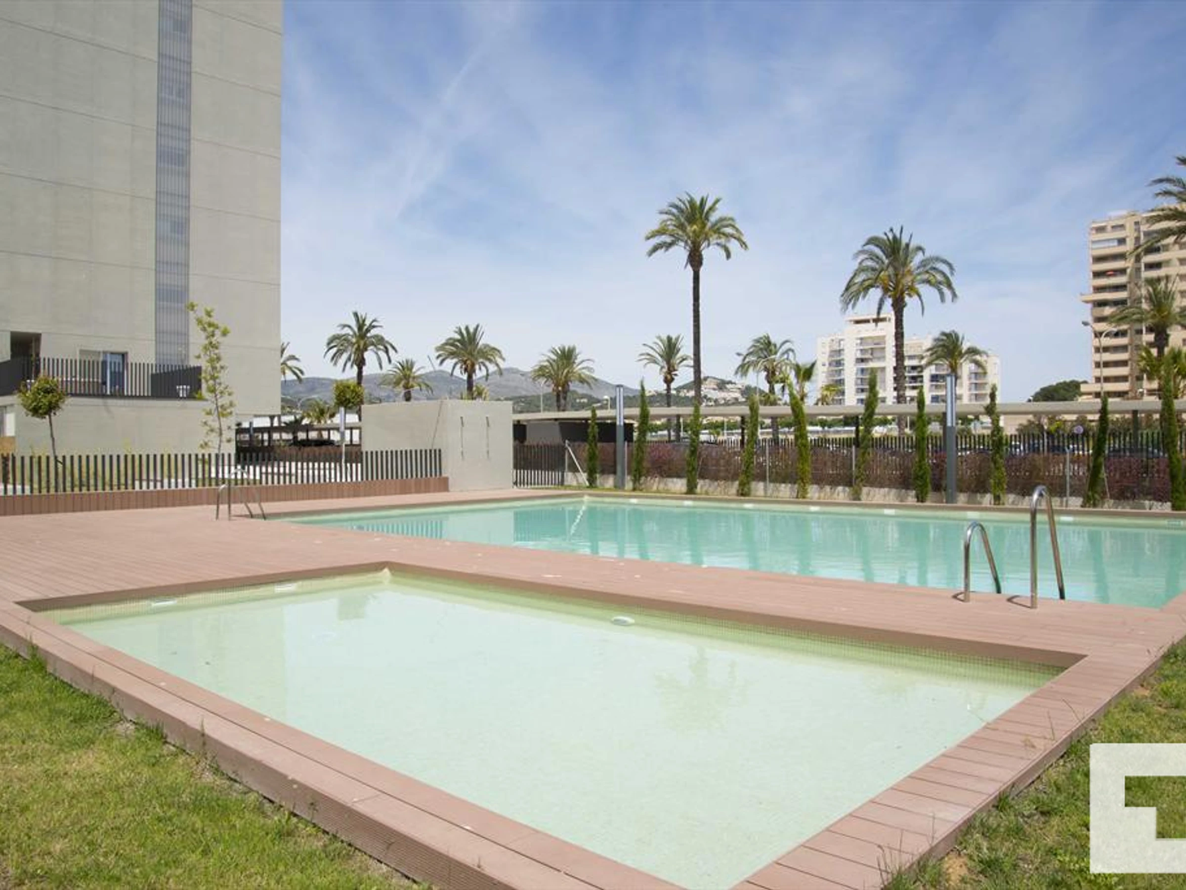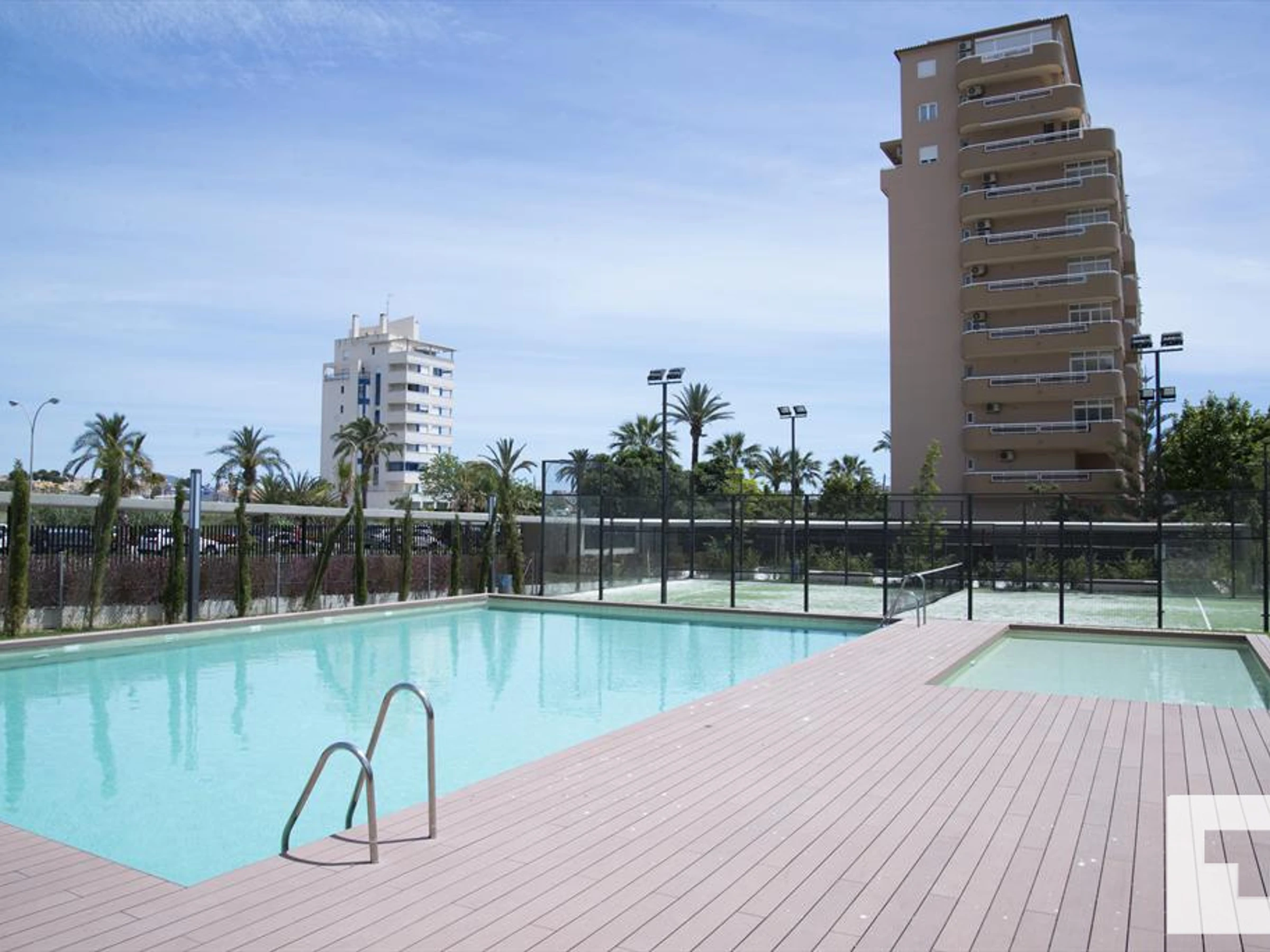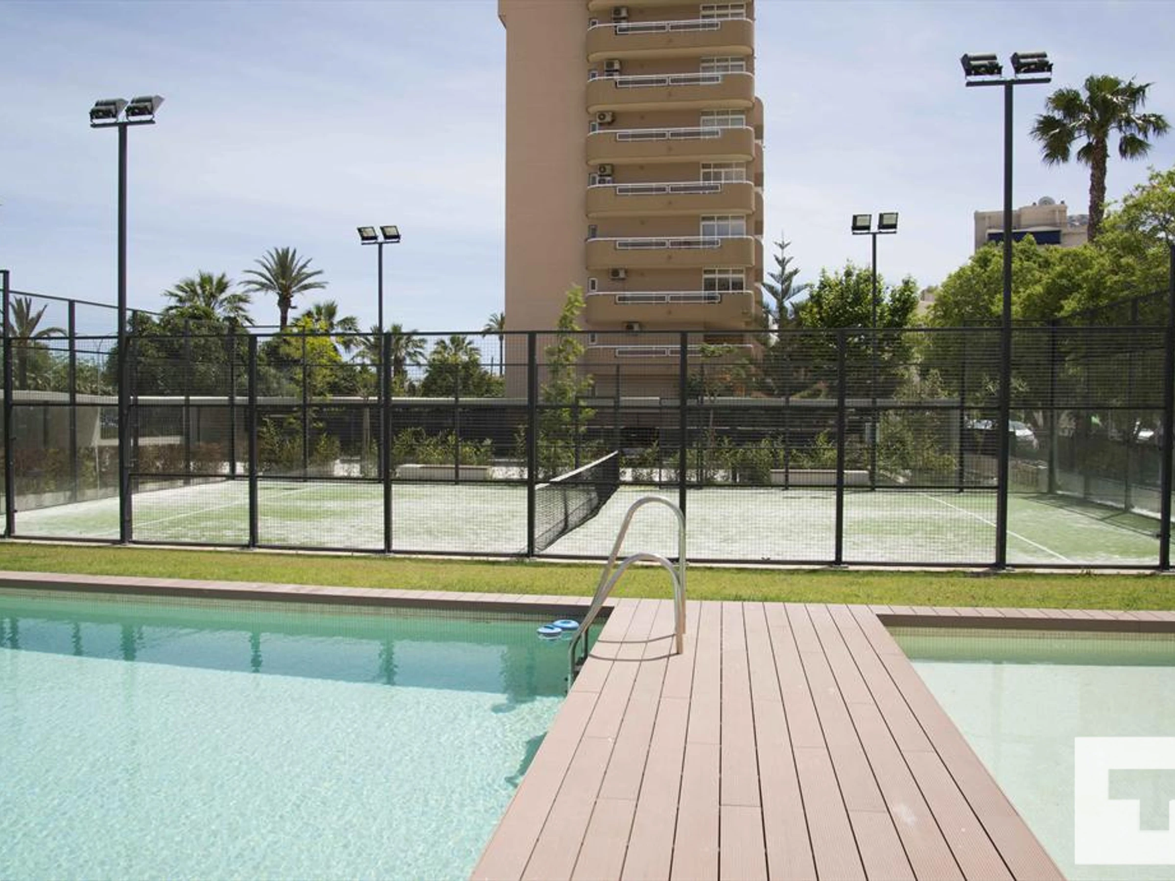 🏊 Communal swimming pool and outdoor shower.