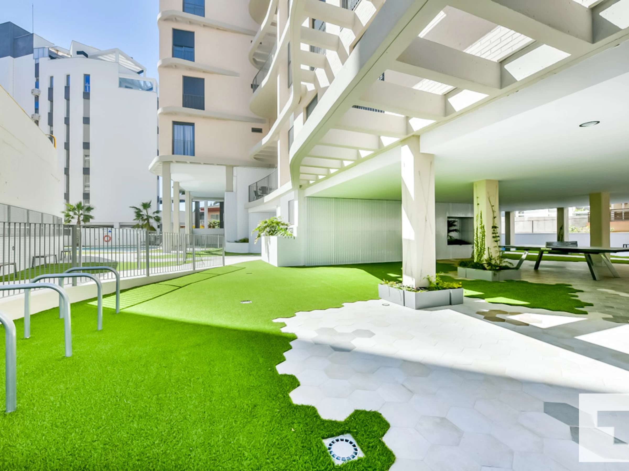 🏊 Communal swimming pool and outdoor shower.