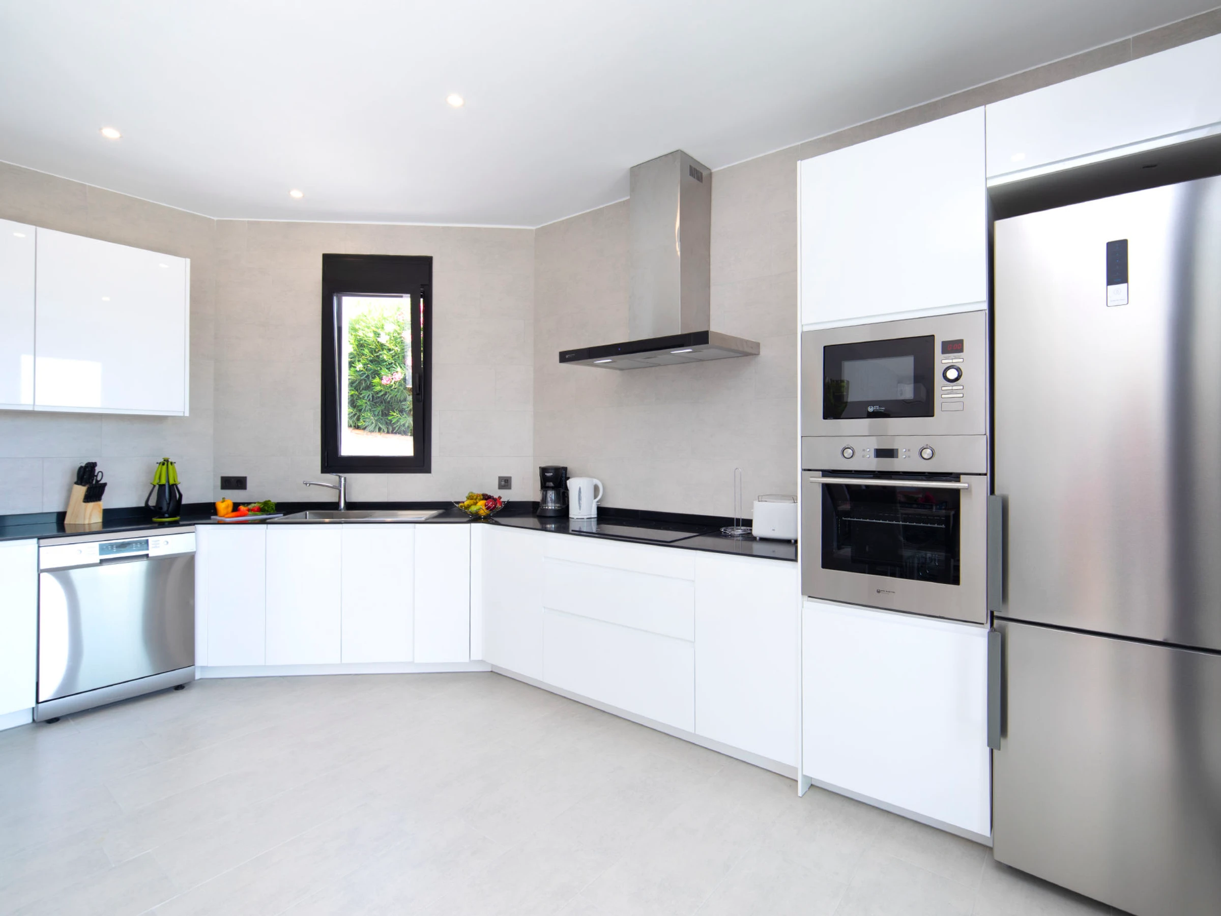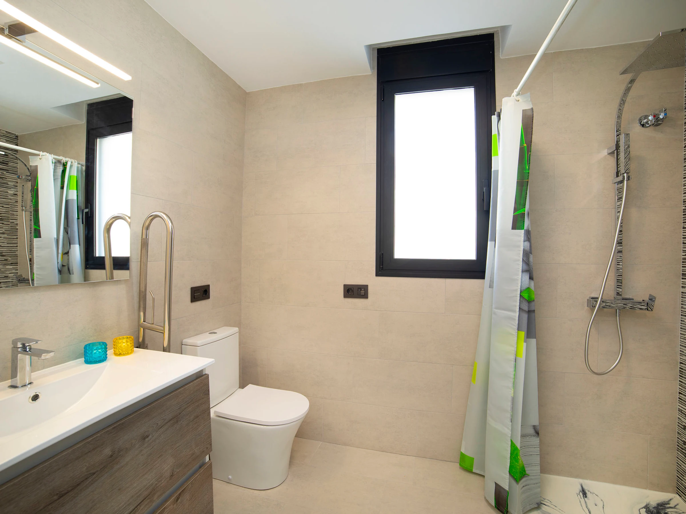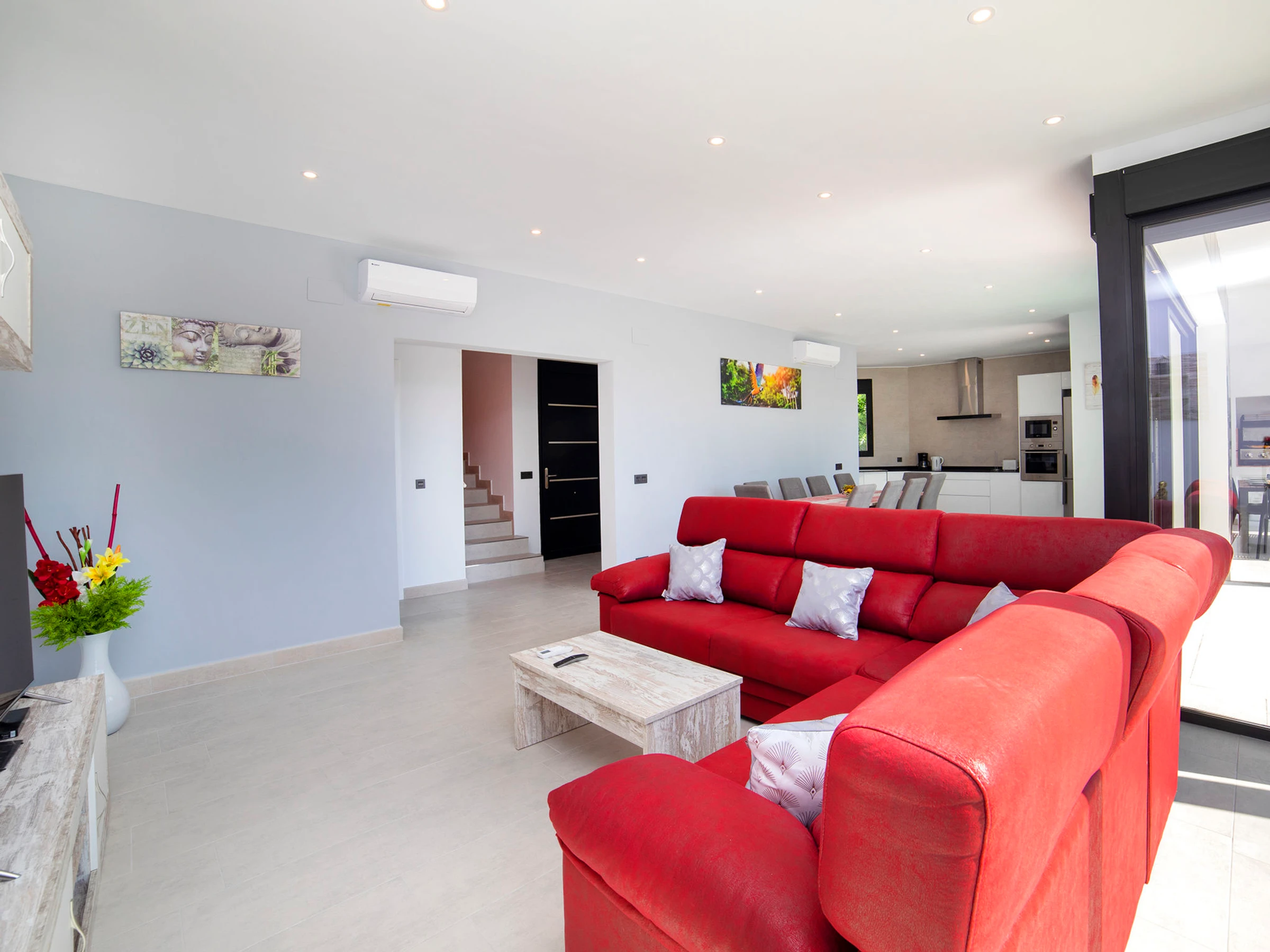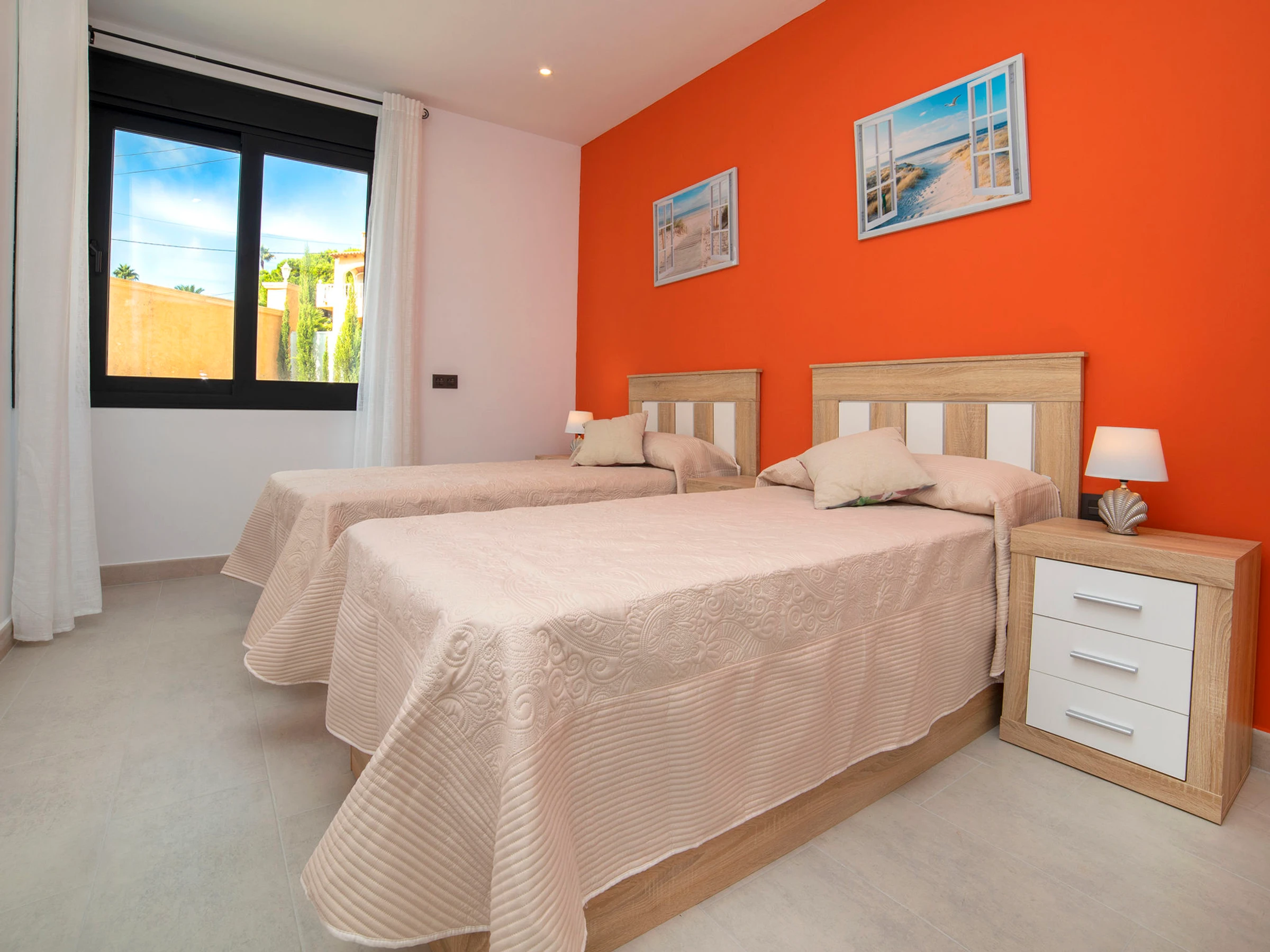Costeres: Modern, beautiful villa "Costeres", 2 storeys, built in 2020. In the resort 3.6 km from the centre of Calpe, in the district Costeres, in a quiet, sunny position residential area (villas), traffic calmed area, 1.8 km from the sea, 1.8 km from the beach. Private: property 800 m2 (fenced), swimming pool (10 x 4 m, depth 110 - 200 cm, seasonal availability: [hidden] - [hidden] Outdoor shower, hot tub. Grocery 1.2 km, supermarket 1.2 km, restaurant, café 900 m, sandy beach "Playa de la Fosa" 1.8 km. Sports harbour 3 km, marina 3 km, golf course 15 km. Nearby attractions: Aqualandia, Mundomar, Terra Mítica, Terra Natura, Benidorm Palace (Benidorm). The owner does not accept any youth groups.