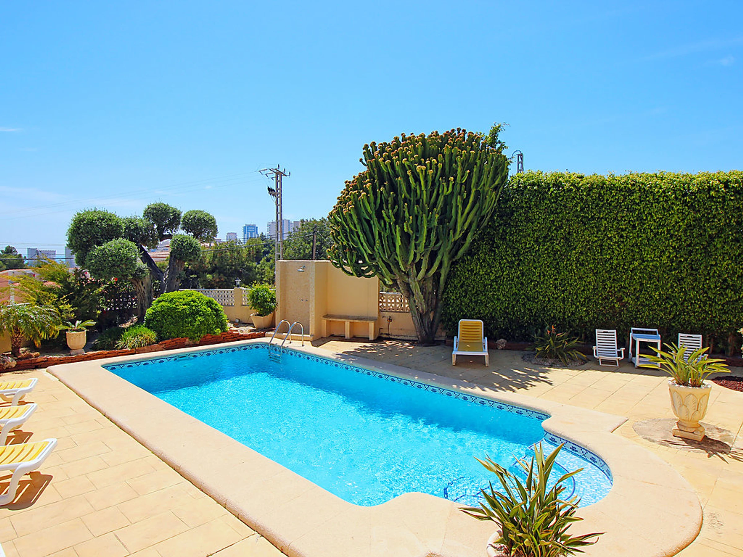 Enchinent 3 km from Calpe: Beautiful, comfortable single-family house "Gloria", 2 storeys, built in 2000. 3 km from the centre of Calpe, in the district Enchinent, in a sunny position residential area (villas), 1.3 km from the sea. Private: property 815 m2 (fenced), well-kept garden, courtyard, swimming pool (8 x 4 m, 01.01.-31.12.). Outdoor shower, table tennis, terrace, garden furniture. In the house: WiFi, table tennis, central heating system, washing machine. Linen change (suppl. charge extra). Towel change (suppl. charge extra). Room cleaning on request (extra). Pre-arrival grocery service. Parking (for 2 cars). Supermarket 500 m, bar 300 m, 15 minute walk to the centre, railway station 3.3 km, sandy beach 1.3 km, diving center 2.6 km. Sports harbour 2.6 km, marina 2.6 km, golf course (18 hole) 12.2 km, sailing school 2.6 km. Nearby attractions: Aqualandia, Mundomar, Terra Mítica, Terra Natura, Benidorm Palace en Benidorm. Please note: suitable for families, suitable for seniors baby equipment on request (extra). On request: airport transfer to the holiday accommodation.