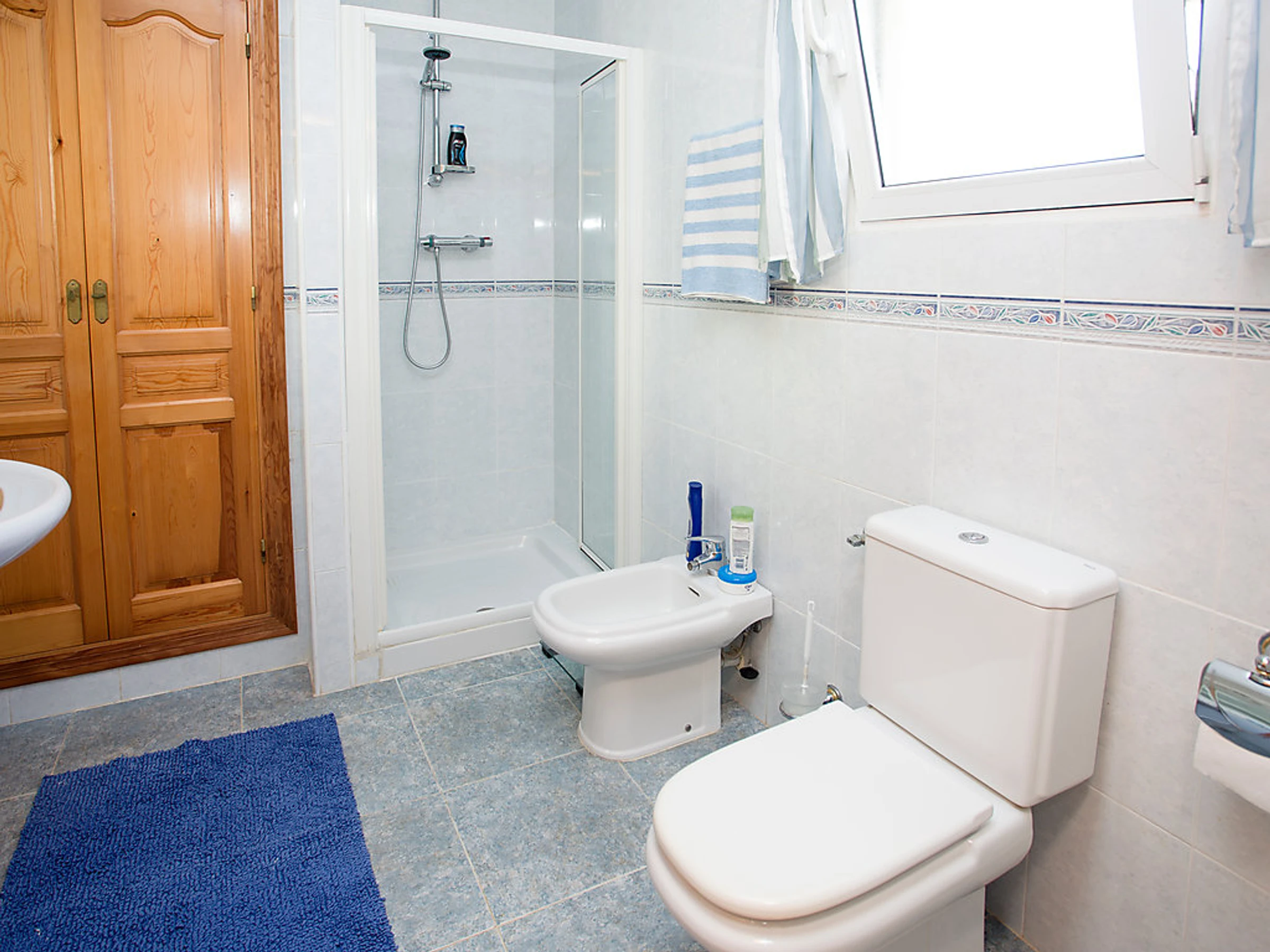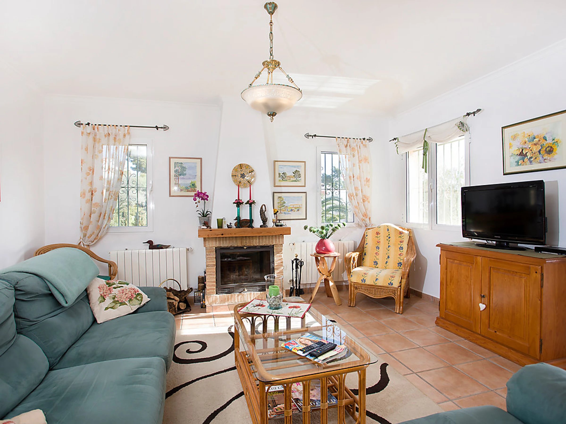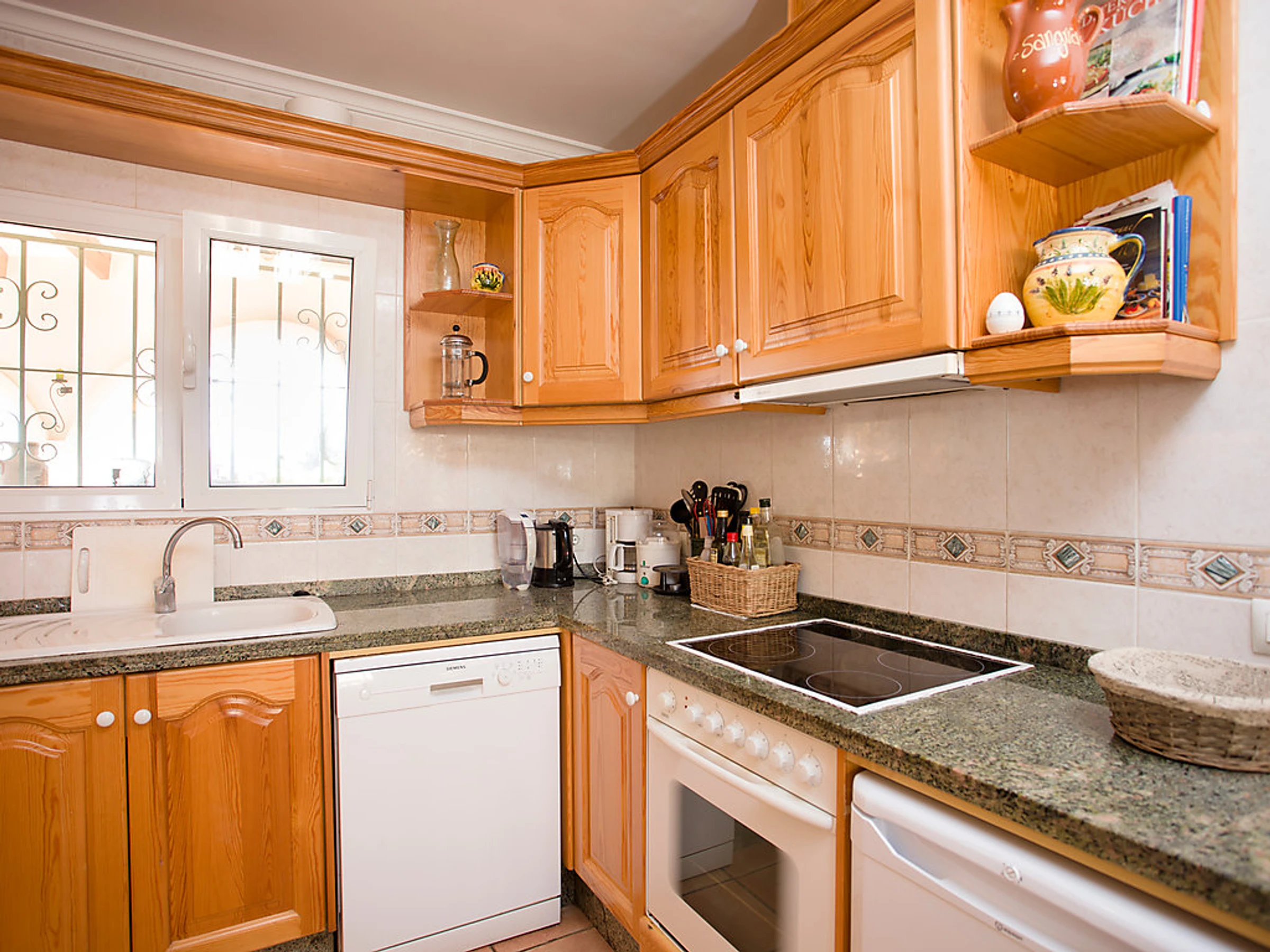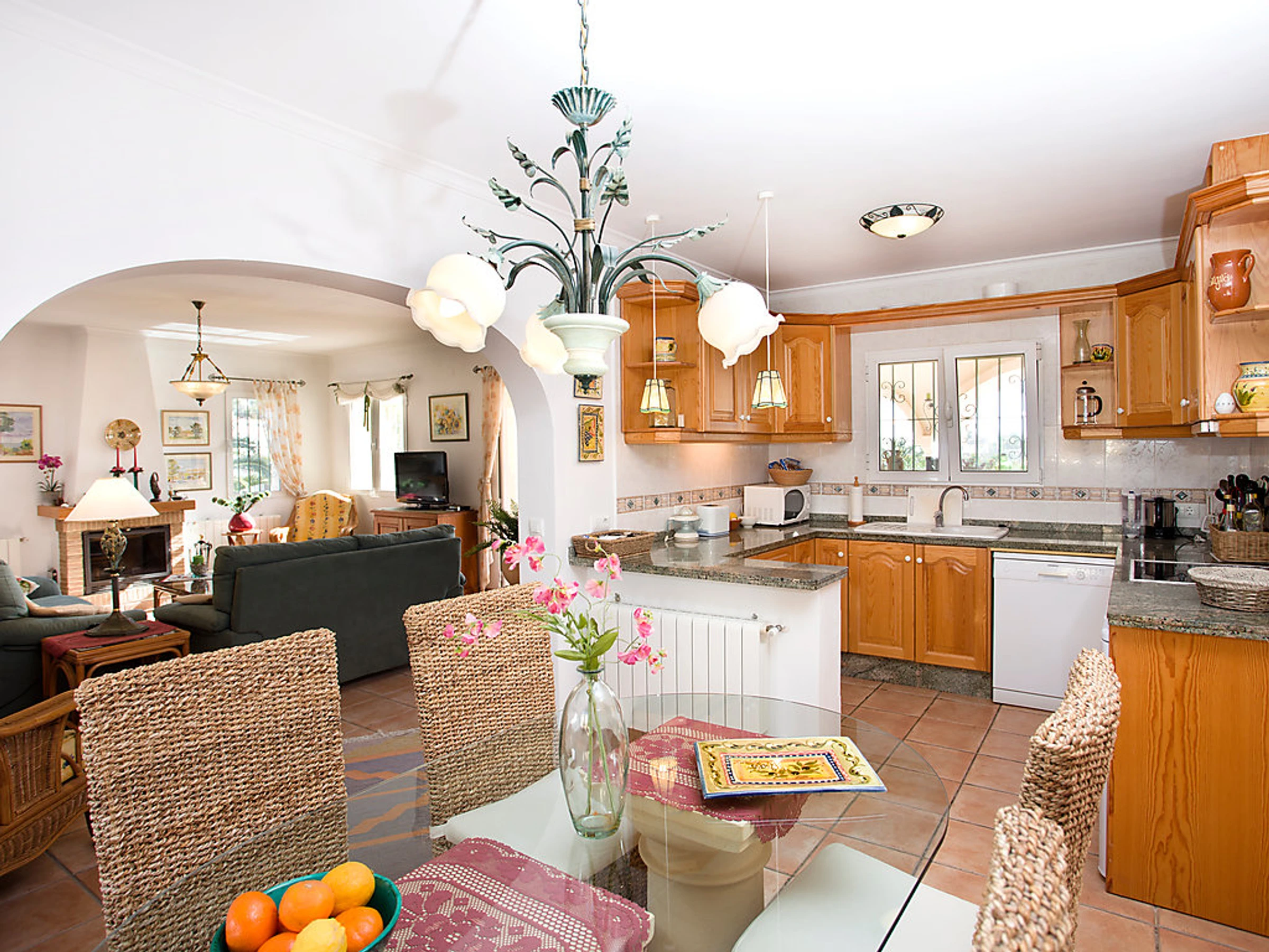 "Rosita", 3-room house 120 m2. Bright, beautiful and tasteful furnishings: living/dining room 40 m2 with open-hearth fireplace, satellite TV, digital TV, international TV channels and flat screen. Exit to the terrace. 1 double bedroom. Exit to the terrace. 1 room with 2 beds. Exit to the balcony. Open kitchen (oven, dishwasher, microwave). Shower/bidet/WC. Deck chairs, sitting area. View of the sea. Facilities: washing machine, iron. Internet (WiFi, free). Maximum 1 pet/ dog allowed. AT-428567-A Included: Pet, Final cleaning, Wireless internet access (WIFI), ERV assurance annulation gratuite, Power costs, Laundry (initial supply of bed linen and towels) Available on site with supplement: Extra bed 8.5EUR per day, Cot 4.25EUR per day, Pushchair (Buggy) 3.0EUR per day, Highchair 3.0EUR per day