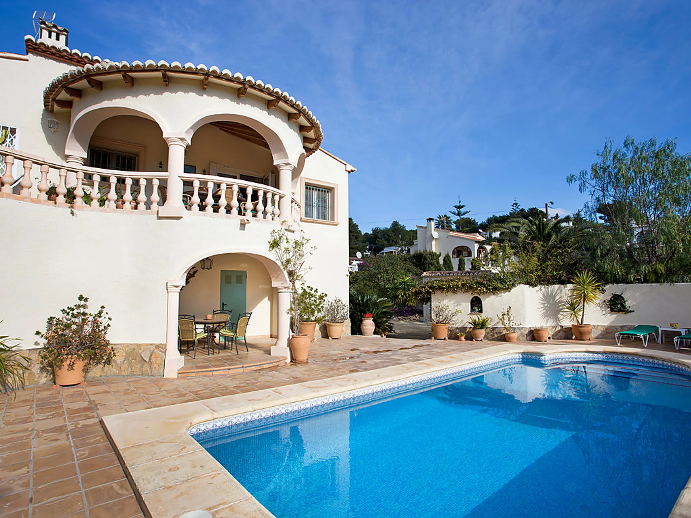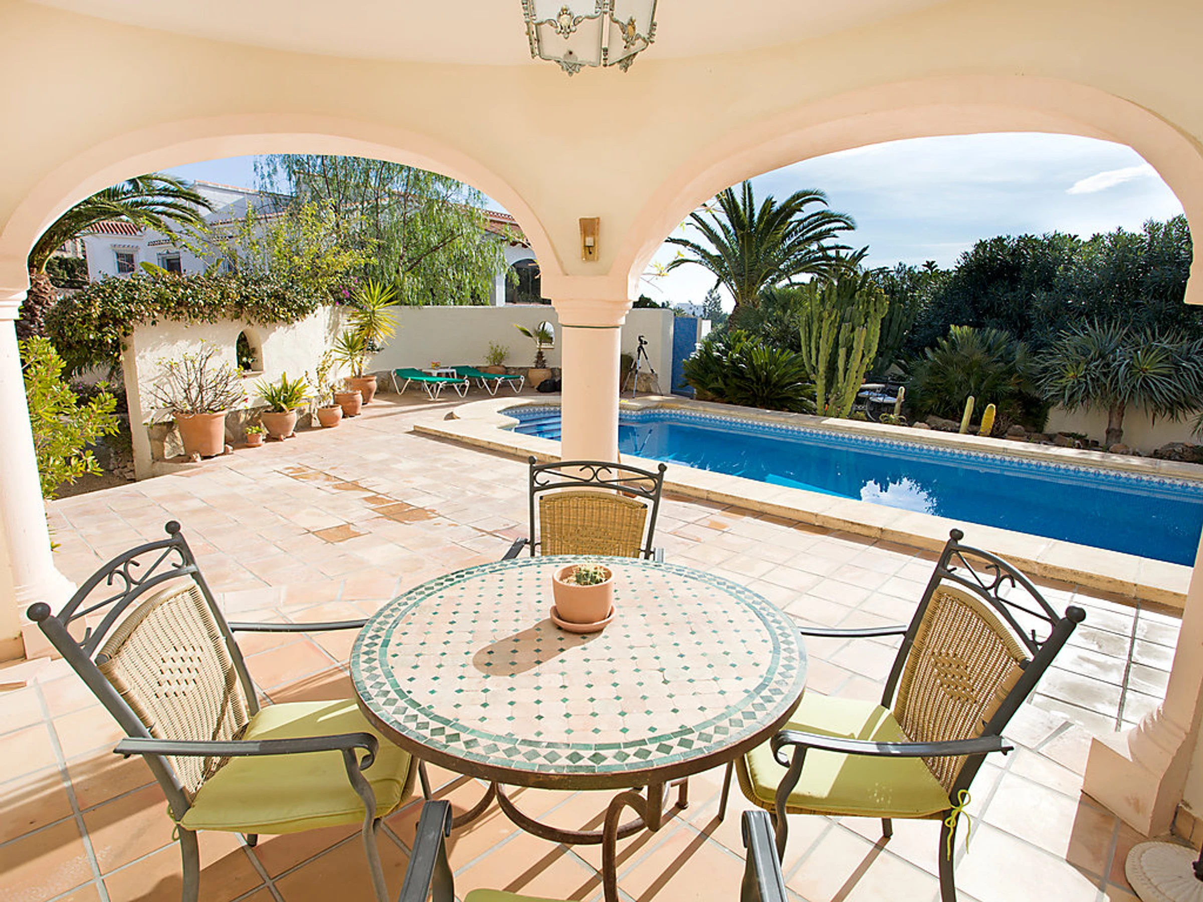 La Fustera: Beautiful single-family house "Rosita". 5 km from the centre of Calpe, in a quiet, sunny position residential area (villas), 900 m from the sea, in a cul-de-sac. Private: property 800 m2, garden, swimming pool (8 x 4 m,[hidden].) with internal staircase. Outdoor shower, terrace, garden furniture, parking. Supermarket, restaurant, bar 600 m, sandy beach "Cala Fustera" 900 m. Sports harbour 1.6 km, marina 1.6 km, surf school 1.6 km, sailing school 1.6 km. Nearby attractions: Aqualandia, Mundomar, Terra Mítica, Terra Natura, y Bendorm Palace (Benidorm). Please note: suitable for families. Part of the house is closed and unoccupied.