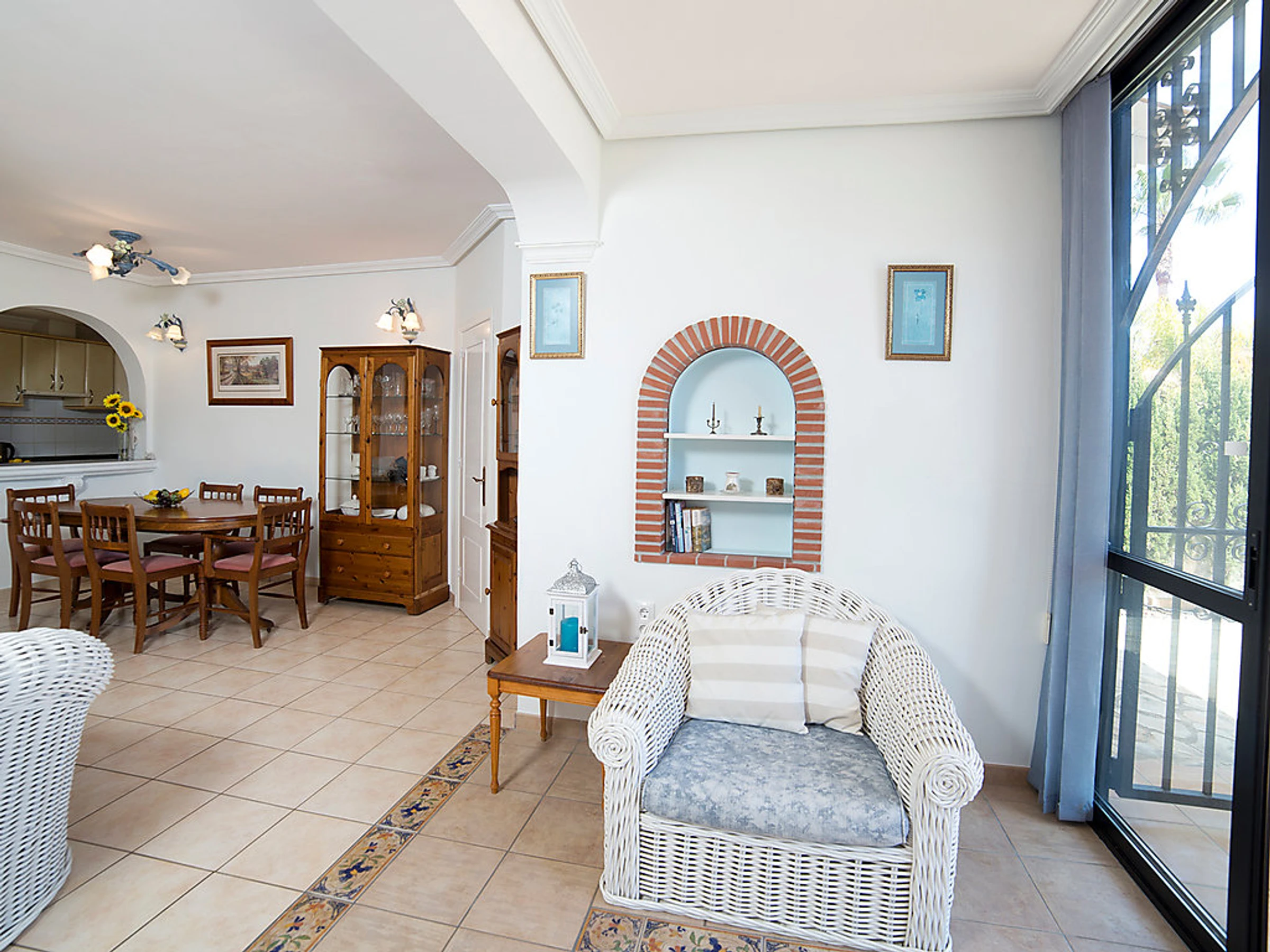 Garduix: Pretty complex of semidetached houses, "Vital Park" modern, cosy terraced house "Vital Park", 2 storeys, semi-detached, surrounded by trees. 900 m from the centre of Calpe, 1.4 km from the sea. For shared use: property (fenced), swimming pool (18 x 12 m, 01.01.-31.12.) with internal staircase. Children's pool, outdoor shower, patio. In the house: central heating system. Airport transfer (extra). Supermarket 800 m, restaurant, bar 600 m, sandy beach 1.4 km. Tennis 600 m. Nearby attractions: Castell de Guadalest, Fuentes del Algar. Hiking paths: Peñon de Ifach. Please note: suitable for families, baby equipment on request (extra). On request: airport transfer to the holiday accommodation. Property ref. ES9730.431.6 is situated on the same property. All houses/apartments are individually designed/furnished. The childrens area of the swimming pool has a depth of 30-90 cm. Only for families and not groups of young people.