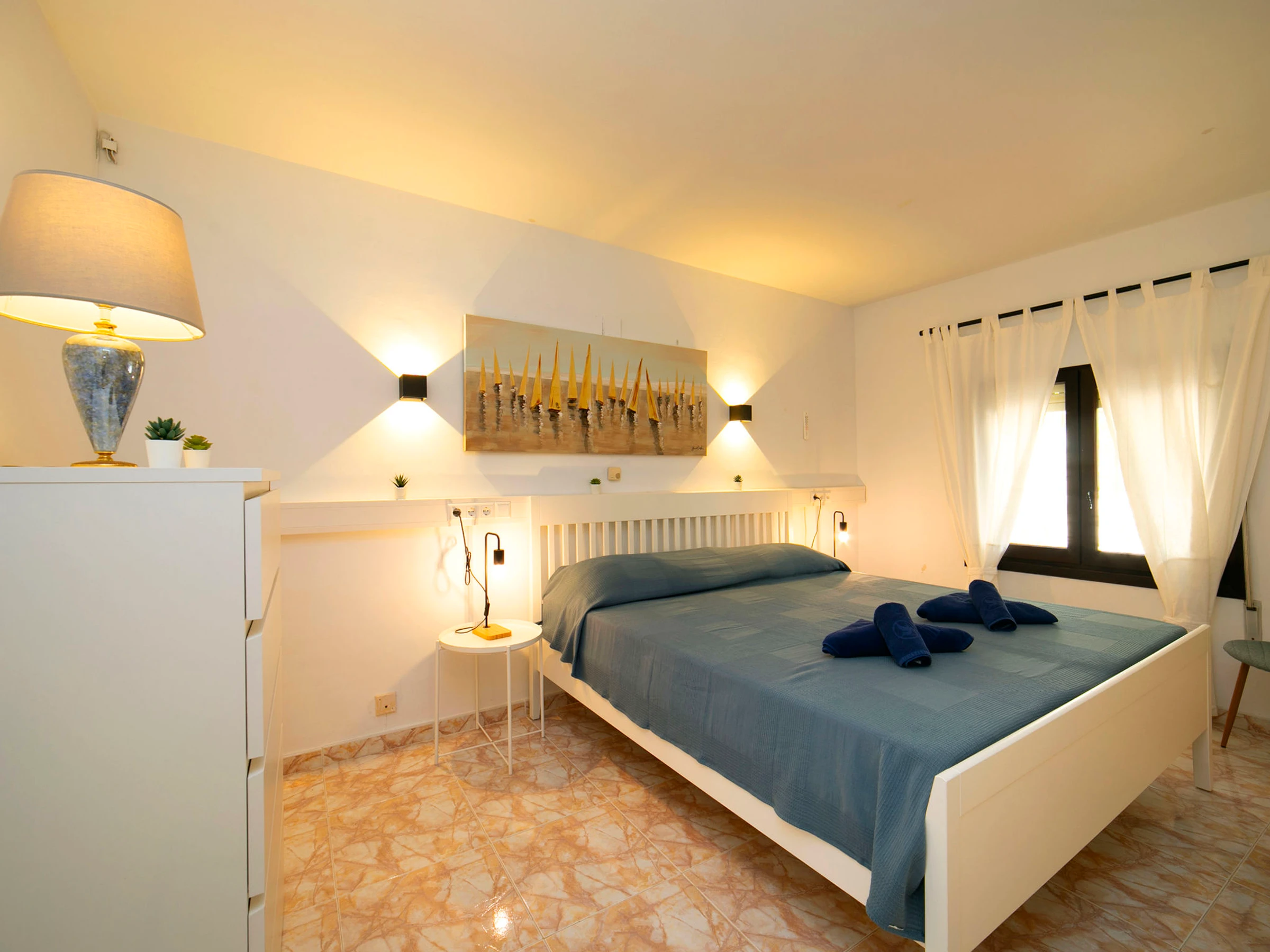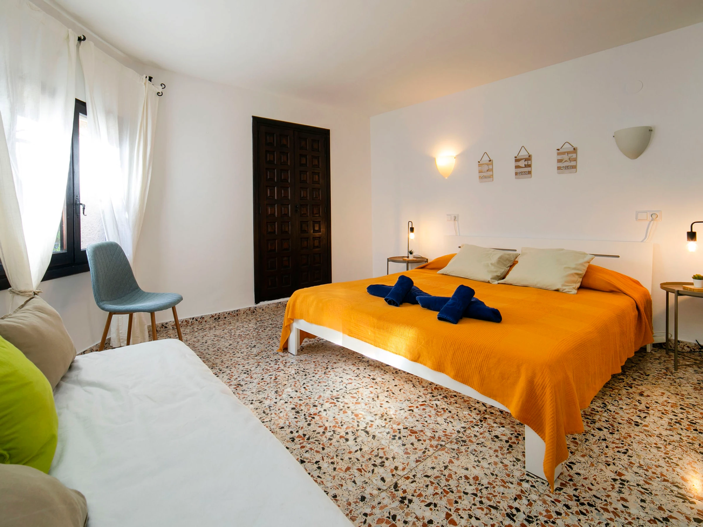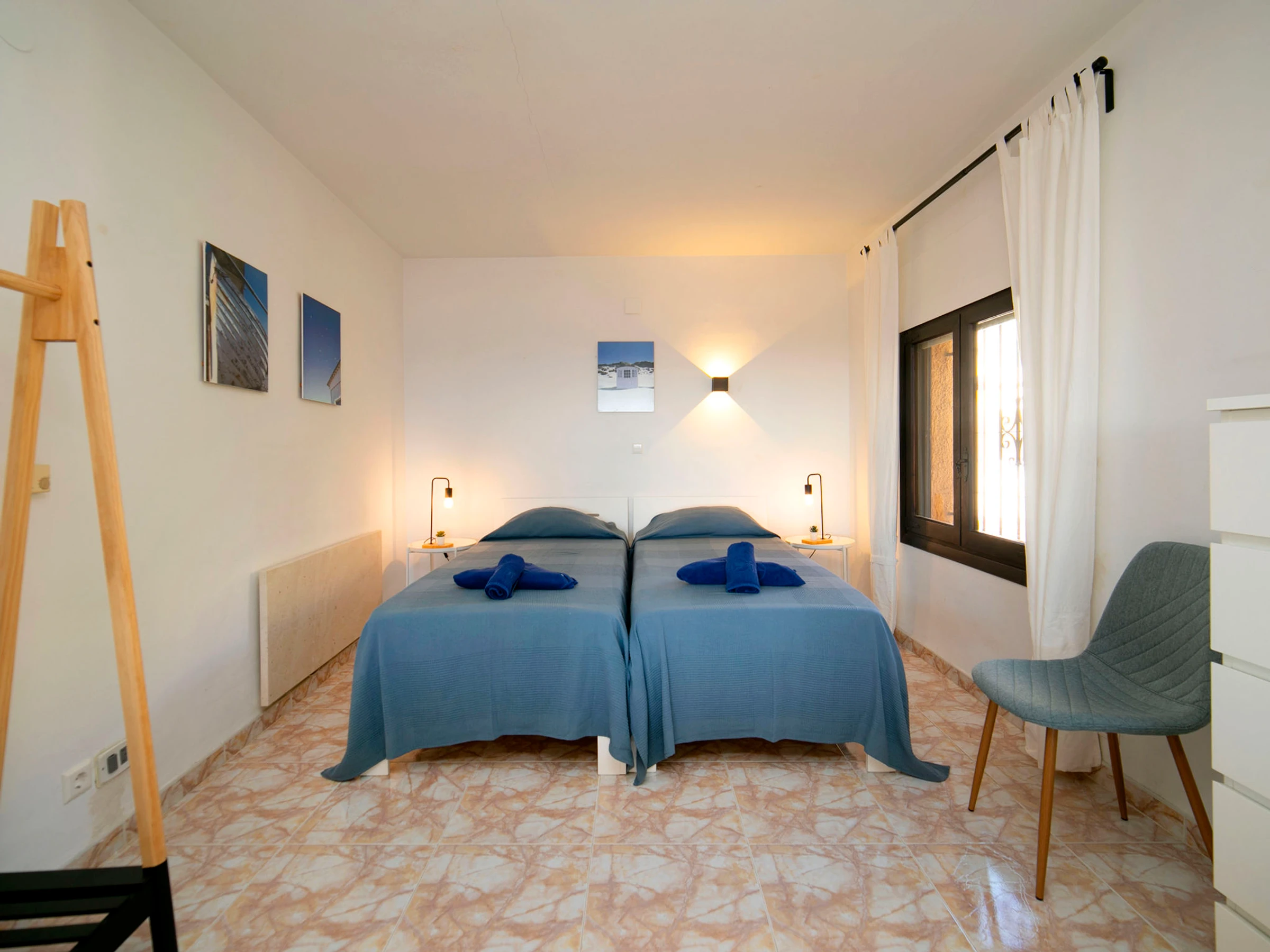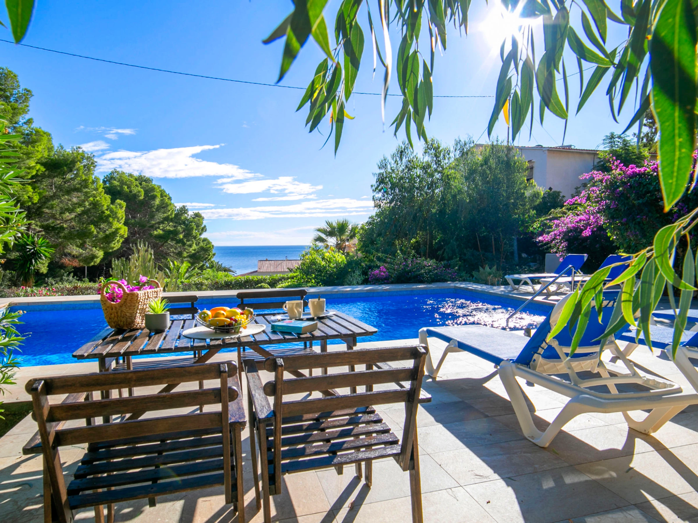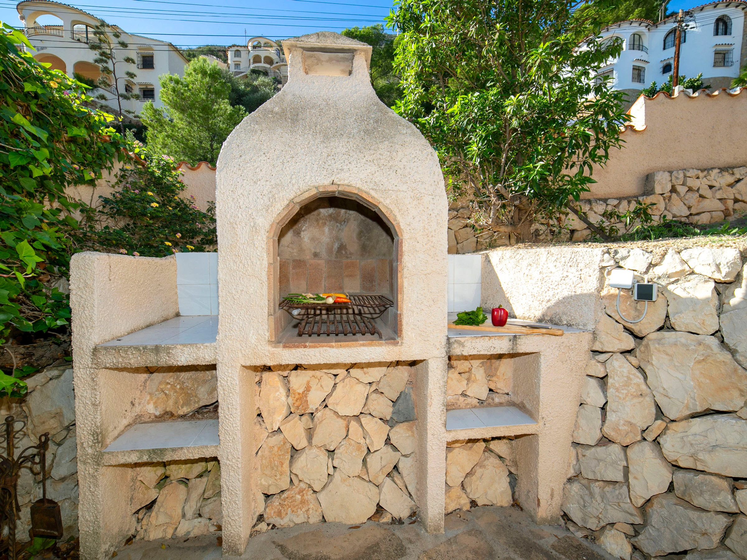 Beautiful villa "Buena Vista", 2 storeys. 3 km from the centre of Calpe, in the district Maryvilla, in a quiet, sunny position residential area (villas), traffic calmed area, 120 m from the sea, 1 km from the beach. Private: property 1'466 m2 (fenced), garden, swimming pool (10 x 5 m, seasonal availability: [hidden] - [hidden] with internal staircase. Terrace, garden furniture, barbecue. Stepped path (37 steps) to the house. Shop 3 km, grocery 2 km, supermarket 2 km, shopping centre 3 km, restaurant, café 550 m, bus stop 2 km, sandy beach "Playa Puerto Blanco" 1 km, swimming bay 120 m. Sports harbour 1 km, marina 1 km, golf course (12 hole) 12 km. Nearby attractions: Aqualandia, Mundomar, Terra Mítica, Terra Natura, Benidorm Palace (Benidorm), Les Fonts de l'Algar, Castillo de Guadalest. The owner does not accept any youth groups.