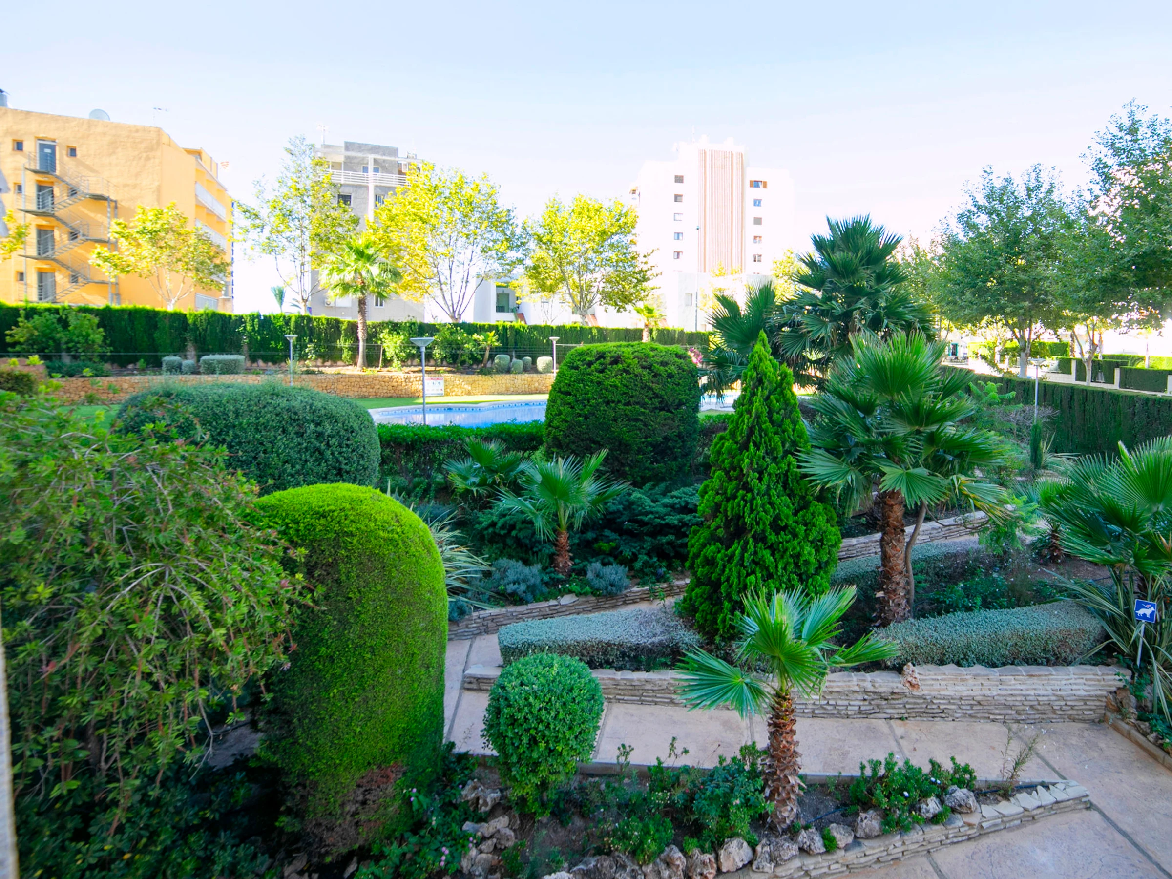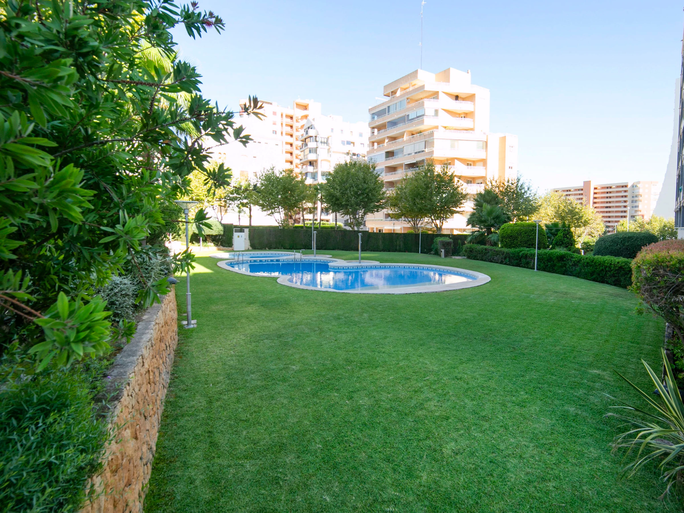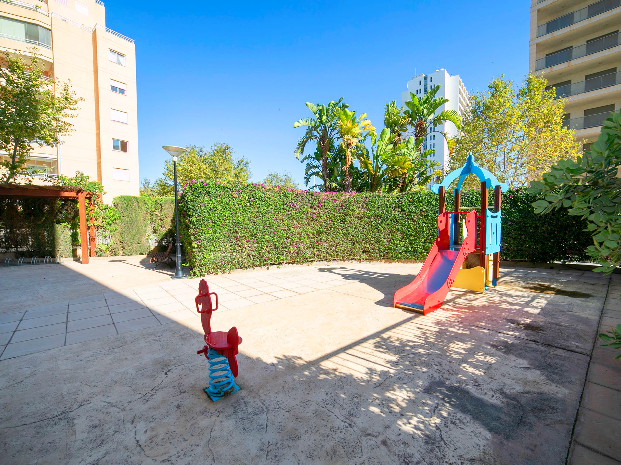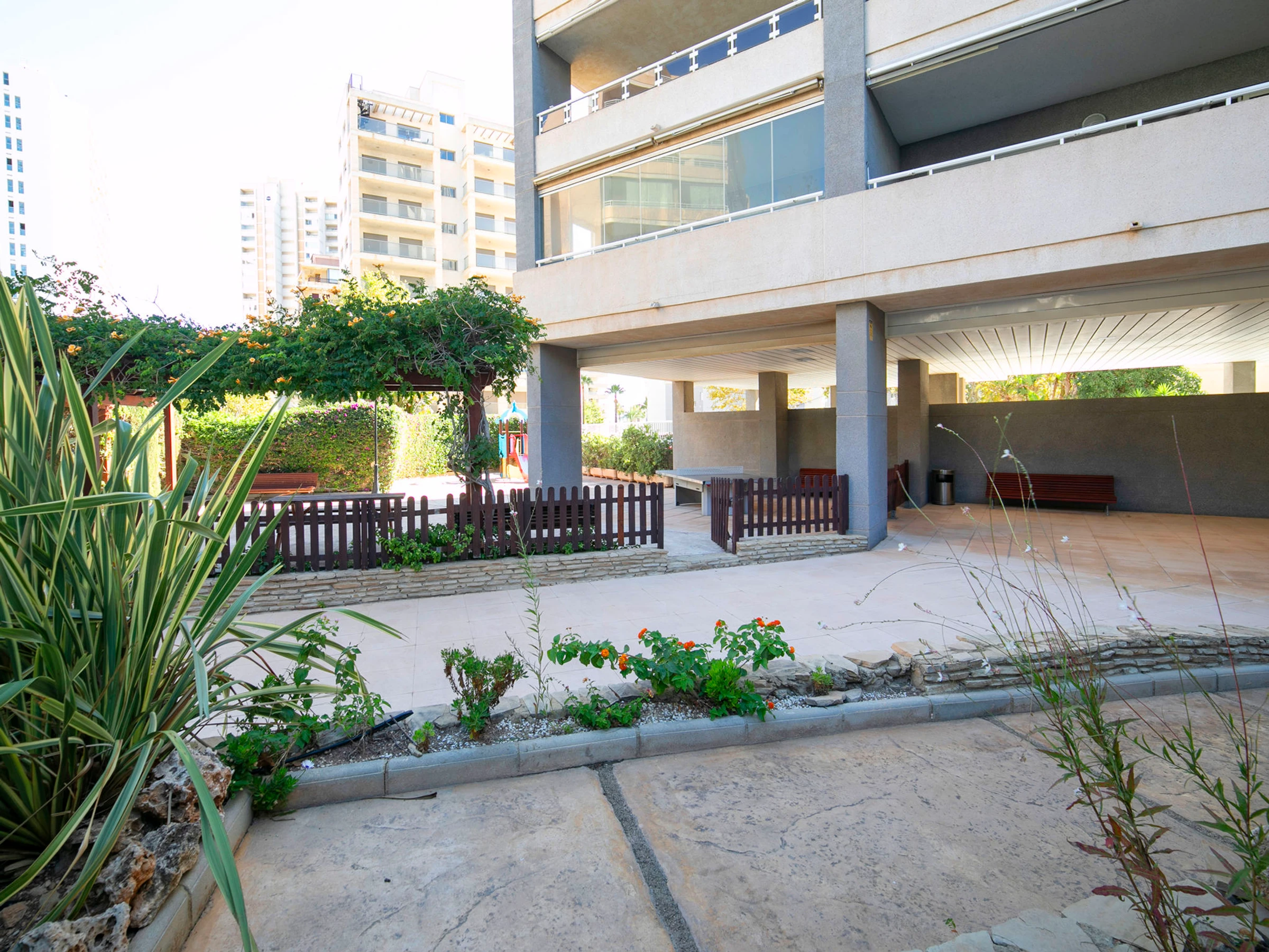 Beautiful apartment block "Apolo XVIII". 2 km from the centre of Calpe, 100 m from the sea, 100 m from the beach. For shared use: property (fenced), garden, lawn for sunbathing, swimming pool (20 x 9 m, seasonal availability: [hidden] - [hidden] Children's pool, outdoor shower. In the house: lift. Public car park at 50 m. Shop, grocery, supermarket 250 m, restaurant, bar, café 50 m, bus stop "Parada Bus" 130 m, sandy beach "Playa Cantal Roig" 100 m. Sports harbour, marina 350 m. Nearby attractions: Aqualandia, Mundomar, Terra Mítica, Terra Natura, Benidorm Palace (Benidorm), Les Fonts de l'Algar, Castillo de Guadalest.