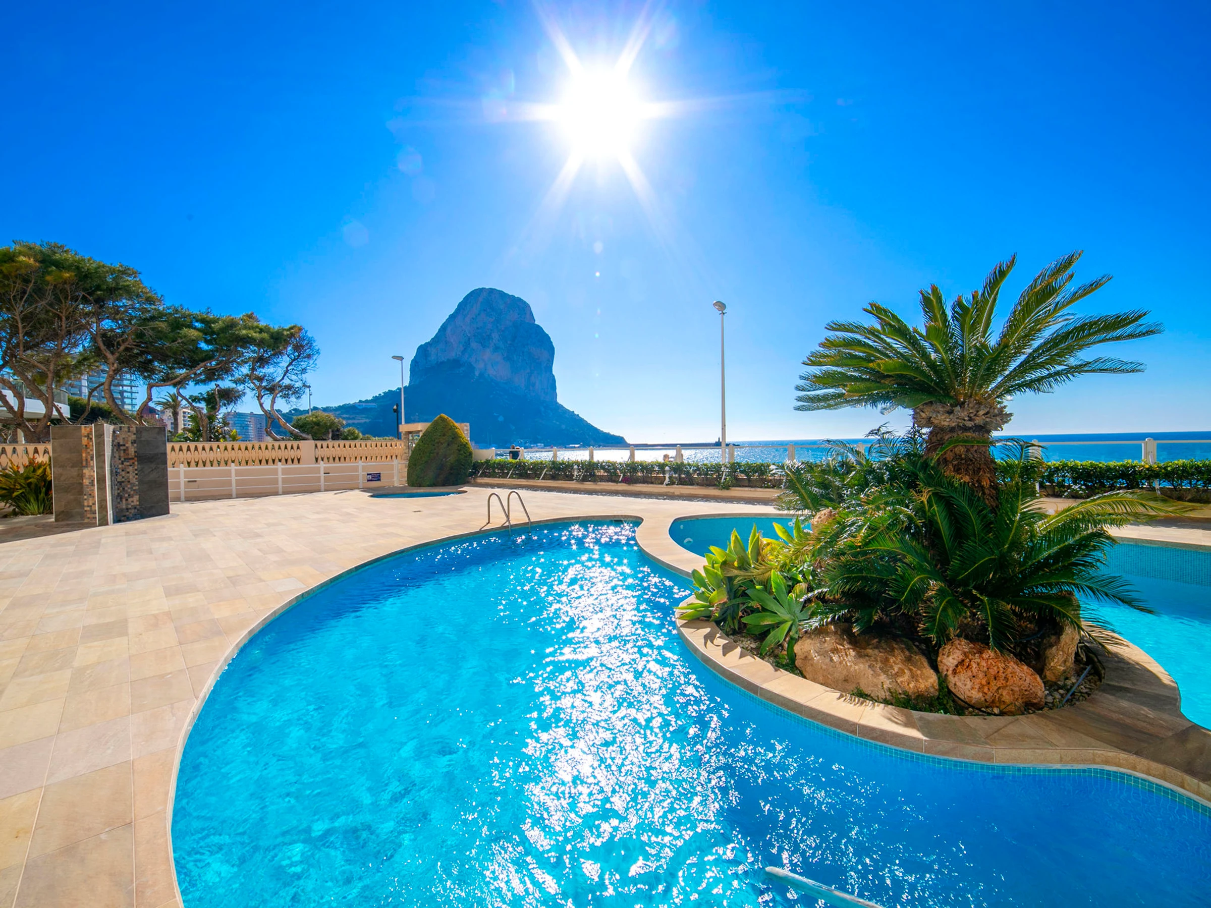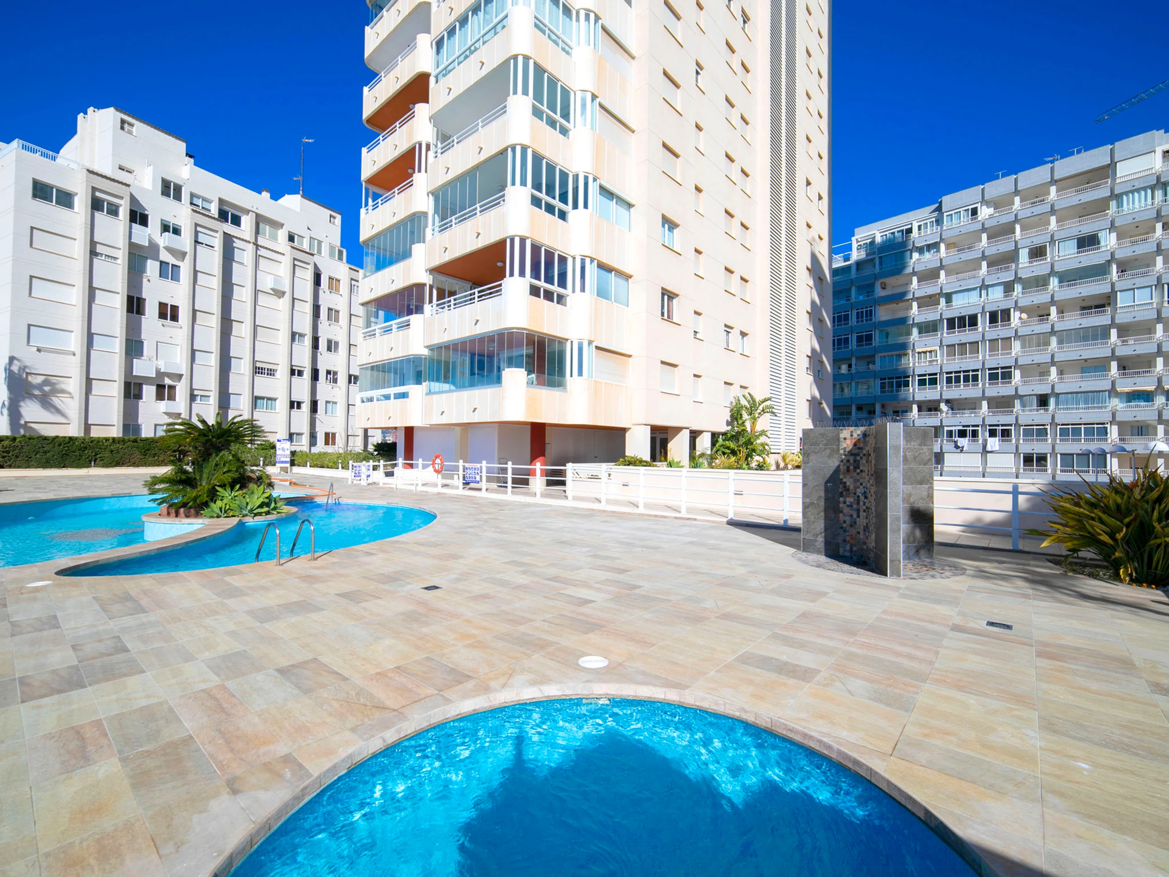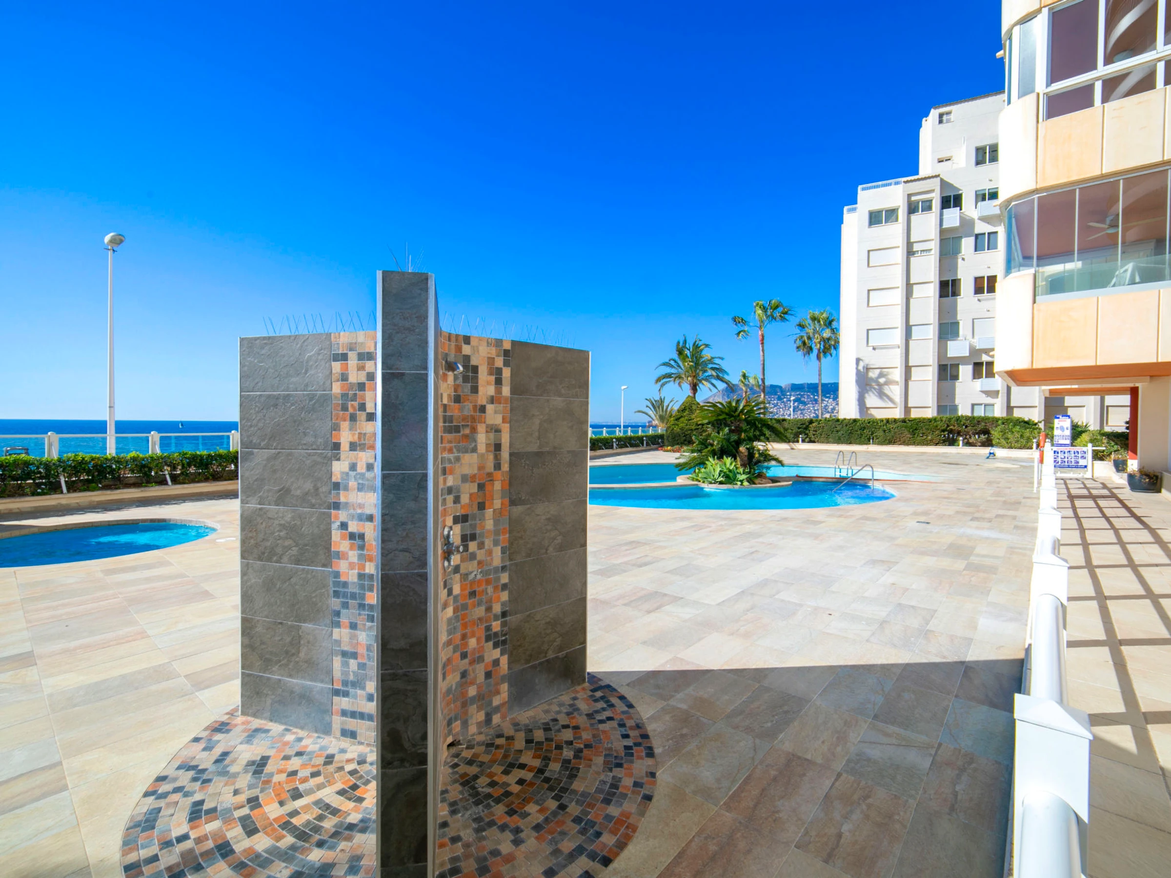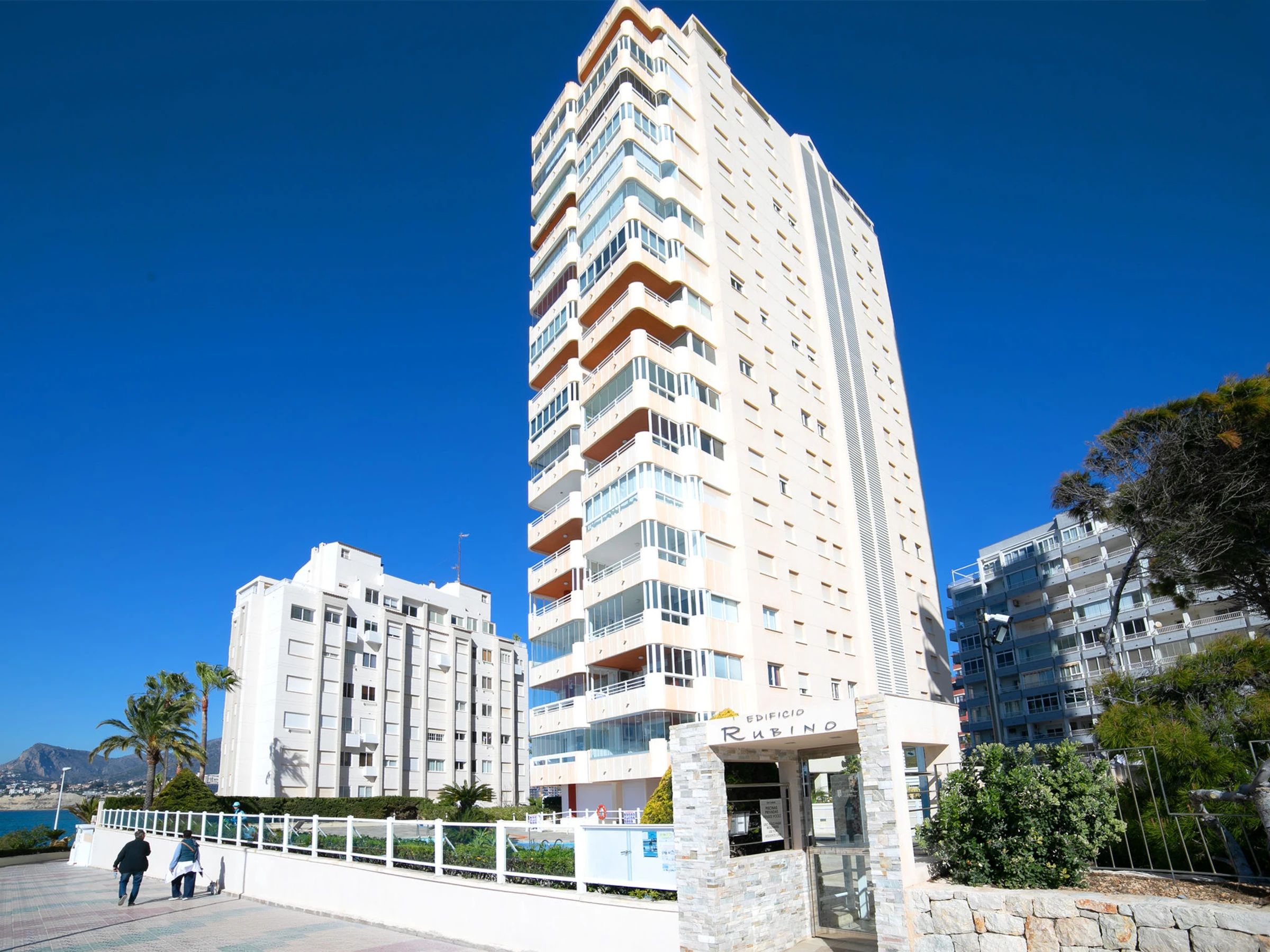 Beautiful apartment block "Rubino". 2 km from the centre of Calpe, in a sunny position, at the seaside, on the beach. For shared use: property (fenced), swimming pool (14 x 12 m, seasonal availability: [hidden] - [hidden] Children's pool, outdoor shower, terrace. In the house: lift. Grocery, supermarket 700 m, restaurant, bar, café 20 m, bus stop 100 m, sandy beach "Cala del Morello" 50 m. Sports harbour, marina 750 m, golf course 11 km. Nearby attractions: Aqualandia, Mundomar, Terre Mítica, Terra Natura, Fuentes del Algar, Guadalest Castle. The owner does not accept any youth groups.