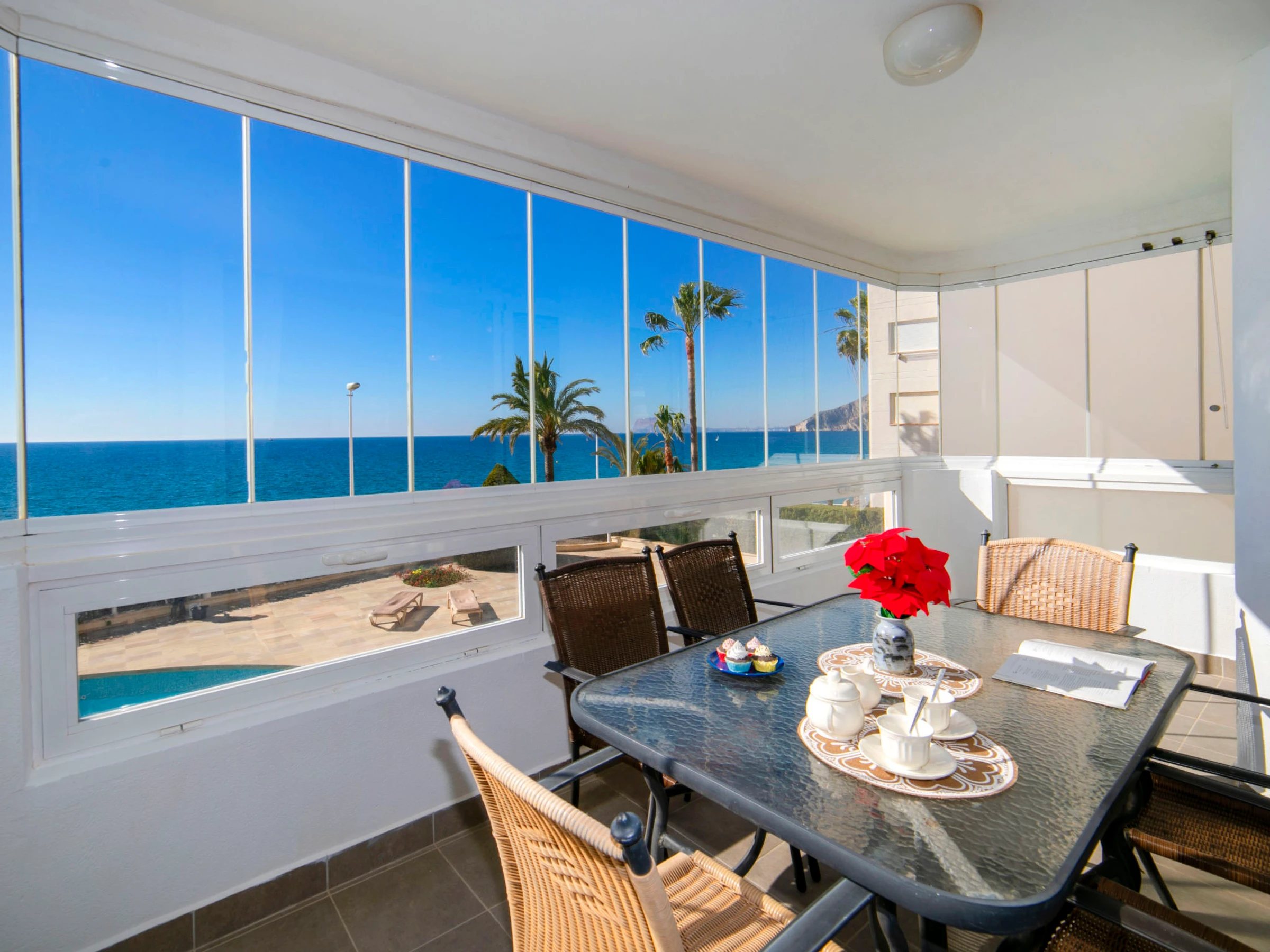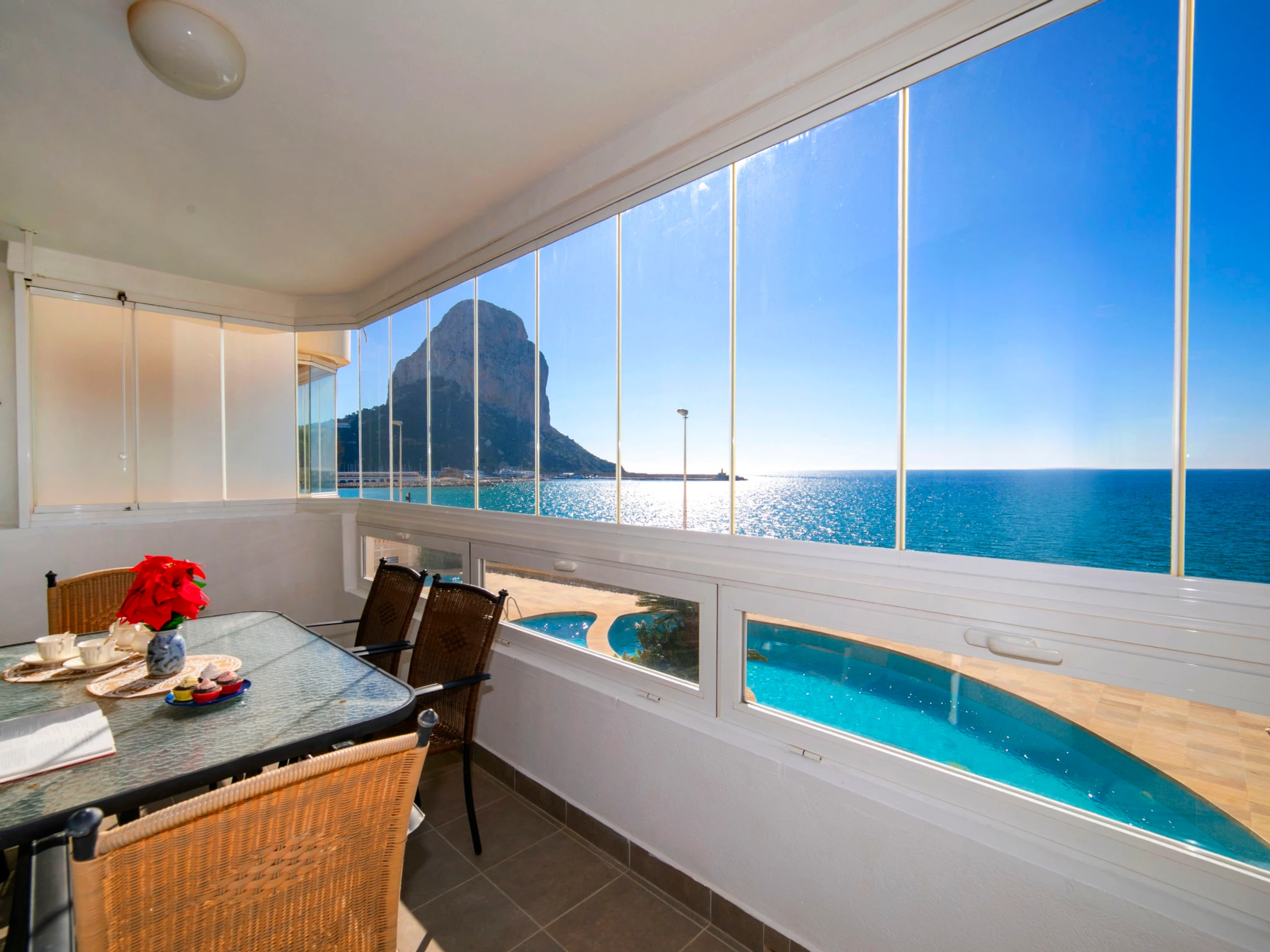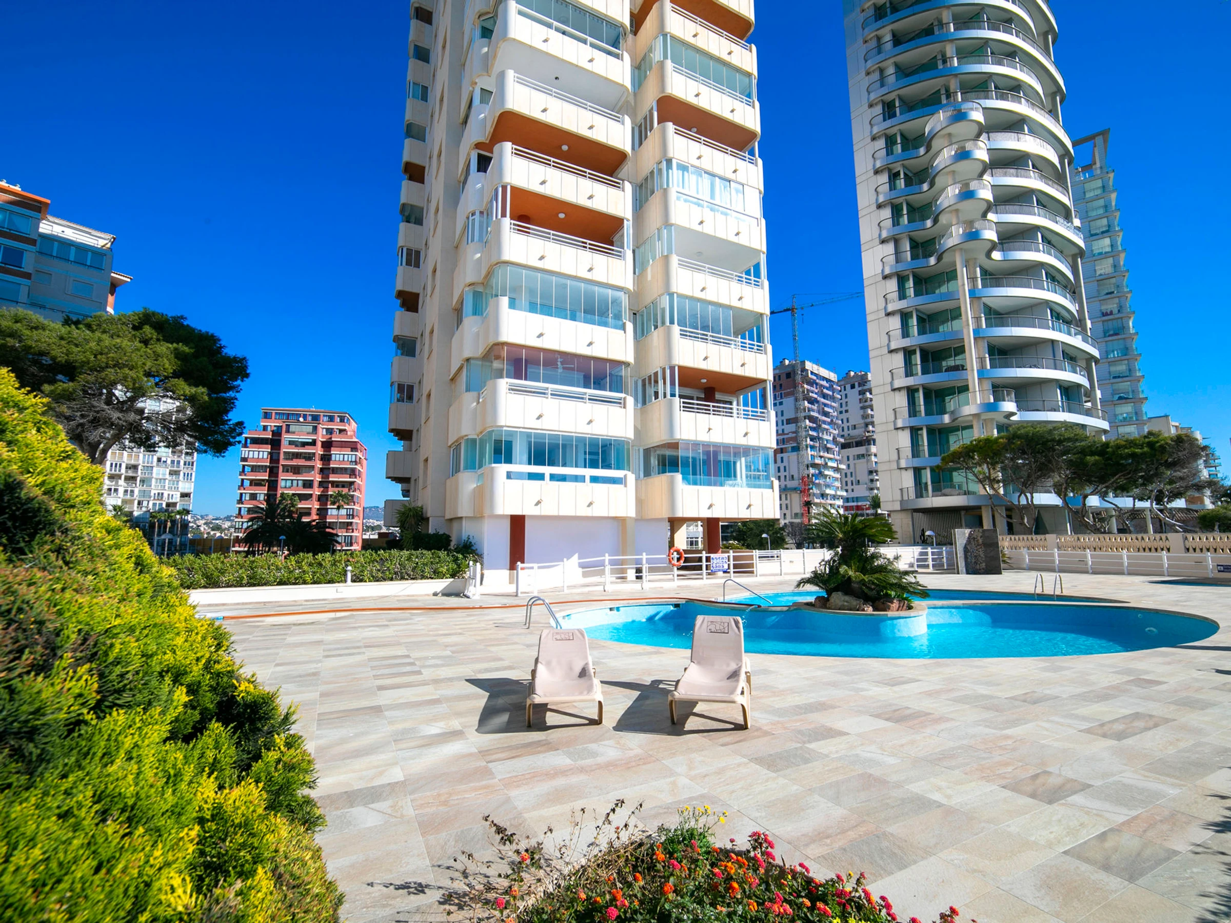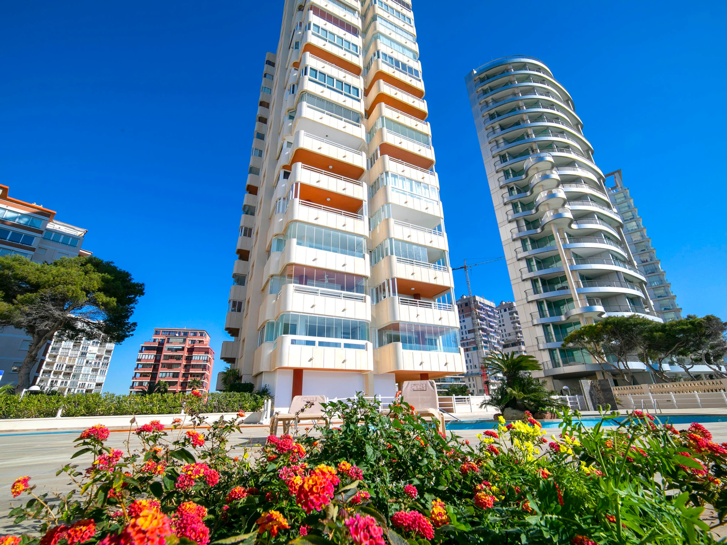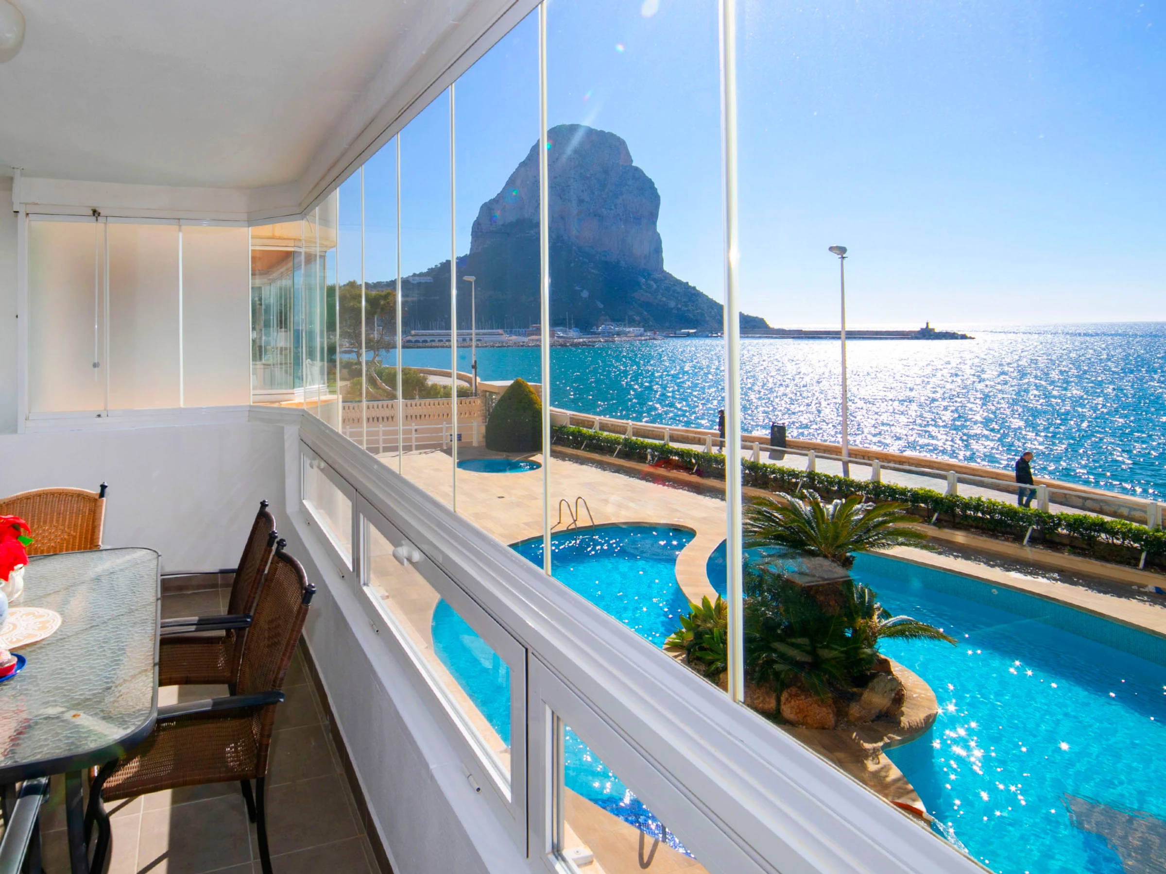 Beautiful apartment block "Rubino". 2 km from the centre of Calpe, in a sunny position, at the seaside, on the beach. For shared use: property (fenced), swimming pool (14 x 12 m, seasonal availability: [hidden] - [hidden] Children's pool, outdoor shower, terrace. In the house: lift. Grocery, supermarket 700 m, restaurant, bar, café 20 m, bus stop 100 m, sandy beach "Cala del Morello" 50 m. Sports harbour, marina 750 m, golf course 11 km. Nearby attractions: Aqualandia, Mundomar, Terre Mítica, Terra Natura, Fuentes del Algar, Guadalest Castle. The owner does not accept any youth groups.