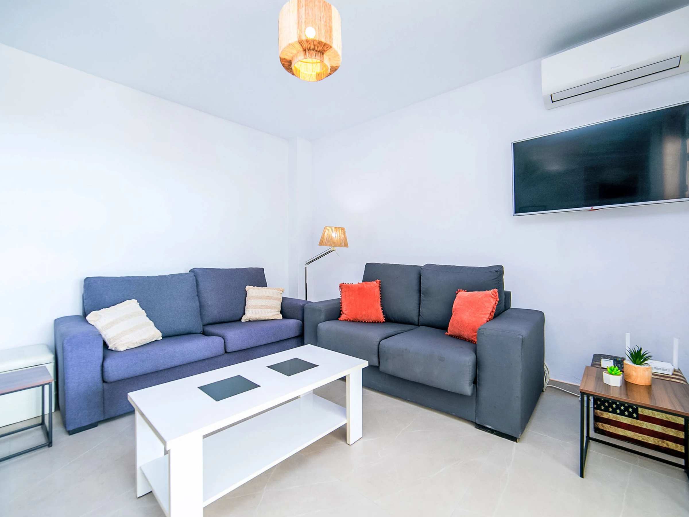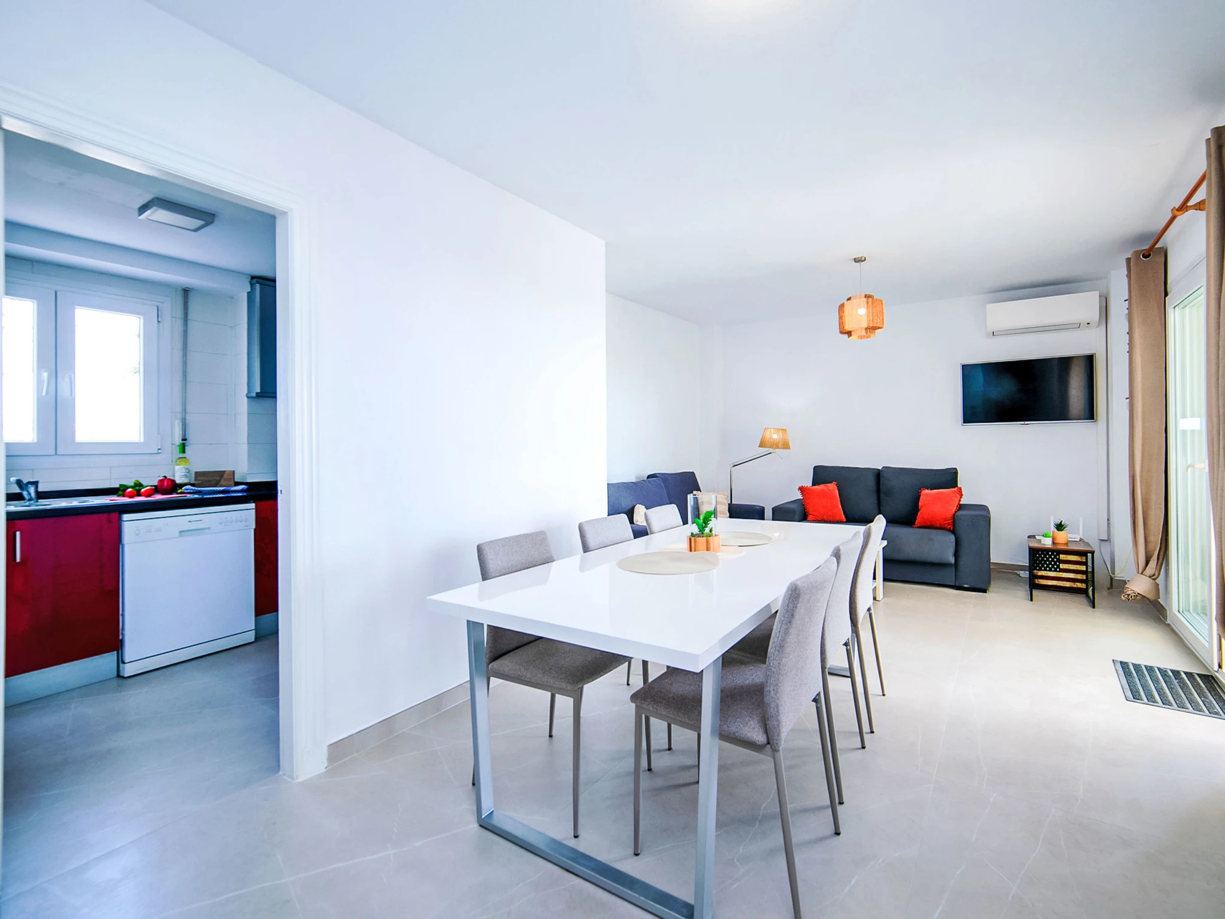 "Talima", 4-room apartment 81 m2 on 1st floor. Spacious and bright, comfortable and beautiful furnishings: living/dining room with digital TV, air conditioning and forced-air heating. Exit to the terrace. 1 room with 1 french bed (1 x 160 cm, length 200 cm), shower/WC and fan. 2 rooms, each room with 2 beds (90 cm, length 200 cm), fan. Kitchen (oven, dishwasher, 3 ceramic glass hob hotplates, toaster, kettle, microwave, electric coffee machine). Bath/WC. Large terrace. Terrace furniture. Beautiful view of the sea and the town. Facilities: washing machine, iron, hair dryer. Internet (WiFi, free). Parking space n 28 (roofed). Please note: non-smoking house. [hidden] // Reg. Nr.: ESFCTU000003029000432212000000000000000CVVUT0492724A3