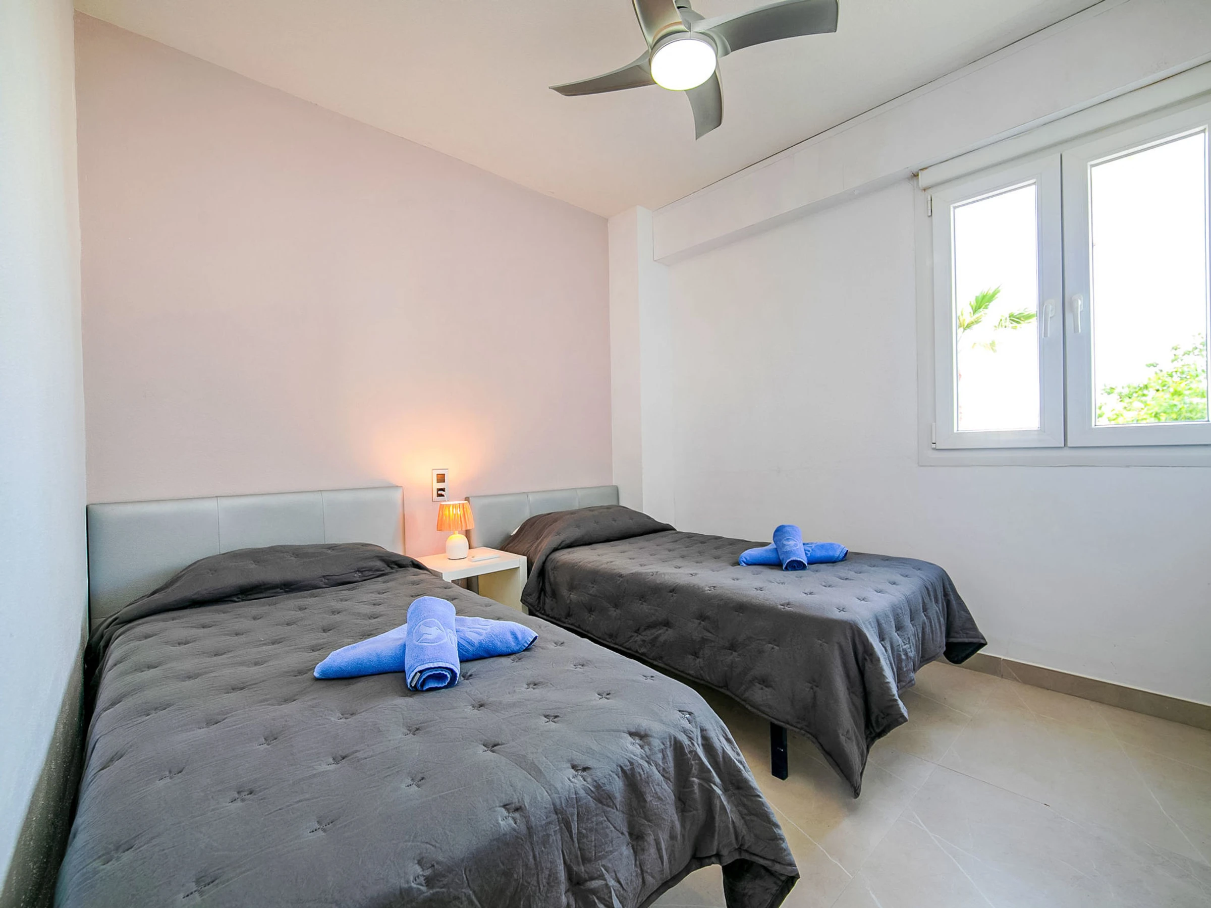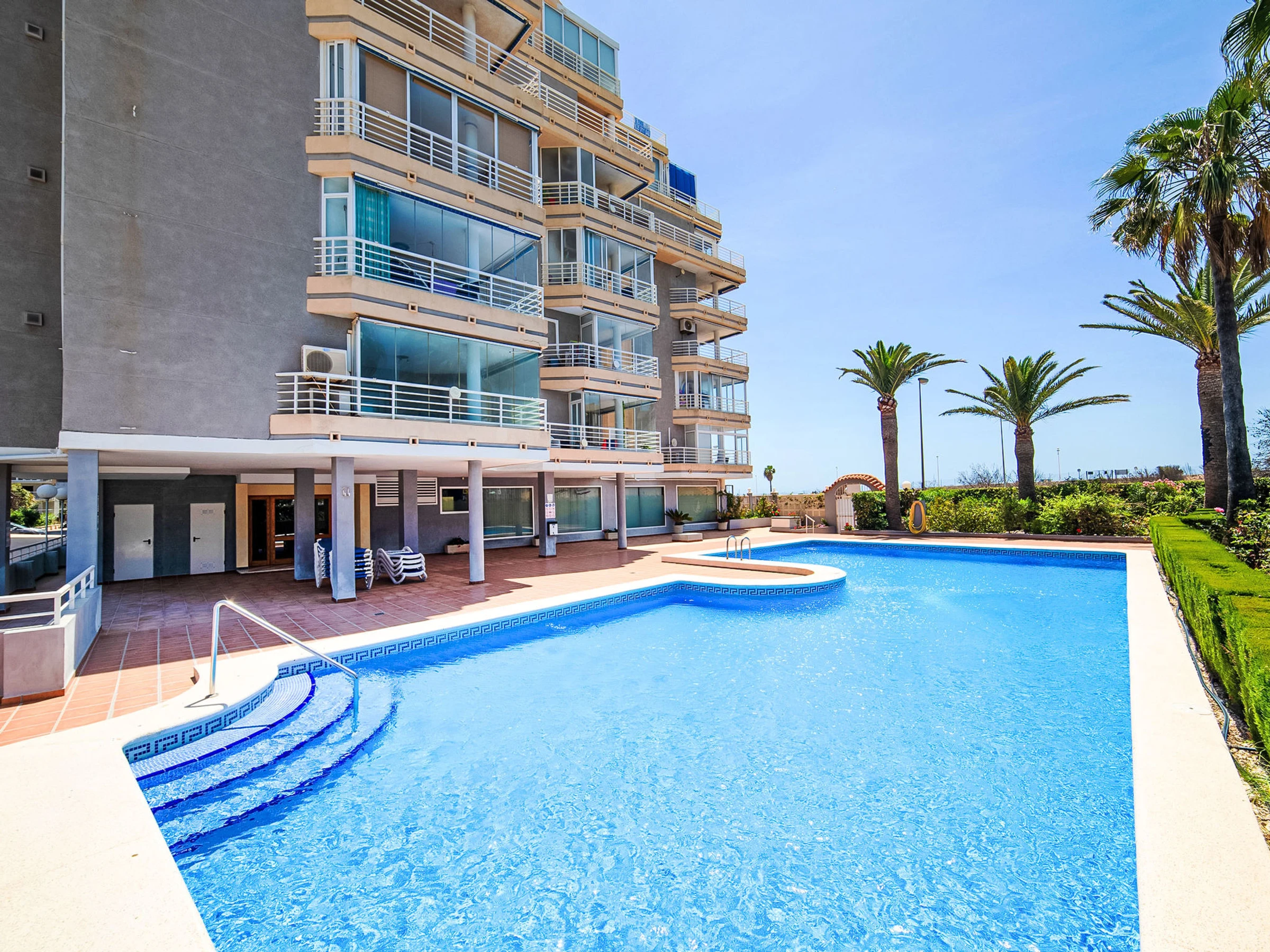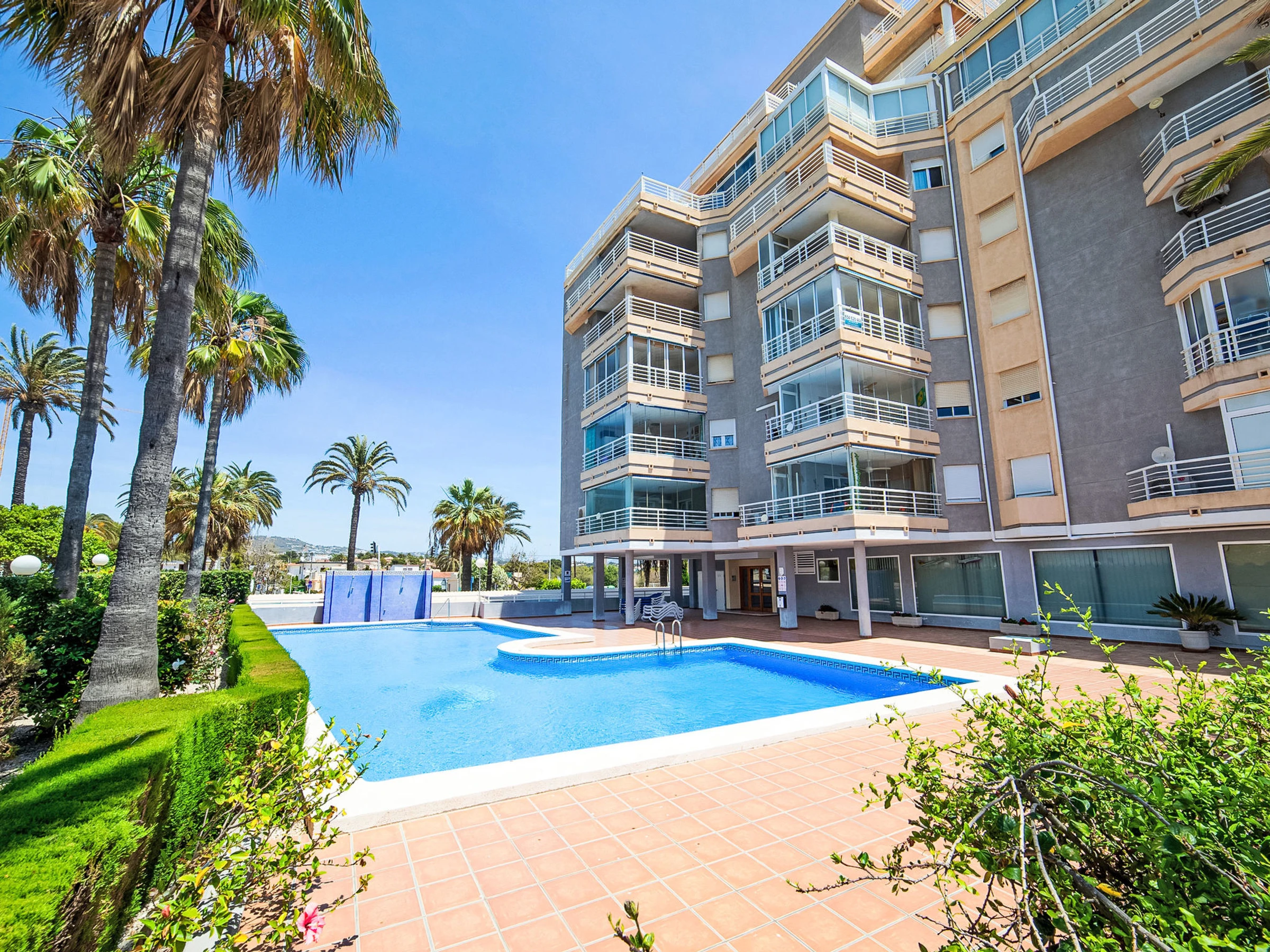 Beautiful apartment block "Talima", 6 storeys. 1.5 km from the centre of Calpe, in a sunny position, 180 m from the sea, 180 m from the beach. For shared use: property (fenced), swimming pool (19 x 10 m, seasonal availability: [hidden] - [hidden] Outdoor shower, terrace. In the house: lift. Grocery, supermarket 850 m, restaurant, café 100 m, bus stop "Parada Bus" 80 m, sandy beach "Playa Arenal" 280 m. Sports harbour 1.2 km, marina 1.2 km. Nearby attractions: Aqualandia, Mundomar, Terra Mítica, Terra Natura, Benidorm Palace (Benidorm), Les Fonts de l'Algar, Castillo de Guadalest. The owner does not accept any youth groups.