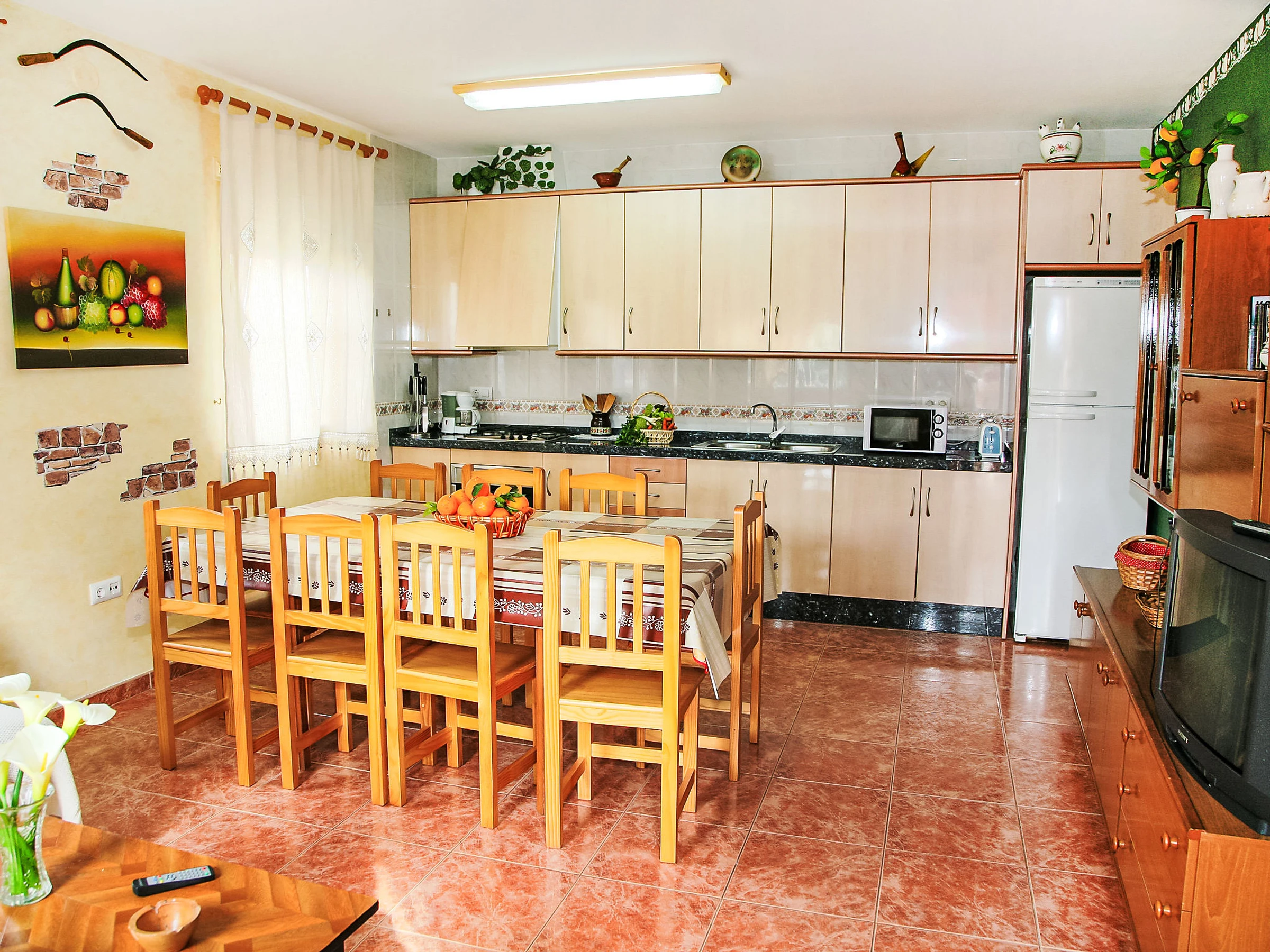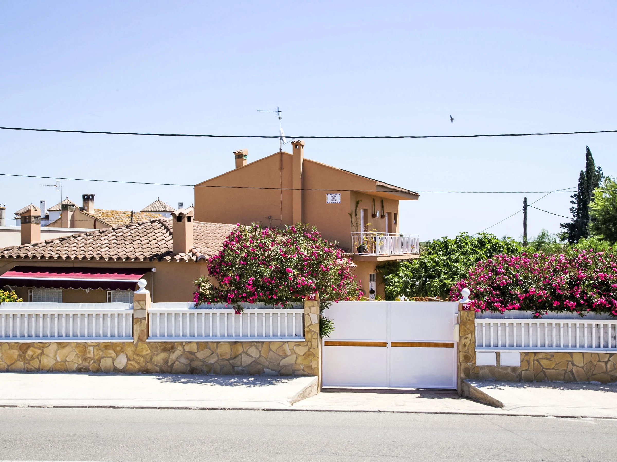 "Masia del Mosso", 7-room house 130 m2 on 2 levels. Renovated in 2022: living/dining room 30 m2 with satellite TV, digital TV and flat screen. 1 room with 2 beds (90 cm, length 190 cm), fan. 1 room with 1 french bed (135 cm, length 190 cm), fan. 1 room with 1 bed (90 cm, length 180 cm), fan. Open kitchen (4 hot plates, oven, microwave, freezer, electric coffee machine) with fan. Hip bath/bidet/WC. Upper floor: living/dining room with digital TV. 1 room with 1 french bed (135 cm, length 190 cm), fan. 1 room with 2 beds (90 cm, length 190 cm), fan. Bath/bidet/WC. Balcony. Deck chairs (5). Facilities: washing machine, iron, mosquito net. Internet (WiFi, free). Parking (fenced 2 cars). The living-dining room has a ceiling fan. The access to the 1st floor is via a metal, outdoor staircase (18 steps). 2 refrigerators are available. [hidden] // Reg. Nr.: ESFCTU0000430190004636040000000000000000[hidden]1