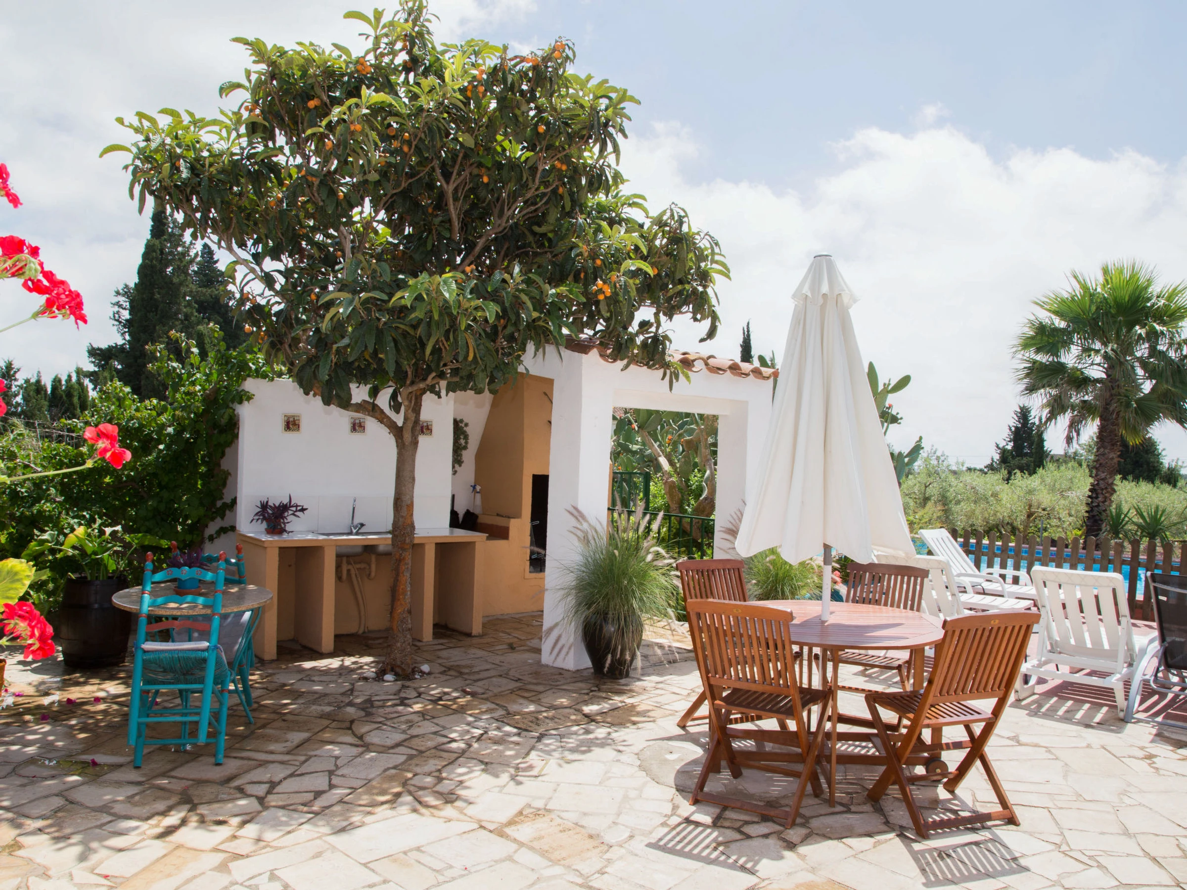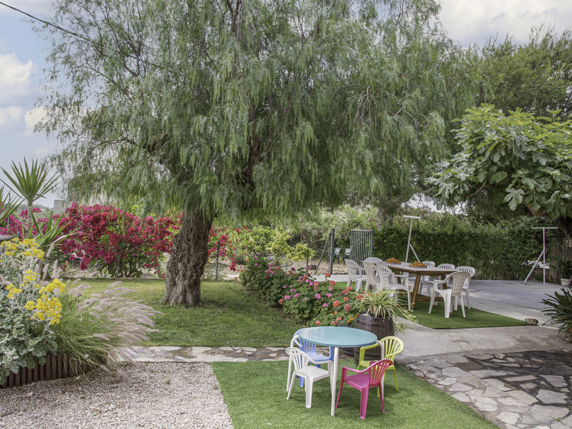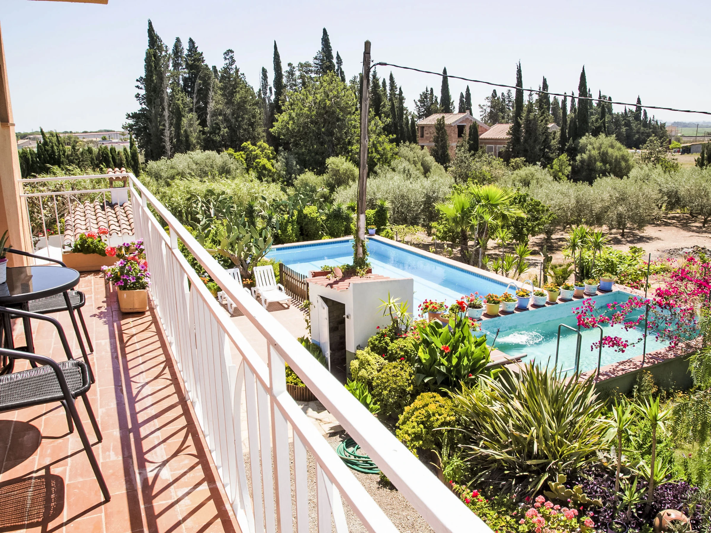 House "Flors", renovated in 2022. In the resort, 2 km from the centre of Camarles, 8 km from the centre of Ampolla, in a quiet, sunny position, 6 km from the sea, 6 km from the beach. Private: garden 500 m2 with wildlife garden and trees, swimming pool (5 x 10 m, depth 150 - 200 cm, seasonal availability: [hidden] - [hidden] Outdoor shower, garden furniture, barbecue. Grocery 500 m, restaurant 100 m, bus stop 500 m, sandy beach 6 km. Nearby attractions: Parque Natural del Delta del Ebro 13 km. The owner does not accept any youth groups. Excellent area for excursions on foot and by bicycle.