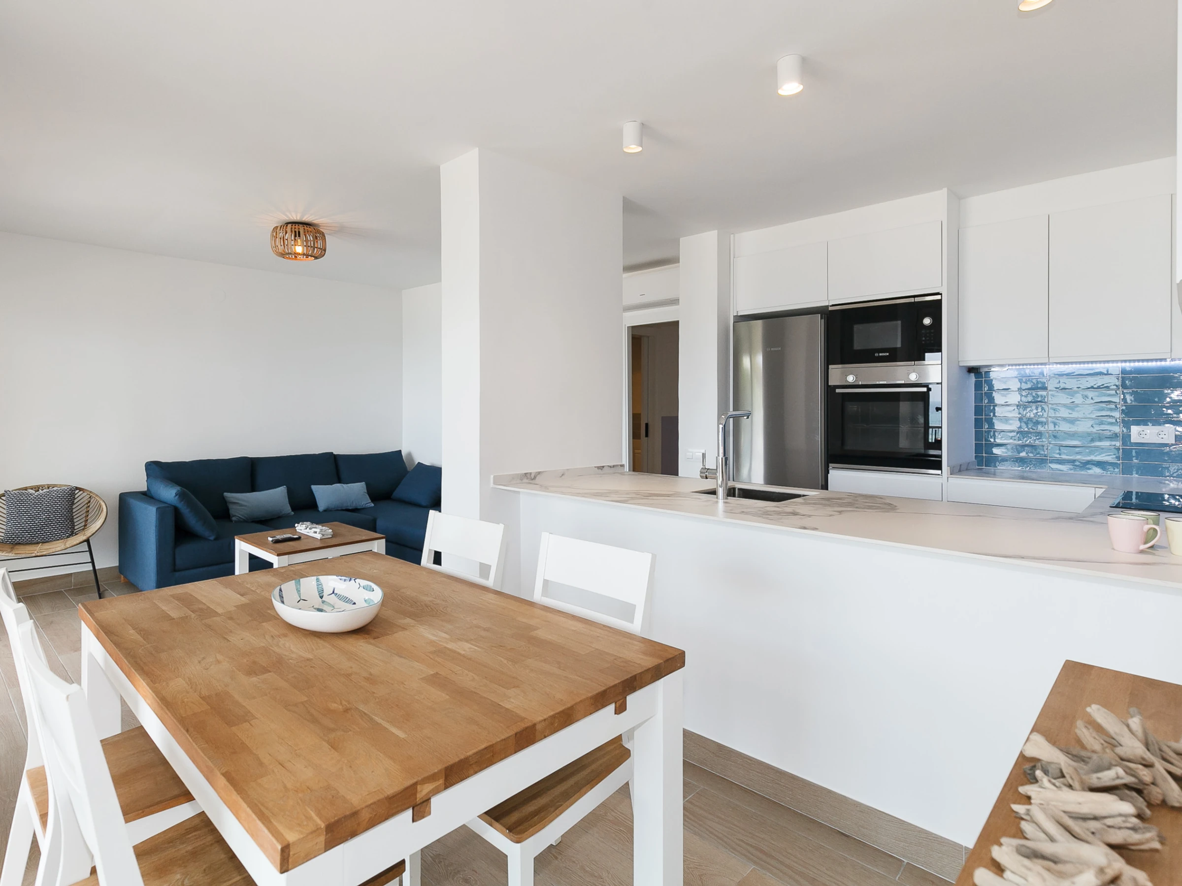 - Living-dining room with open kitchen.