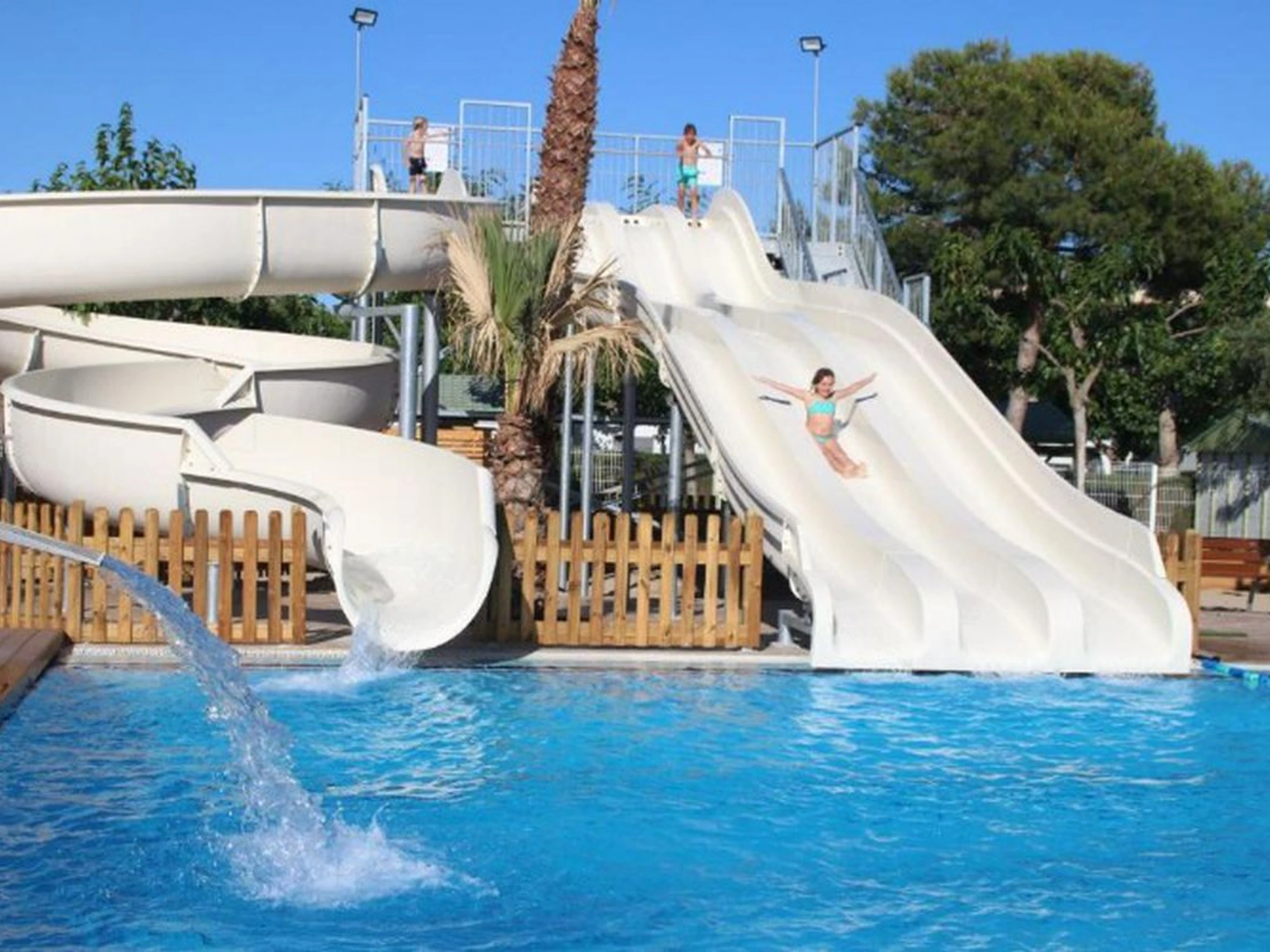 - Water play area (1 play structure), Water slide (4 slides),