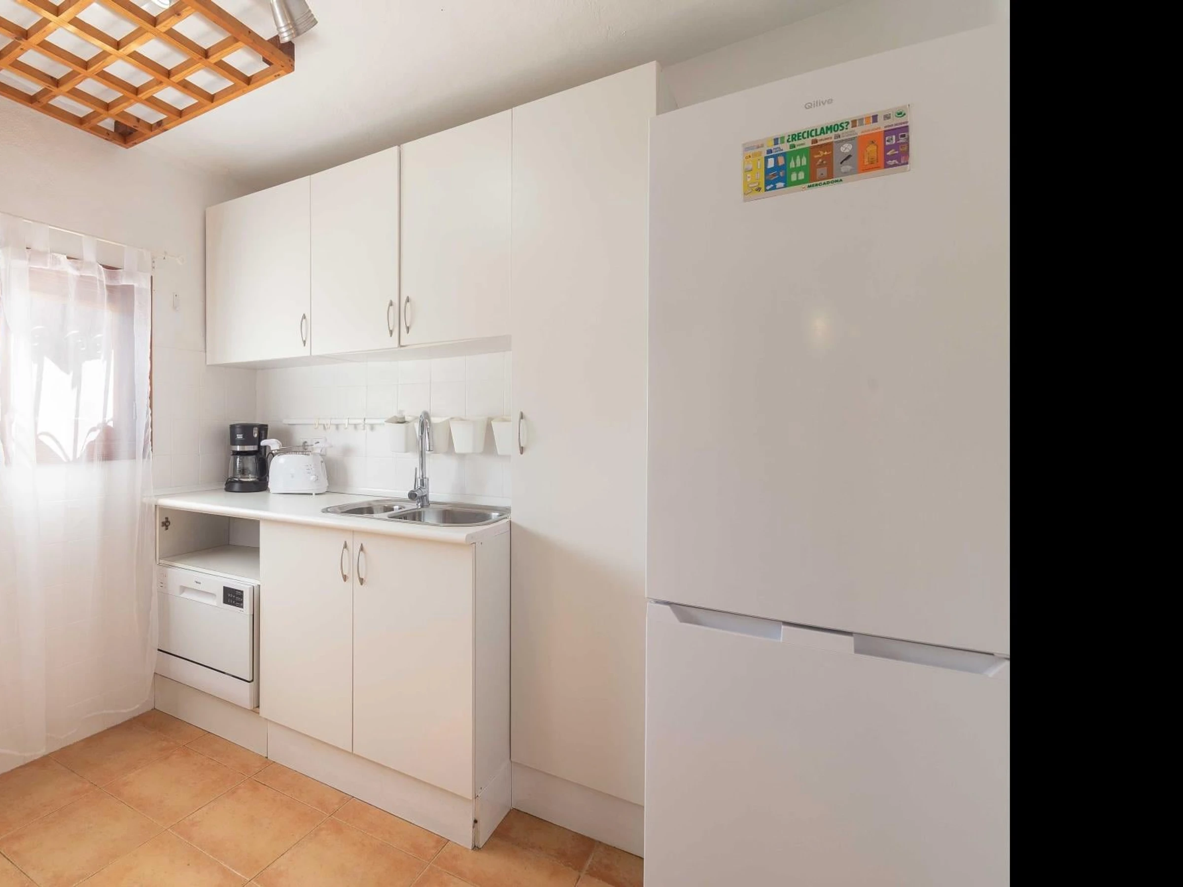 The recently renovated kitchen is practical and well-equipped for everyday use. It includes a microwave, electric oven, refrigerator, stovetop, and everything you need to prepare your meals during your stay.