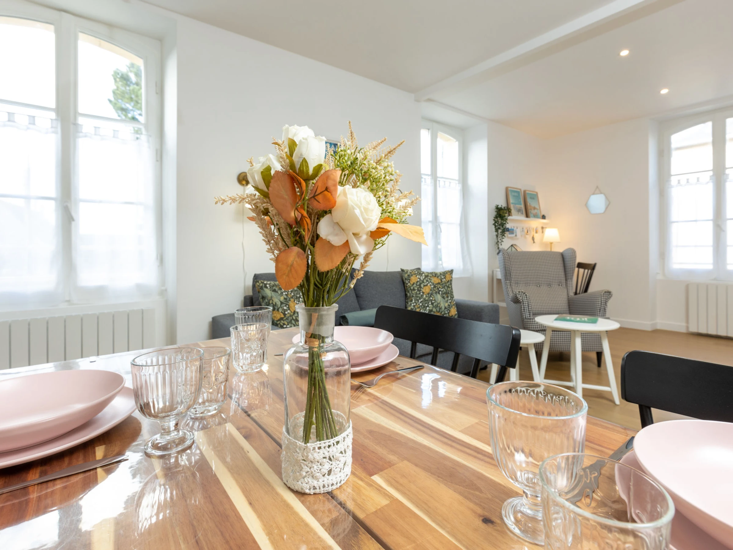 Modern, comfortable residence "Garance", 2 storeys, terraced. In the centre of Cancale, 400 m from the sea, 500 m from the beach. Shop, shopping centre, restaurant 160 m, bakery 160 m, café, 2 minute walk to the centre, bus stop 250 m, railway station "Gare de St MAlo" 15 km, sandy beach "Plage du Verger" 5 km pebble beach 500 m, thermal baths "Les Thermes marins de St Malo" 15 km. Sports harbour 50 m, golf course (18 hole) 25 km, riding stable 2 km, walking paths from the house 1 km. Nearby attractions: Grand Aquarium de Saint Malo 14 km, St Malo Intramuros 17 km, La Pointe du Grouin 5 km, Le Mont St Michel 48 km, Dinard 22 km, Dinan 25 km.