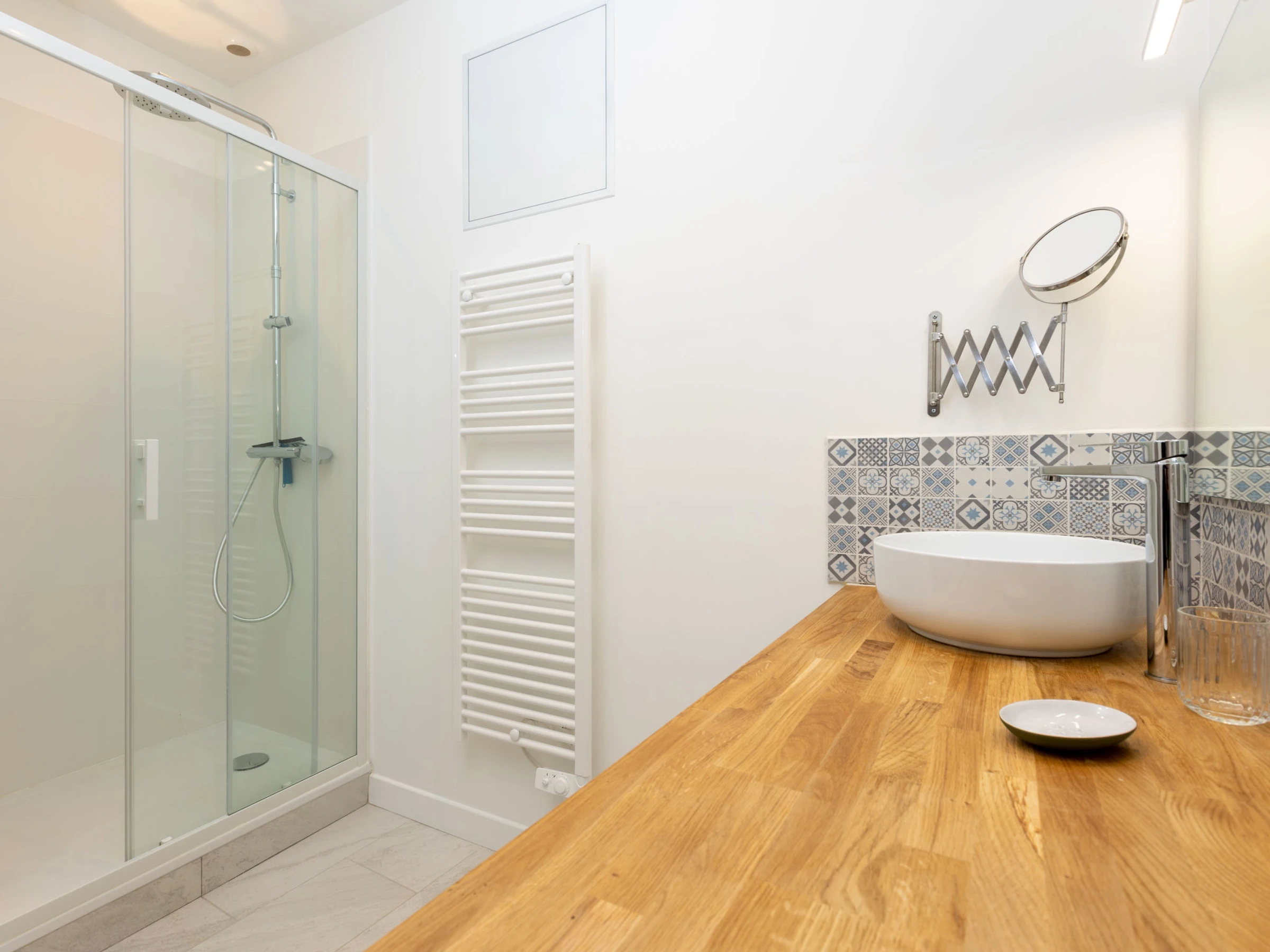 3-room apartment 65 m2 on 1st floor. Spacious and bright, comfortable and tasteful furnishings: lounge with TV and flat screen. 1 room with 1 french bed (160 cm, length 200 cm). 1 room with 1 french bed (140 cm, length 190 cm). Open kitchen (oven, dishwasher, 3 induction hot plates, toaster, kettle, microwave, electric coffee machine). Bathroom, sep. WC. Heating, electric heating. Side view of the sea. Facilities: washing machine, iron, hair dryer. Internet (WiFi, free). Parking (1 car). Please note: smoke alarm. Offer by a private individual according to Art. 155, IV of CGI.
