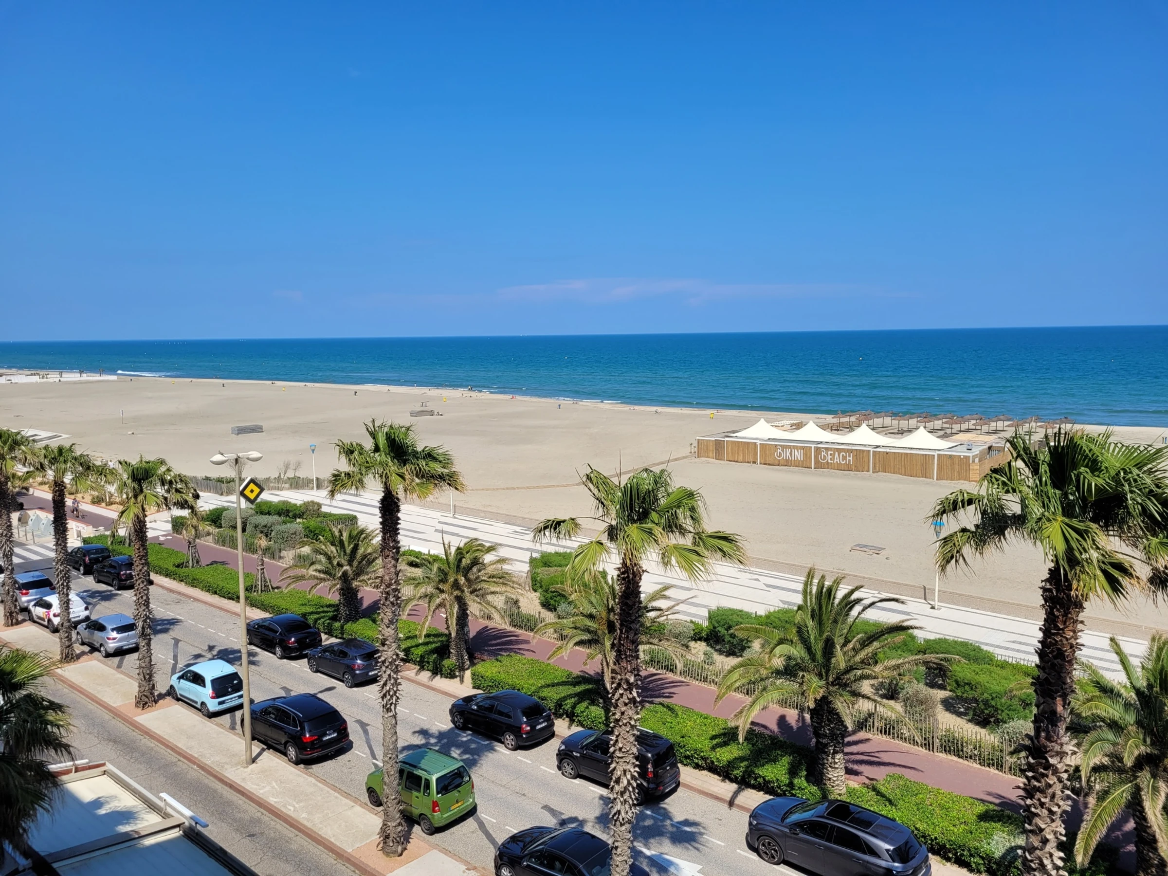 Beautiful living room (with sofa bed) opening onto a lovely, spacious 10 m² loggia with sea views, open-plan kitchen, shower room, air-conditioned bedroom (double bed) with access to a balcony and magnificent views of Mount Canigou, separate entrance and WC.