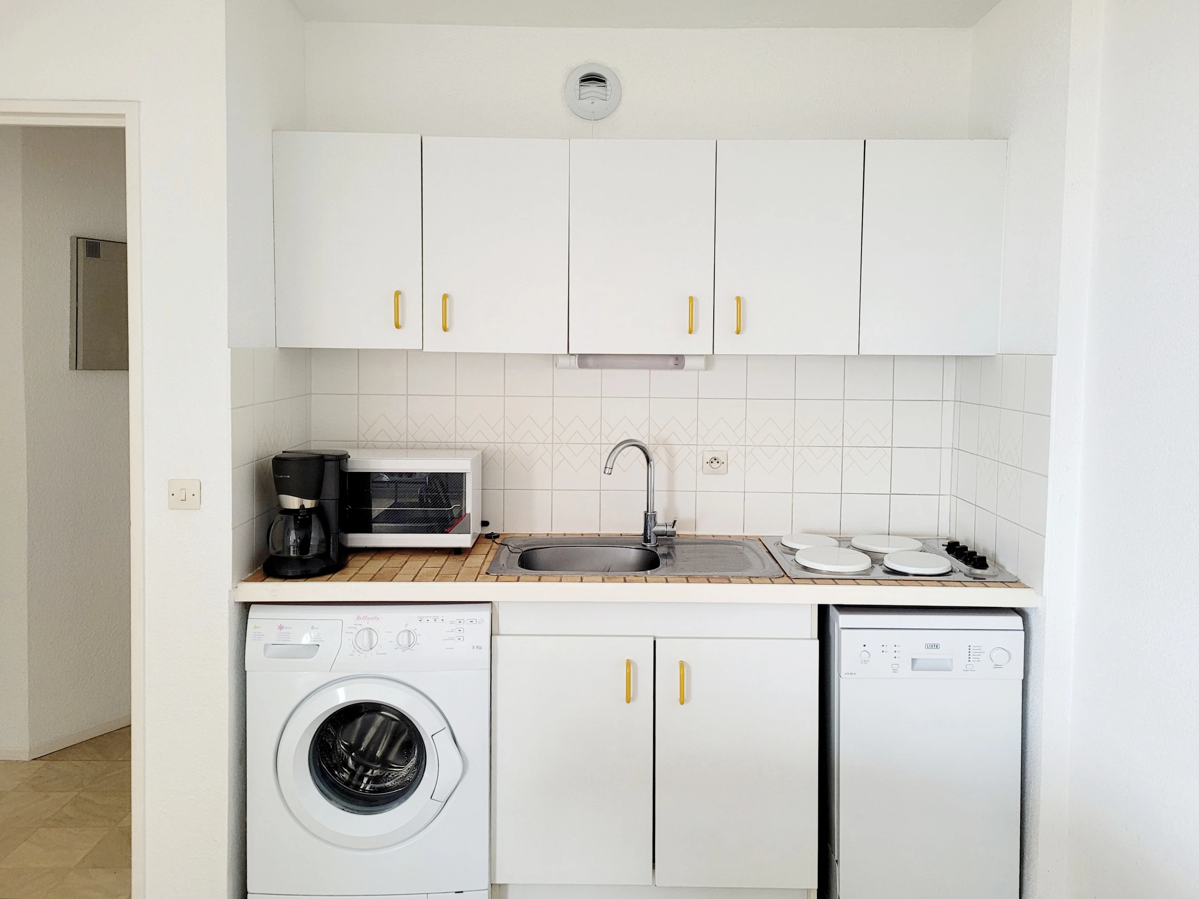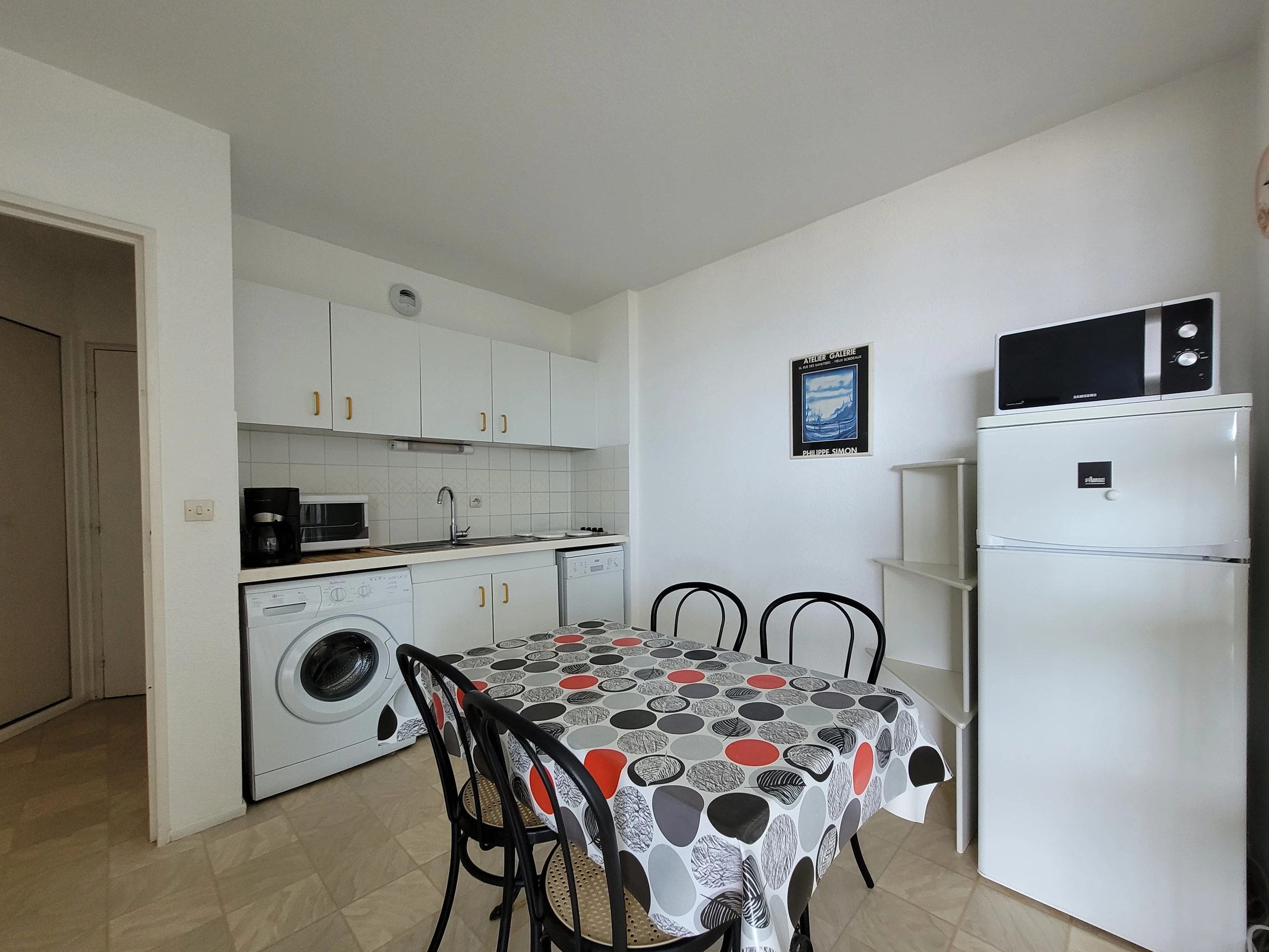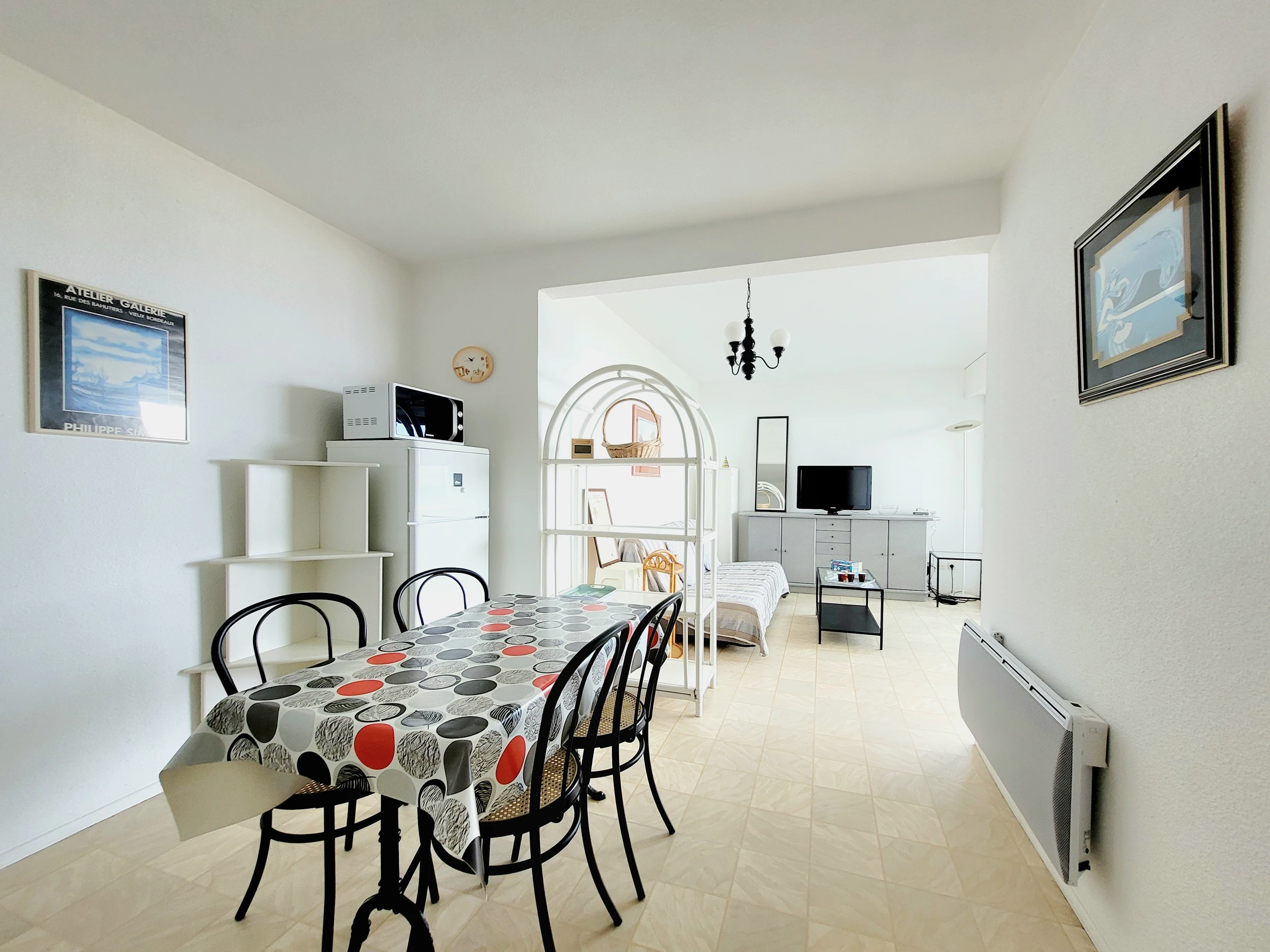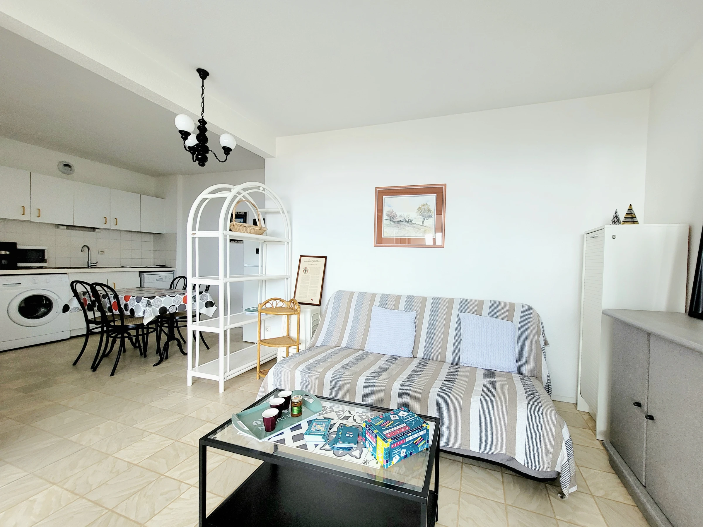 Bright living room (sofa bed 140cm), access to a beautiful, spacious terrace with breathtaking sea views, fitted and equipped kitchenette, 1 bedroom (double bed 140cm) with terrace access, 1 sleeping alcove (2 bunk beds 90cm), 1 bathroom, 1 separate WC.