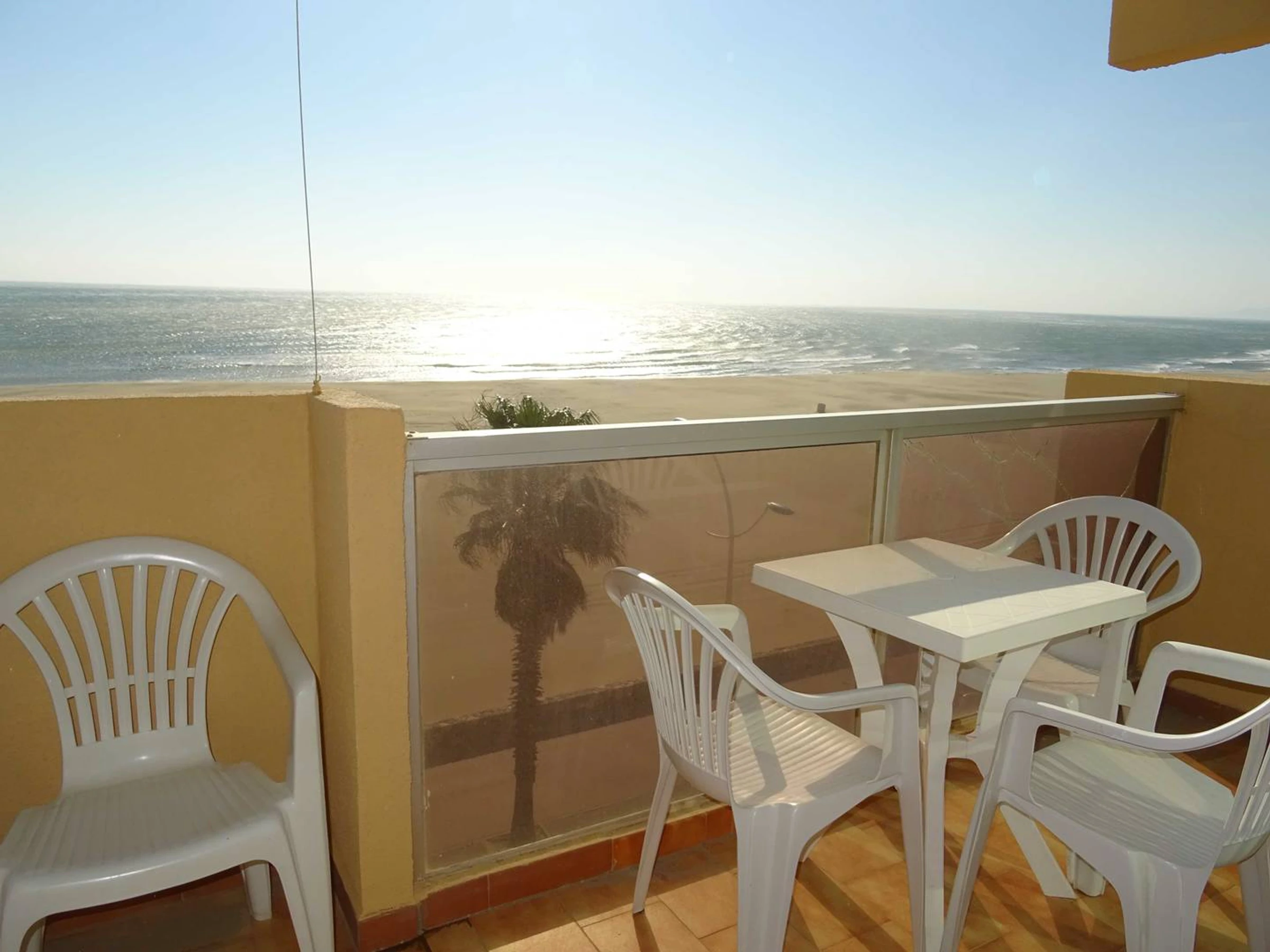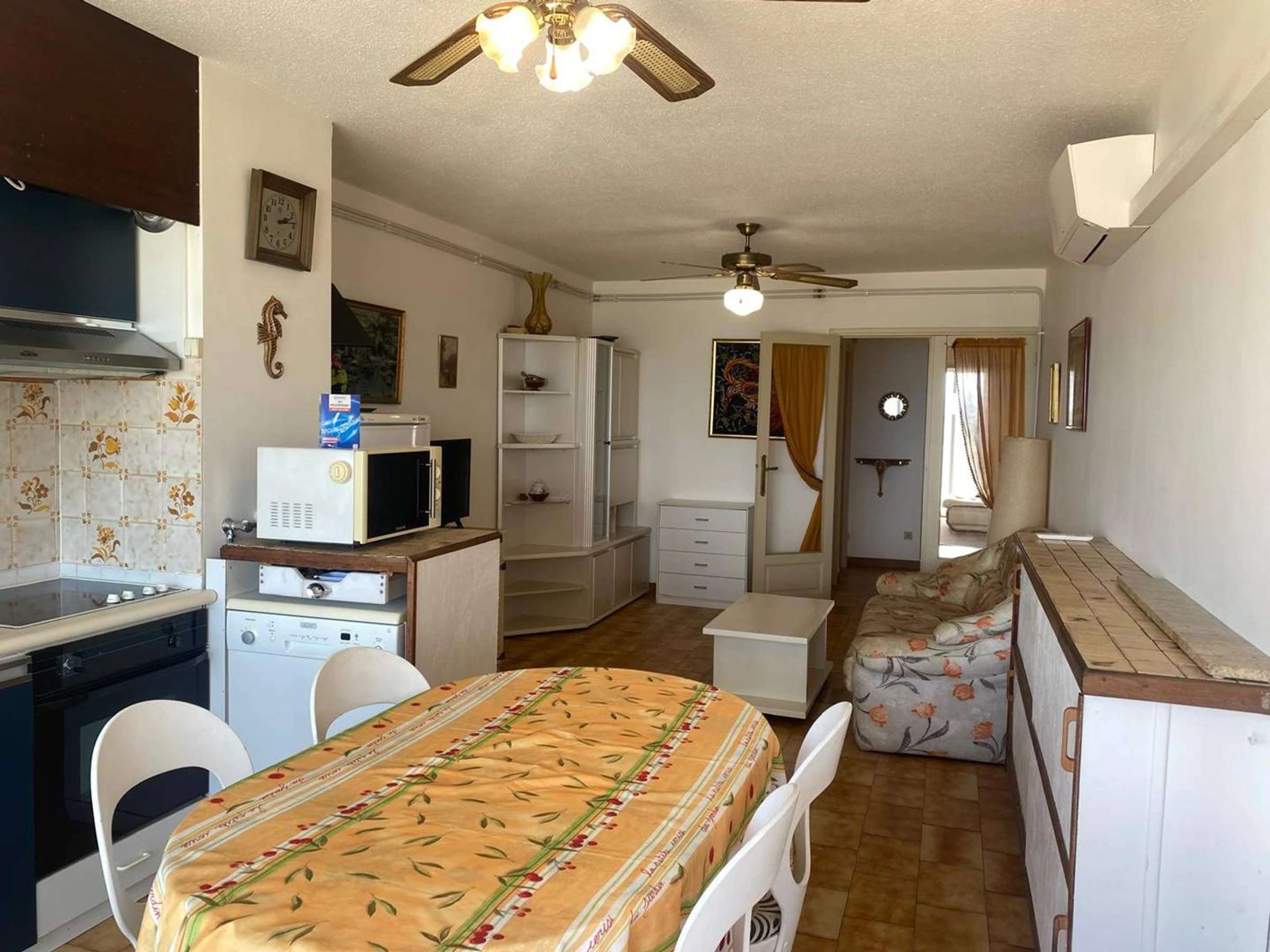 Grand appartement d'environ 60 m² traversant et climatisé en résidence sécurisée, au 4ème étage (avec ascenseur). Aménagement agréable : séjour avec TV et canapé. Coin cuisine équipé : frigo/congelateur, four, micro-ondes, cafetière, lave vaisselle et nécessaire de vaisselle. Une chambre avec lit double, placard et accès à un balcon. Une second chambre avec deux lits simples, commode et accès au balcon. Salle de bain avec baignoire et lave-linge. WC séparés. La terrasse orientée EST pourra recevoir vos repas en vous offrant une vue magnifique sur la mer. Parking privé et sécurisé. Climatisation. Équipé pour 4 personnes. Linge de maison et draps non fournis. Le ménage n'est pas inclus. ANIMAUX NON ADMIS