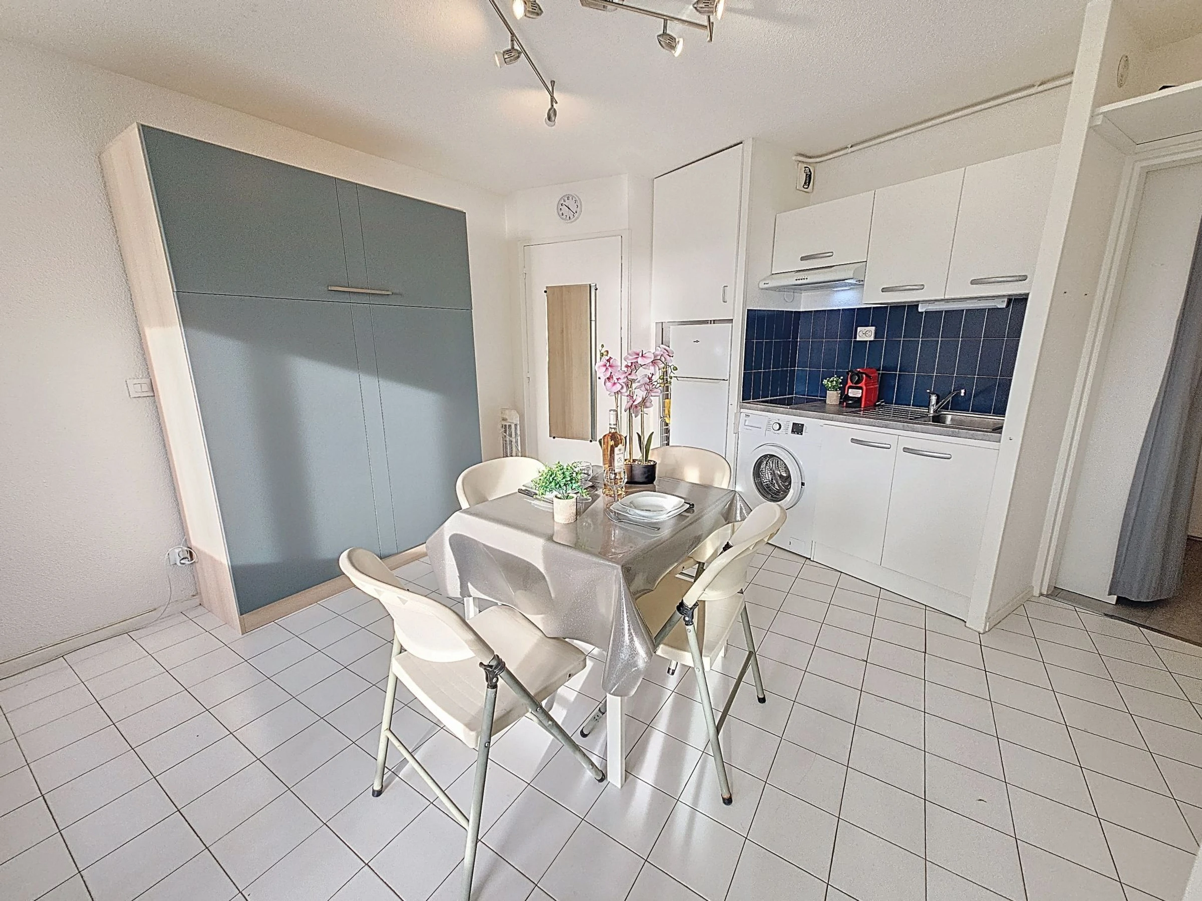 "Le Casino", 1-room apartment 22 m2 on 6th floor, east facing position. Comfortable and beautiful furnishings: living/dining room with 1 double fold-away bed (1 x 140 cm, length 190 cm), dining table and TV (flat screen). Exit to the balcony. Kitchenette (2 induction hot plates, toaster, kettle, microwave, freezer, electric coffee machine, Capsules for coffee machine (nespresso) extra). Shower/WC. Electric heating. Balcony 4 m2. Balcony furniture. View of the sea. Facilities: iron. Internet (WiFi, extra). Parking space n 59/27 at the house. Please note: non-smokers only. Maximum 1 small pet/ dog allowed. Smoke alarm. Offer by a commercial proprietor according to Art. 155, IV, CGI